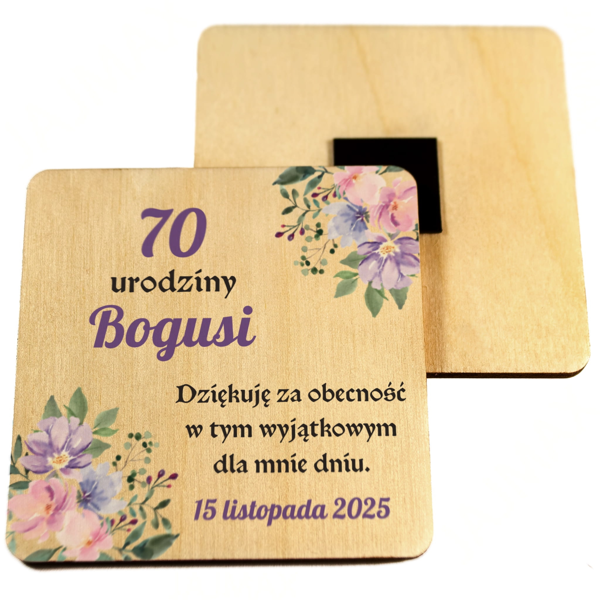 Magnes kwadrat PODZIĘKOWANIE DLA GOŚCI na urodziny nadruk