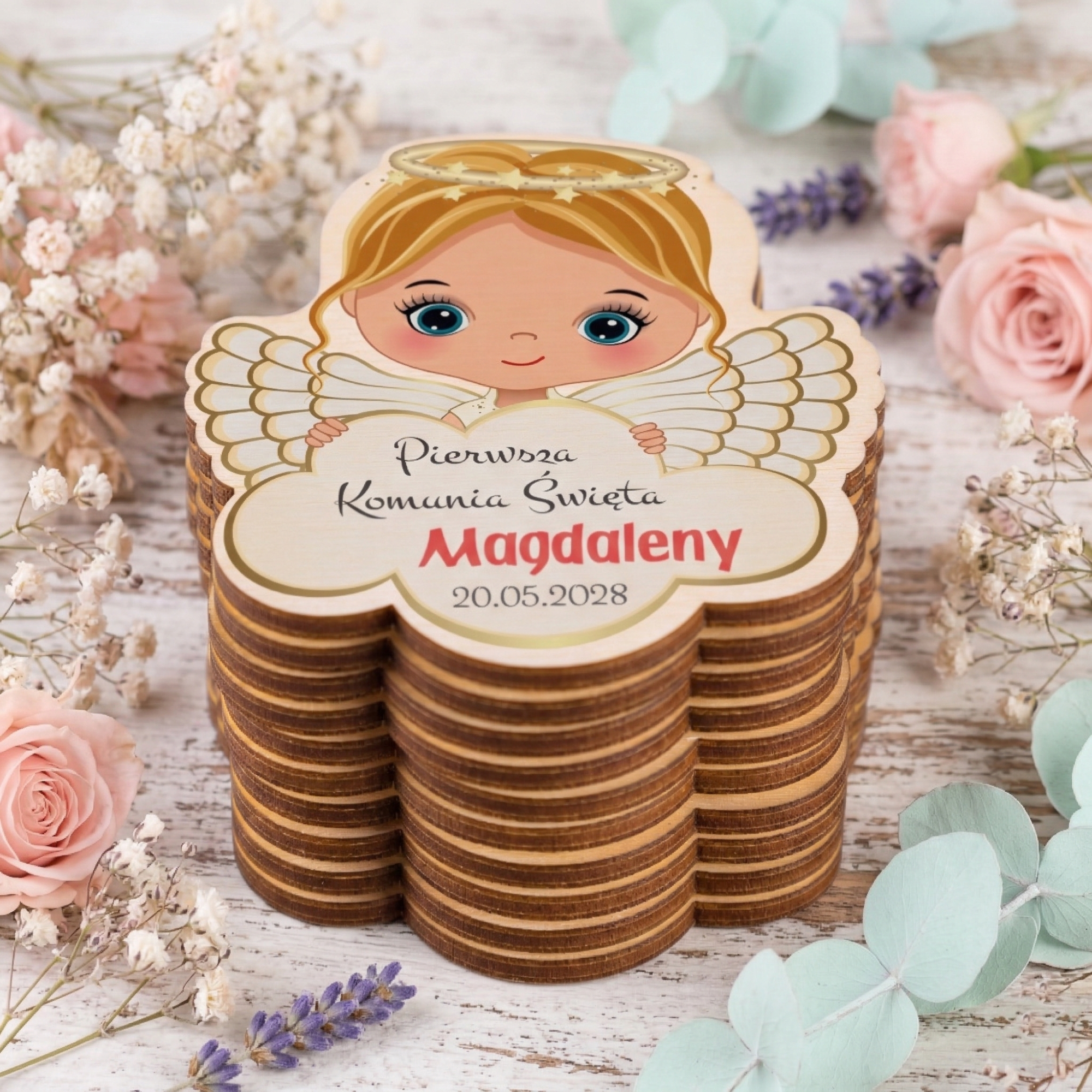 Magnes na lodówkę komunia ANIOŁKI PODZIĘKOWANIA KOMUNIJNE nadruk