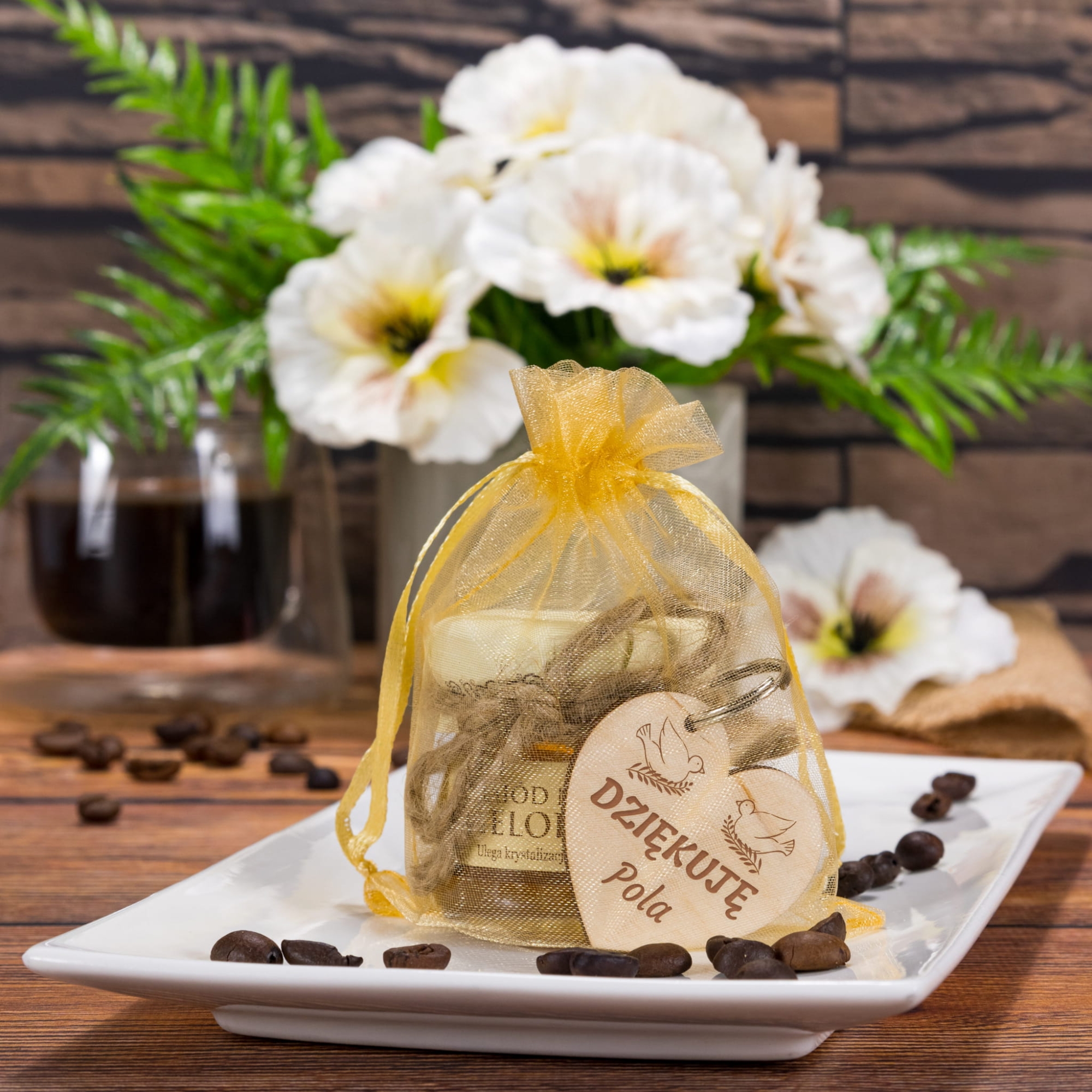 Podziękuj swoim bliskim za obecność w tym ważnym dniu. Zestaw miodu i breloczka z grawerem to wyjątkowa pamiątka komunijna, która łączy naturalną słodycz z eleganckim akcentem.