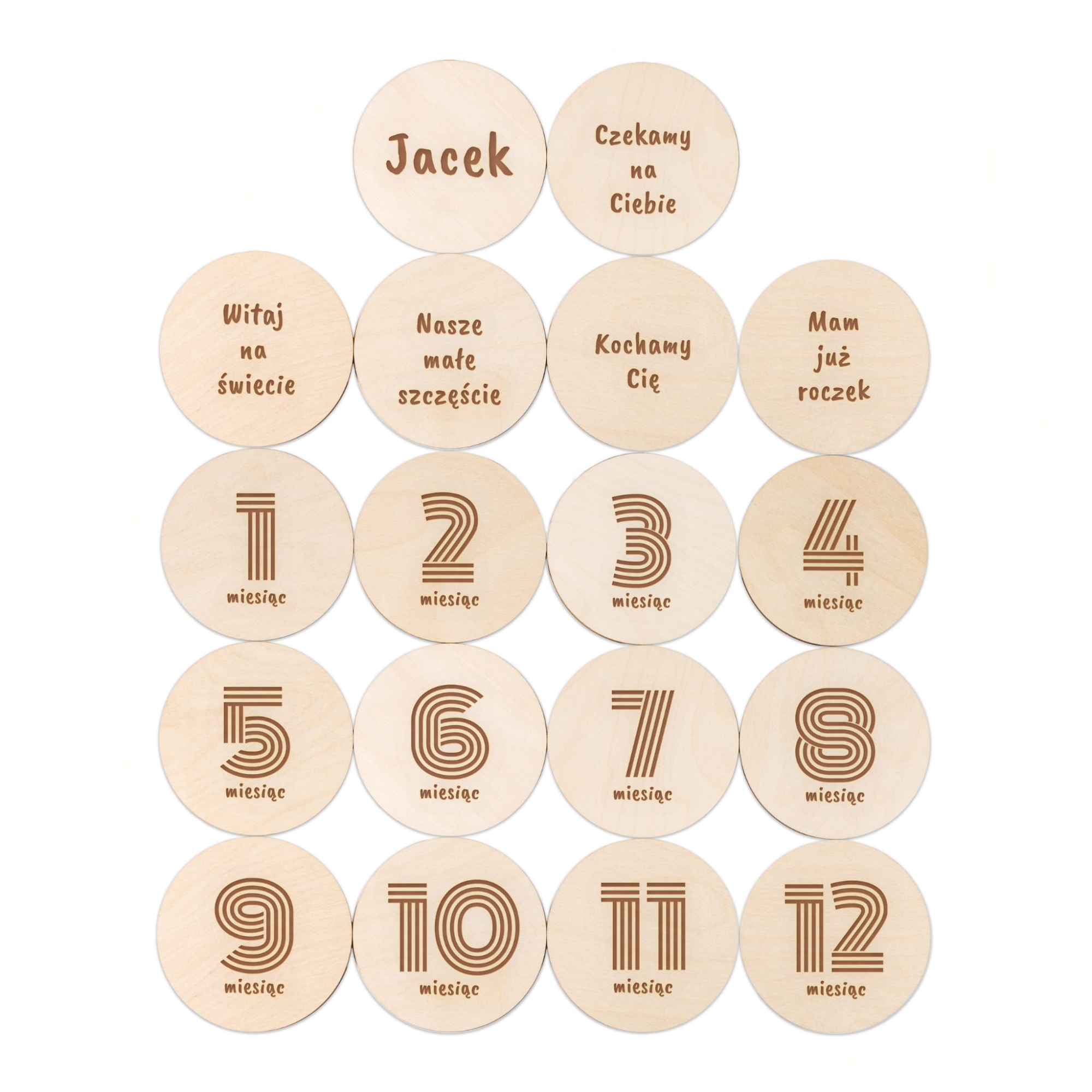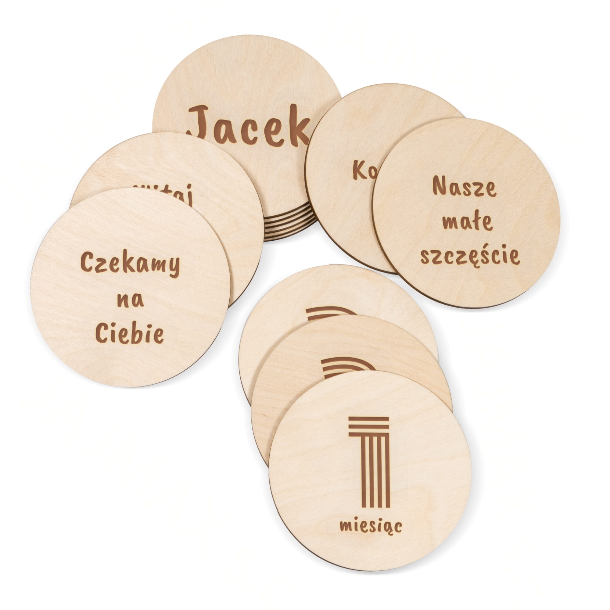 NATURALNE DREWNIANE FOTO TABLICZKI prezent dla noworodka 12 miesięcy