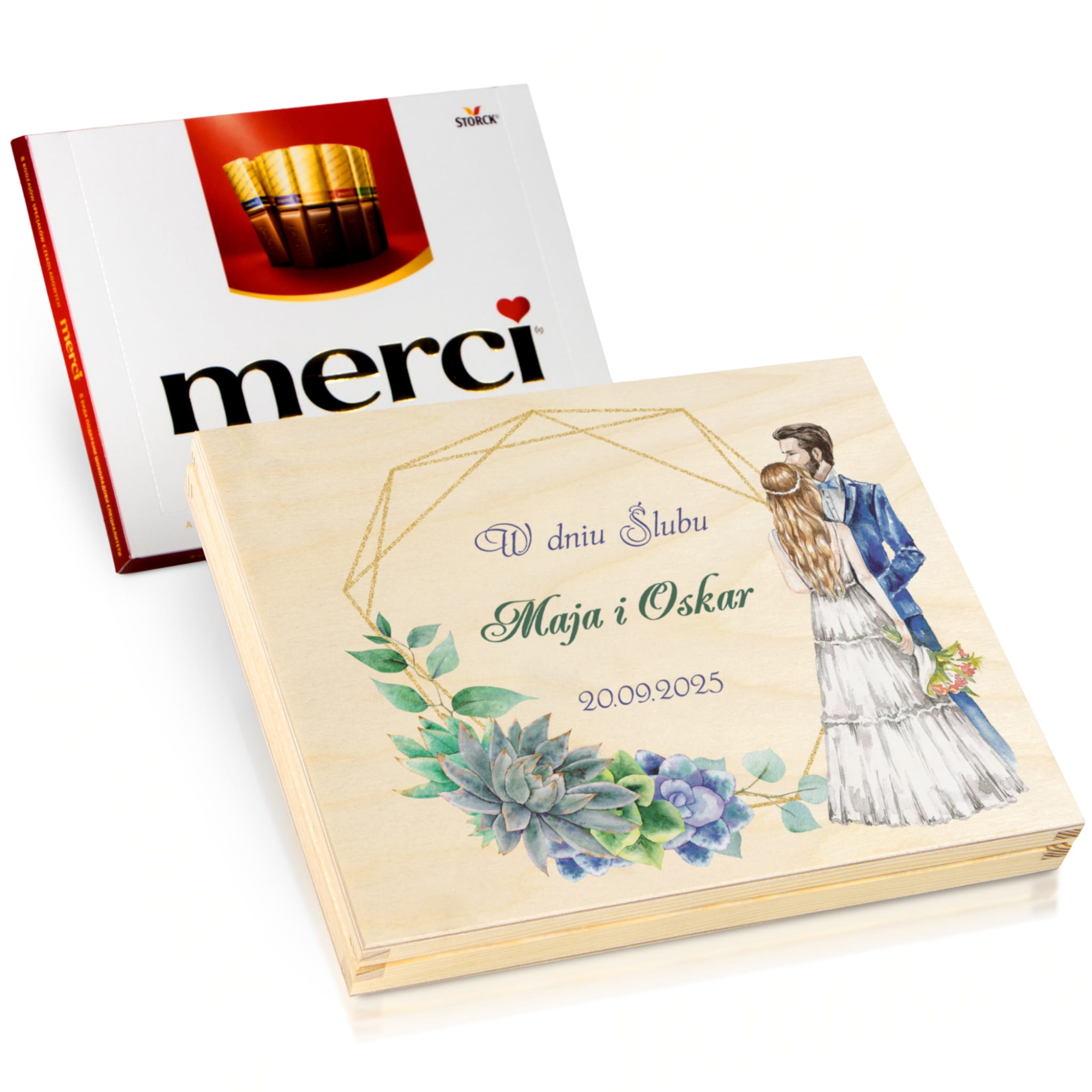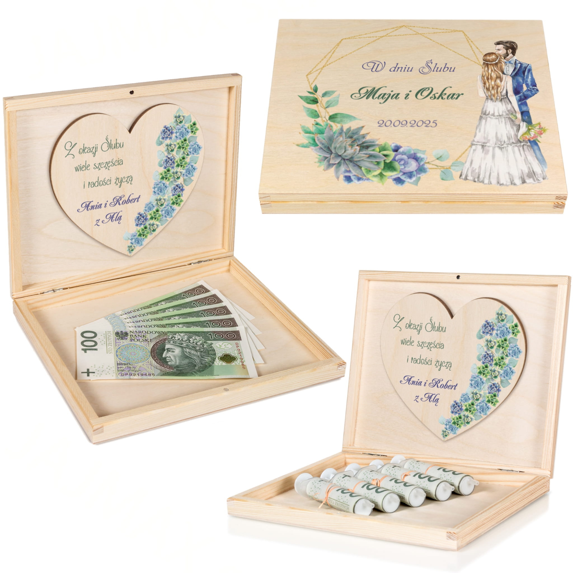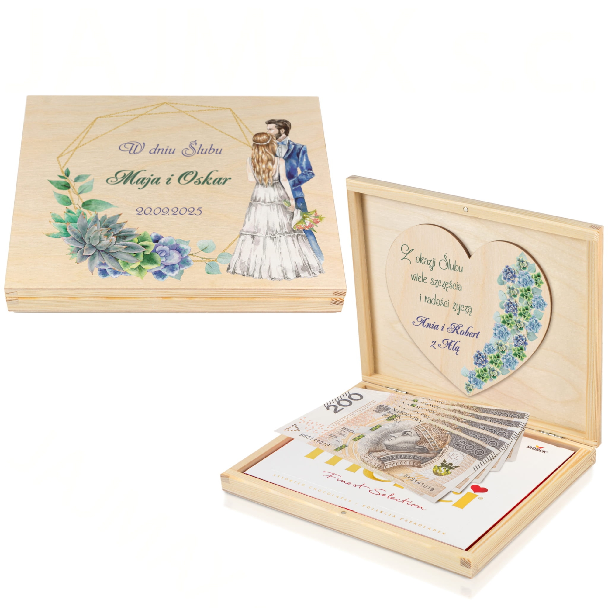 Drewniane pudełko na pieniądze z indywidualnym nadrukiem