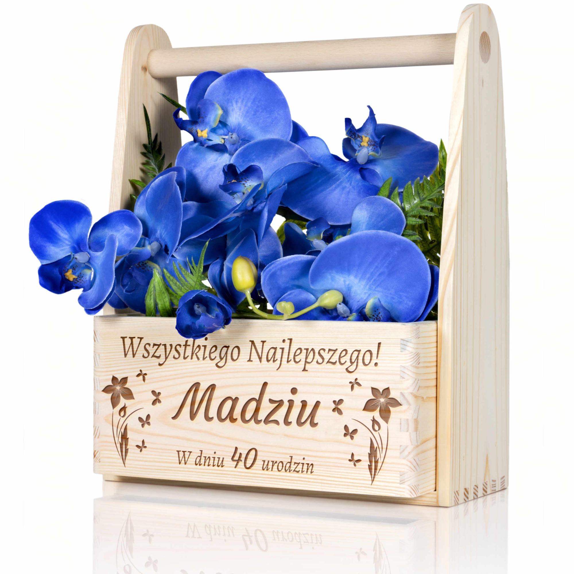 Drewniane nosidło na kwiaty lub nosidło na alkohol, prezent urodzinowy z indywidualnym grawerem