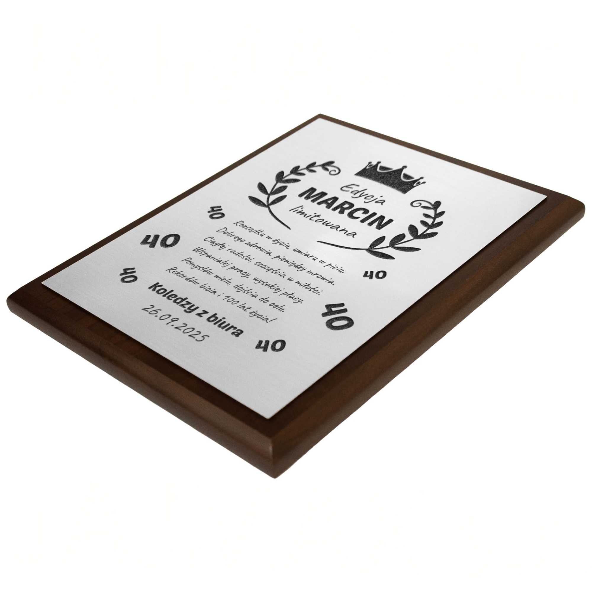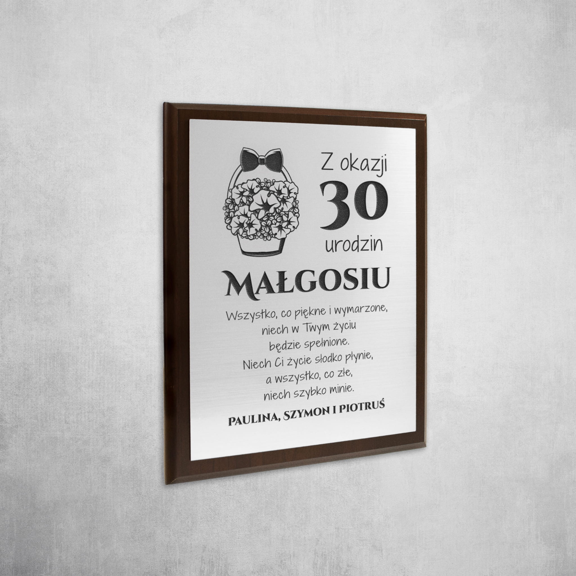 Drewniany srebrny obrazem z indywidualnym grawerem pomysł na prezent urodzinowy