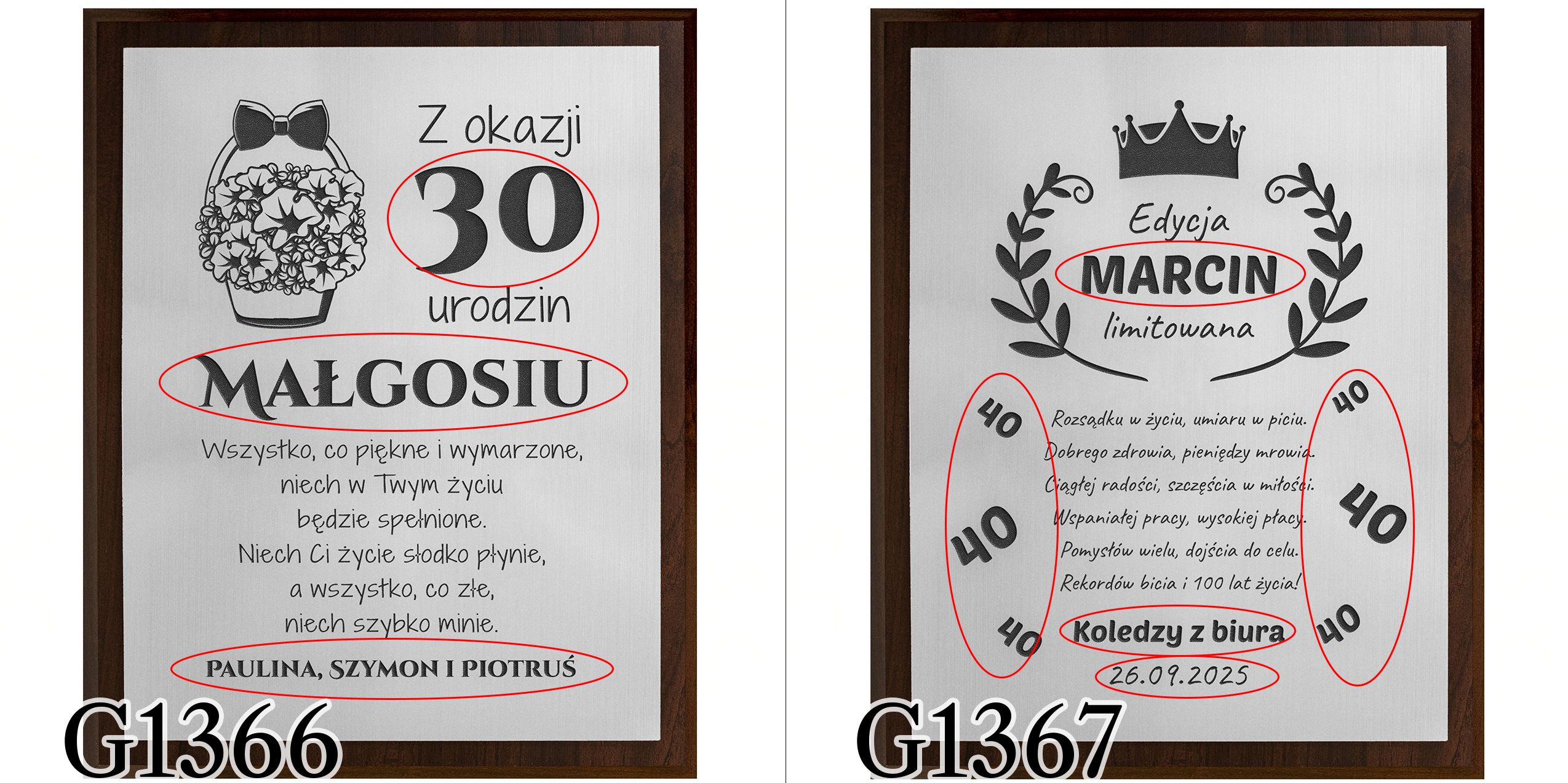 - wyślij do nas tekst w formie dokładnie takiej, jaka ma zostać umieszczona na produkcie tj. z zastosowaniem odpowiedniej pisowni, interpunkcji, odmiany imion itp.