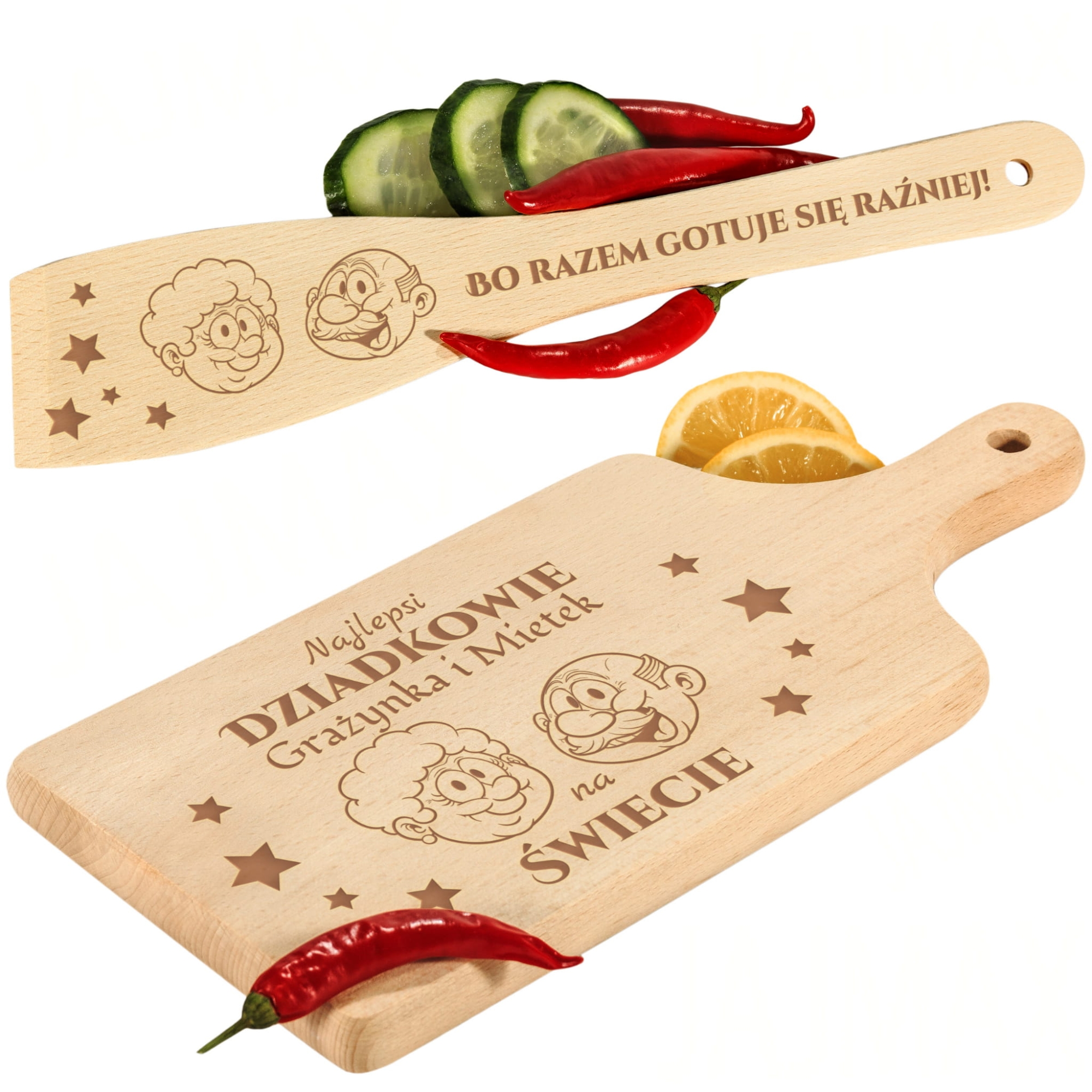 Oryginalny zestaw deska i łopatka z grawerem – prezent dla Dziadków, którzy kochają gotować