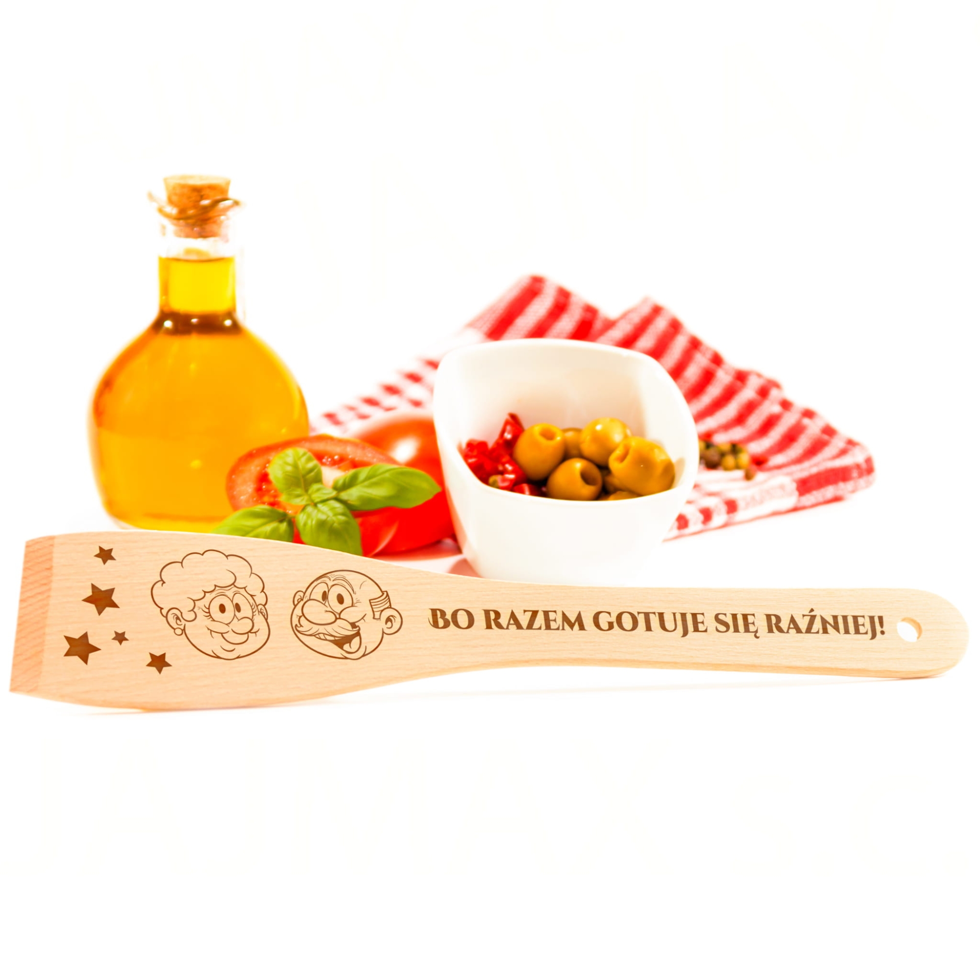 - W zestawie: łopatka kuchenna i deska kuchenna z indywidualnym grawerem