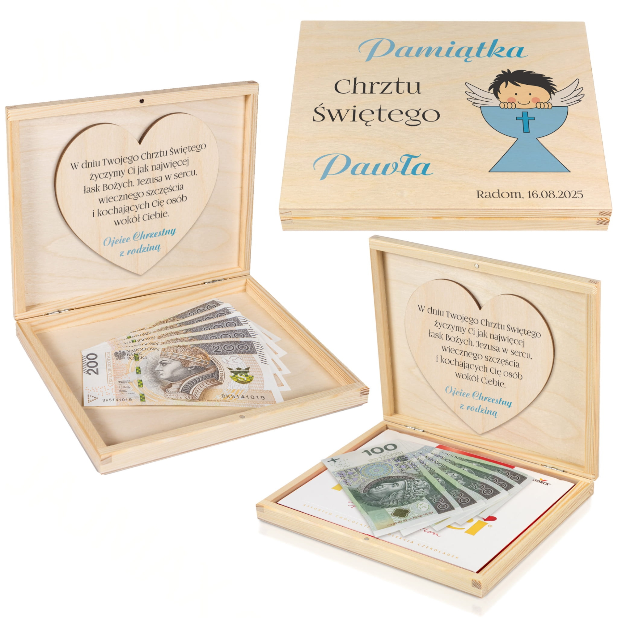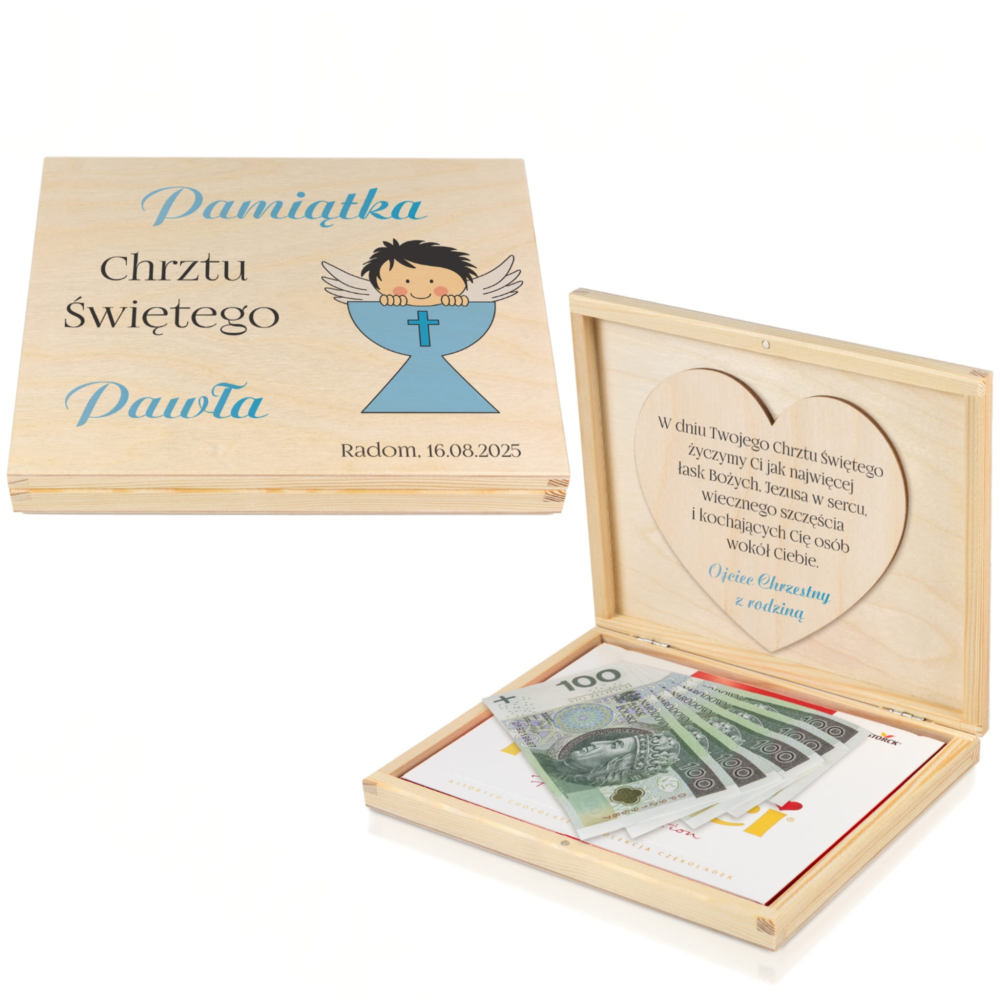 Oryginalny prezent na Chrzest dla chłopca pudełko na pieniądze
