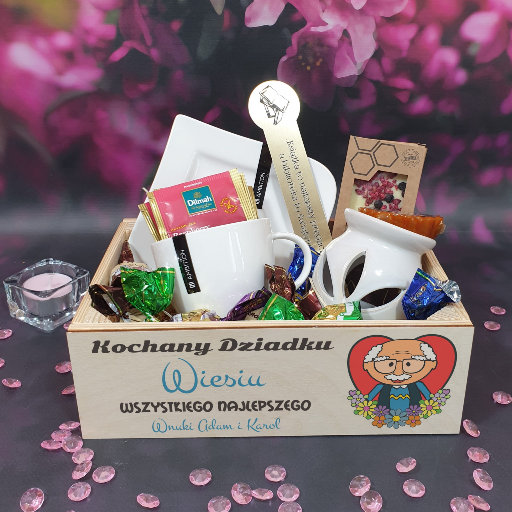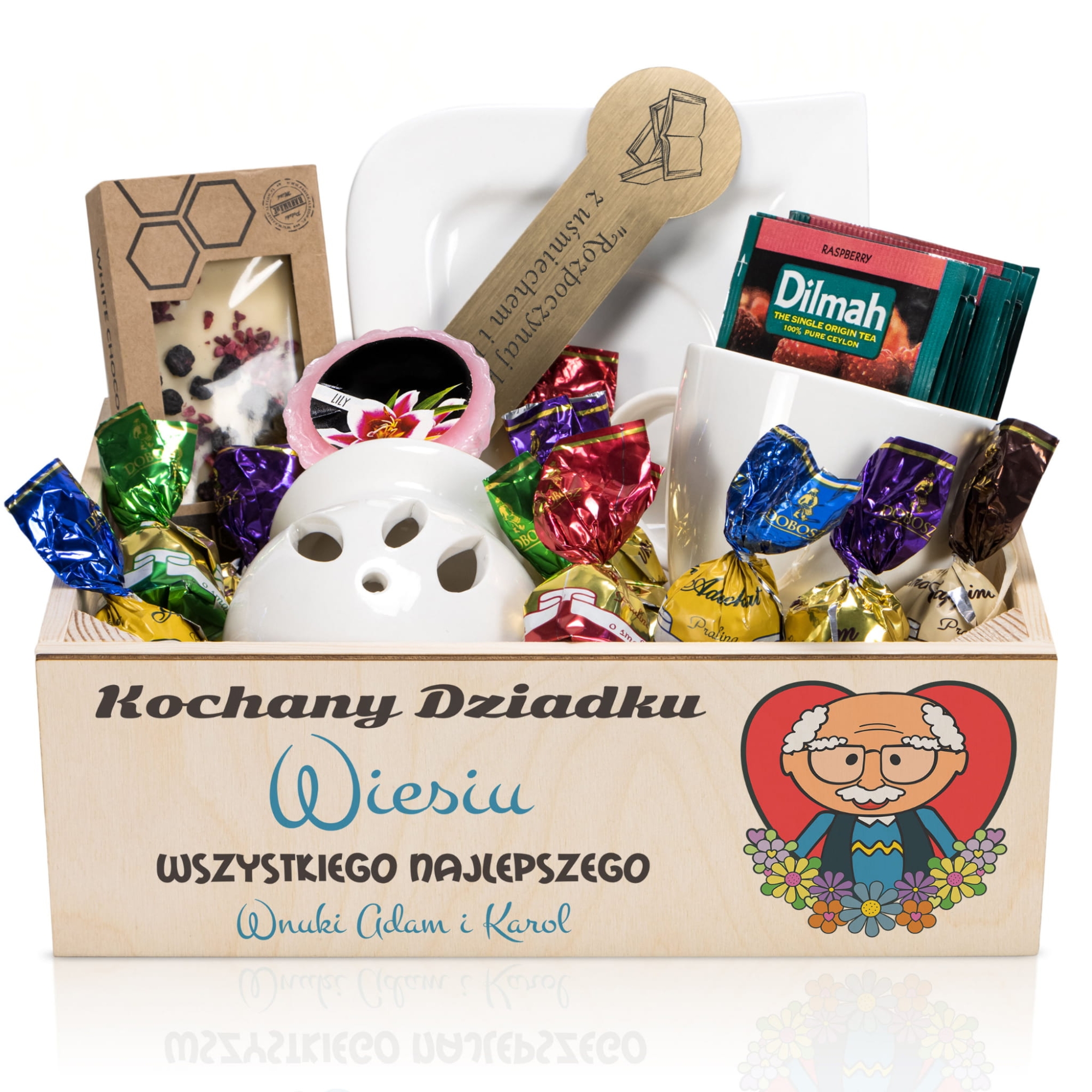 SUPER KOSZ PREZENTOWY zestaw dla Babci na Dzień Babci z imieniem BOX PREZENTOWY DLA BABCI życzenia grawer z imieniem super prezent SKRZYNECZKA ZESTAW UPOMINKOWY pomysł na prezent dla Dziadka grawer DREWNIANA SKRZYNECZKA zestaw upominkowy na Dzień Dziadka grawer Wyjątkowy prezent na DZIEŃ BABCI KOSZ PREZENTOWY nadruk ZESTAW PREZENTOWY Dla Babci Na Dzień Babci grawer Kosz Upominkowy Dla Babci Dla Dziadka Nadruk