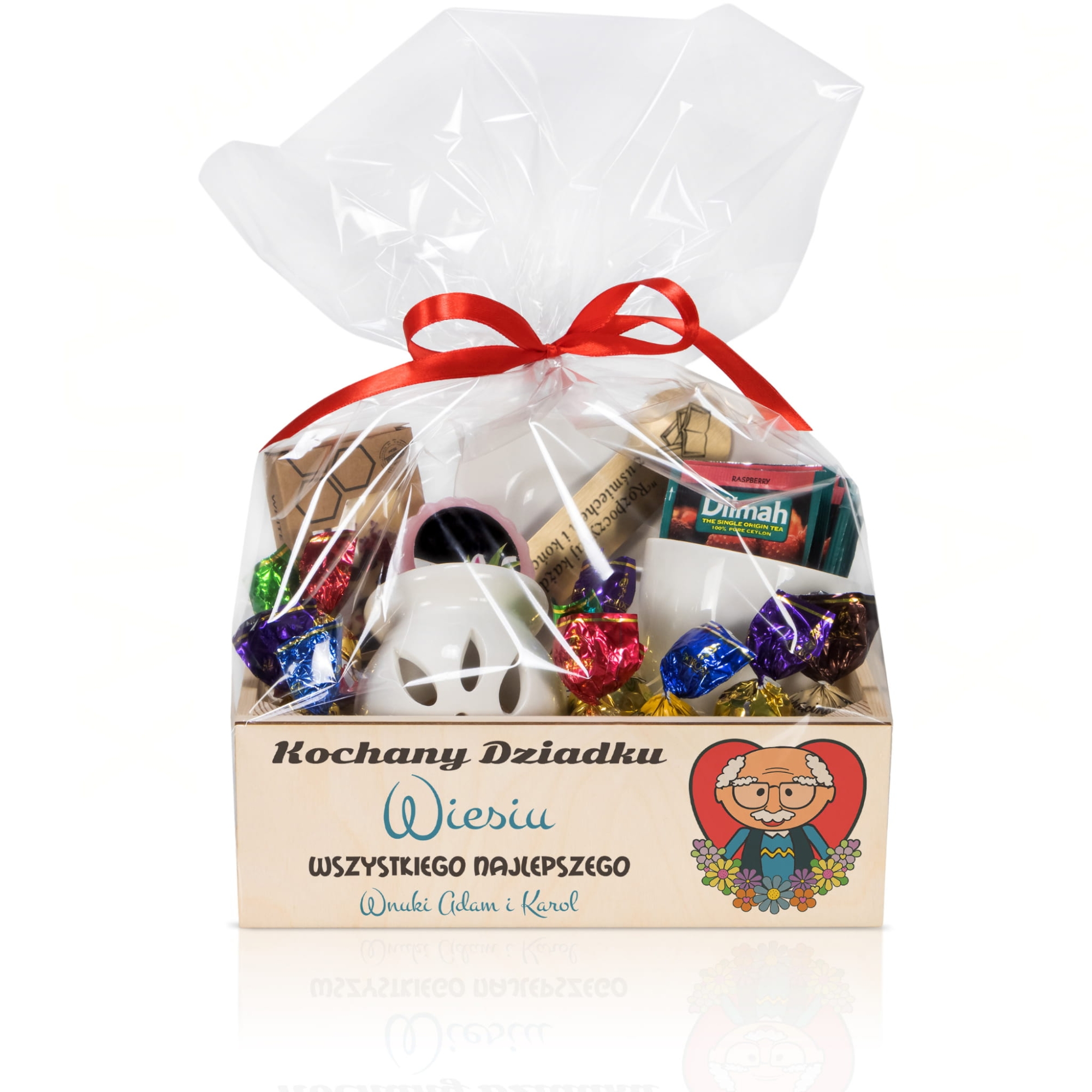 Kosz upominkowy na Dzień Dziadka zestaw prezentowy z dedykacją