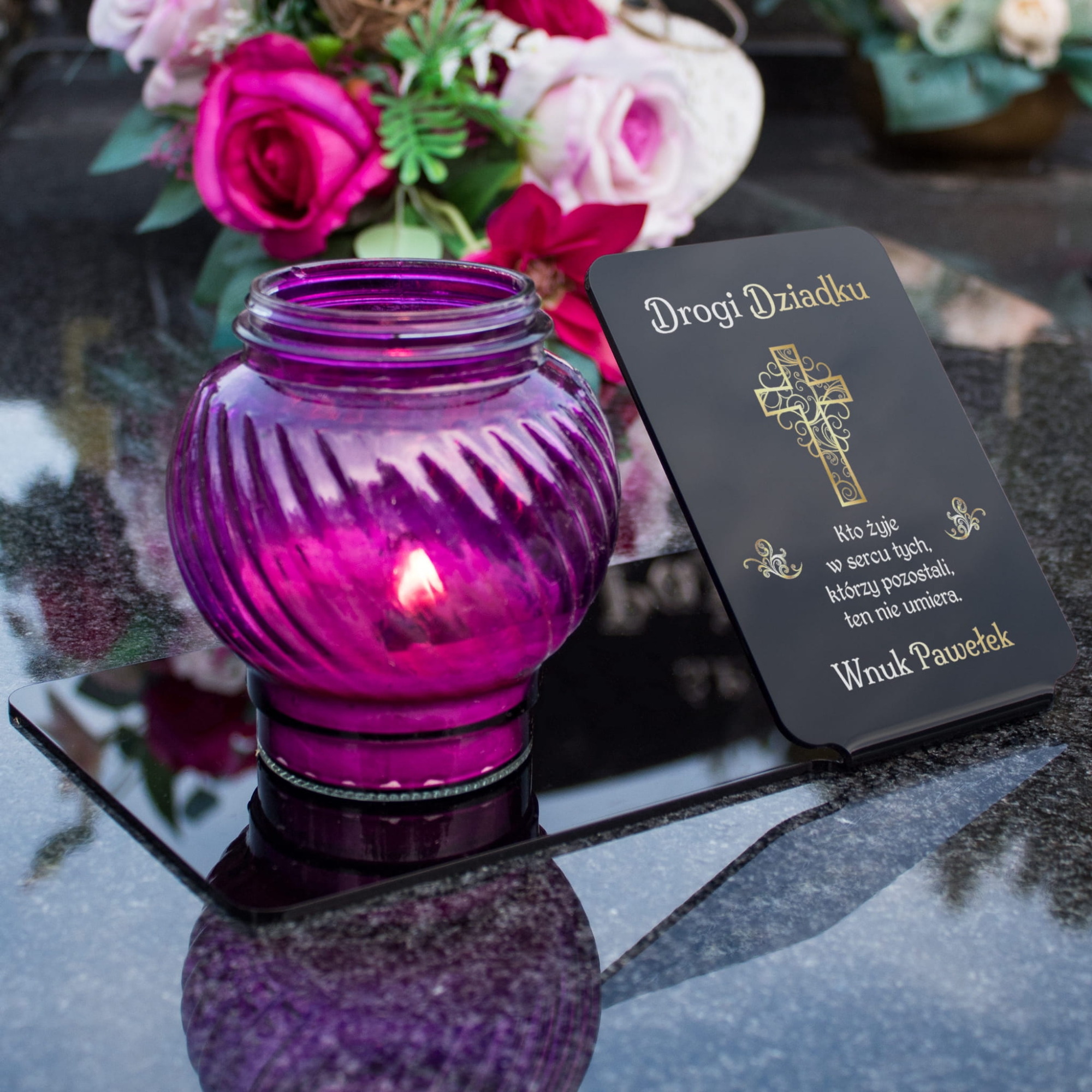 PODSTAWKA POD ZNICZ DLA DZIADKA nowoczesna ozdoba na cmentarz