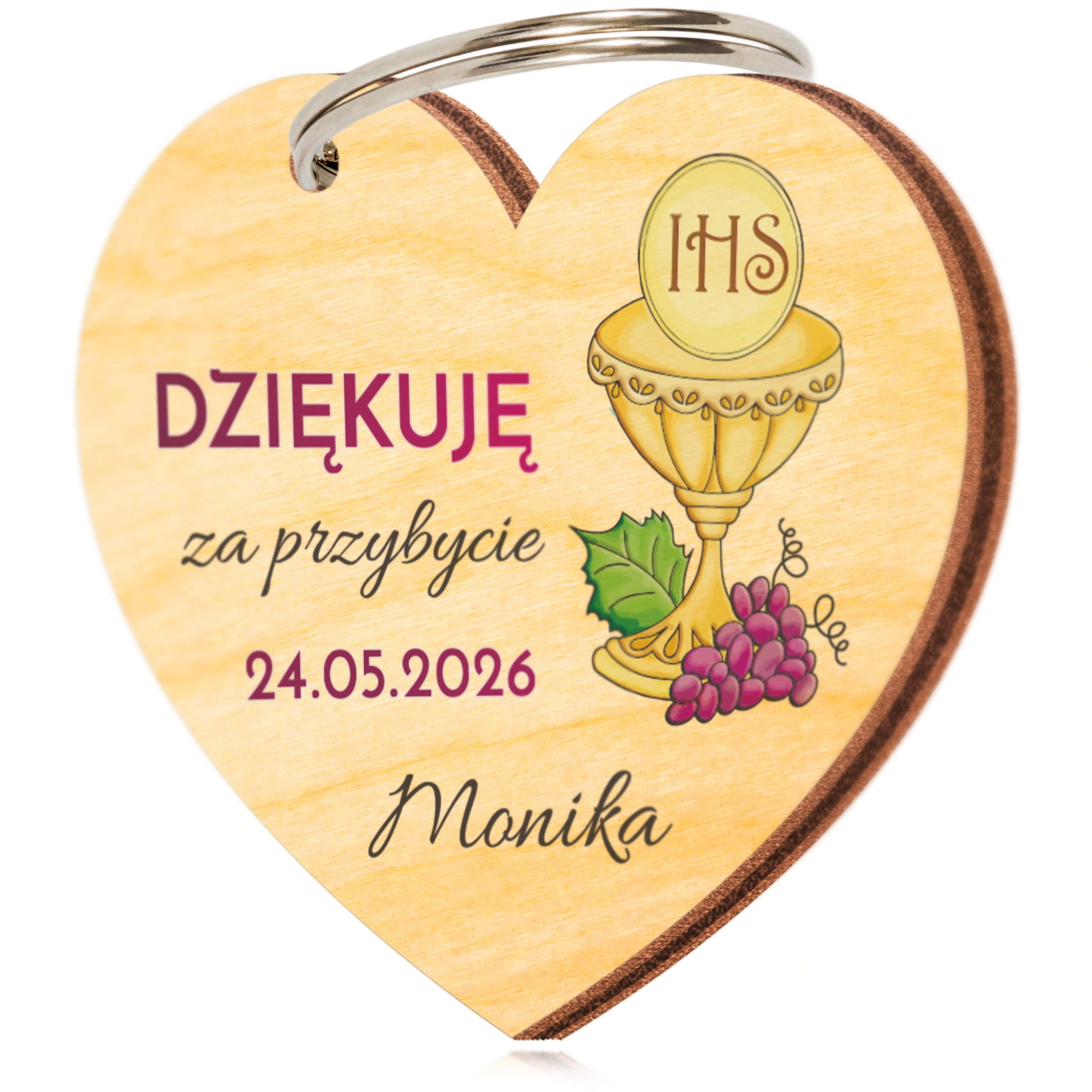 Słodki upominek cukierki z brelokiem serce z indywidualnym nadrukiem