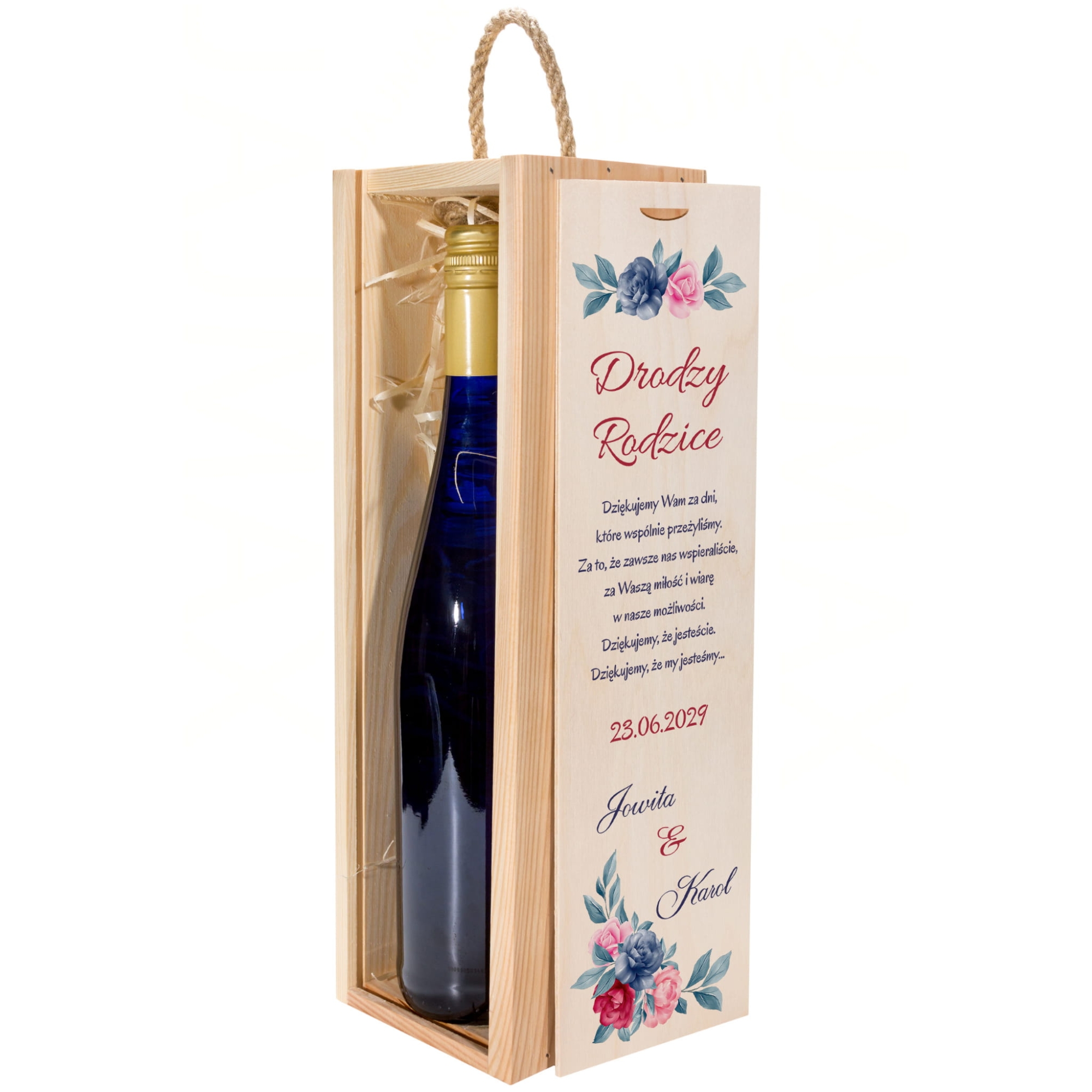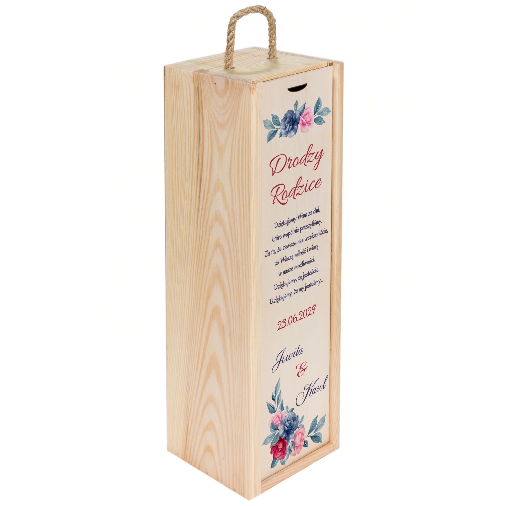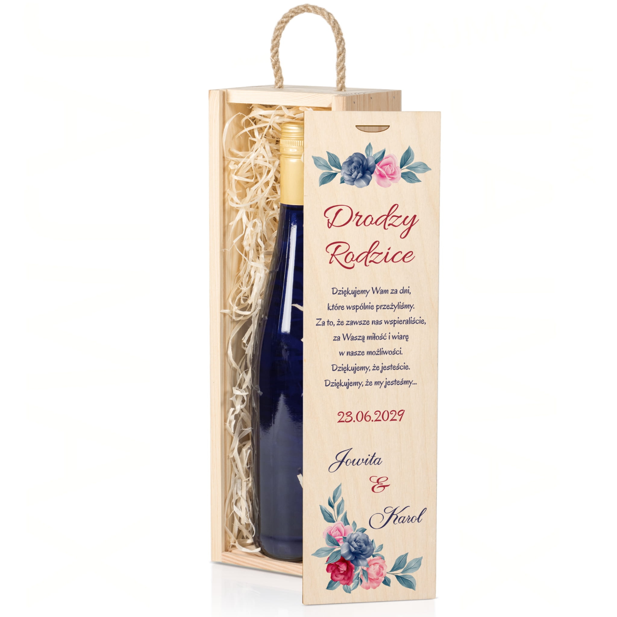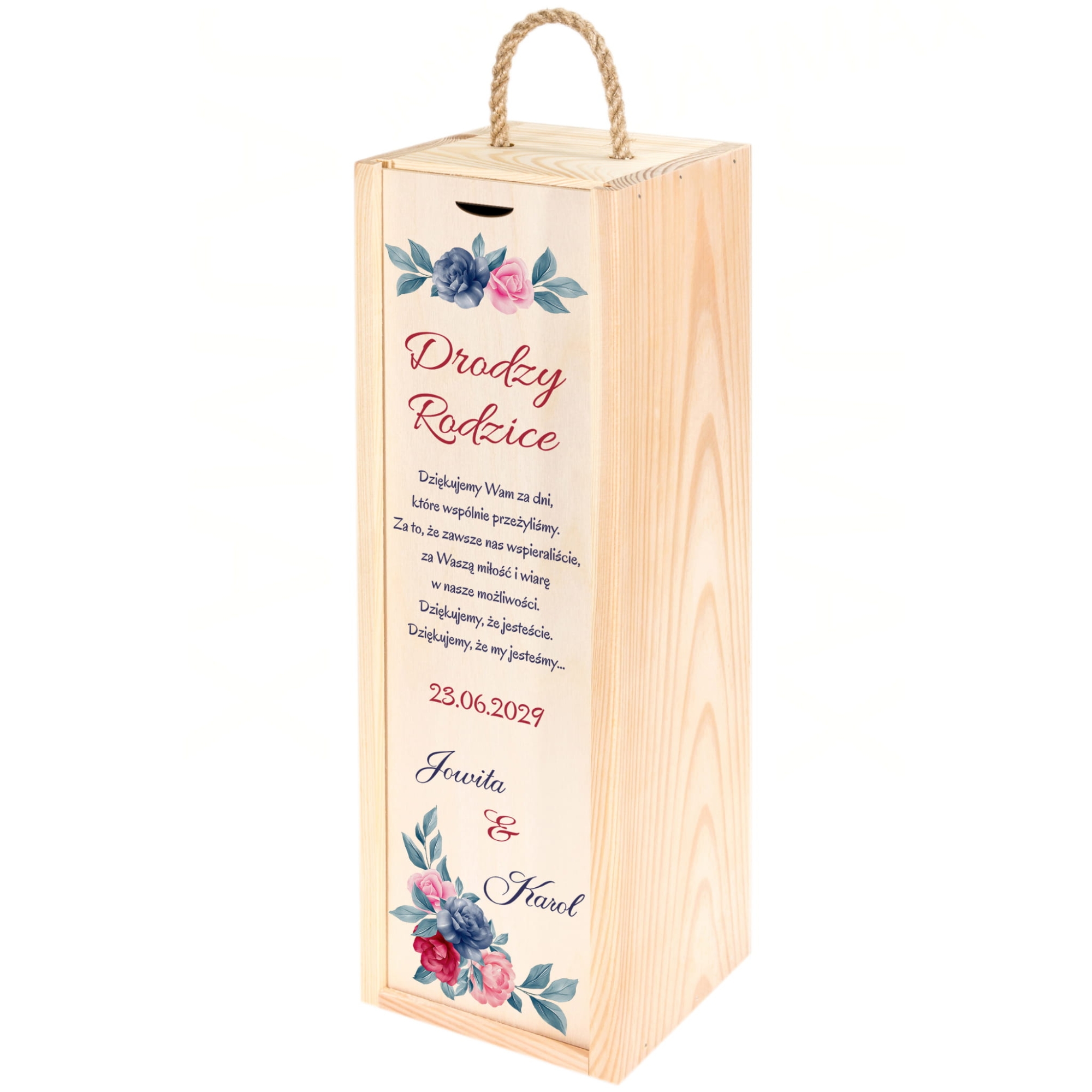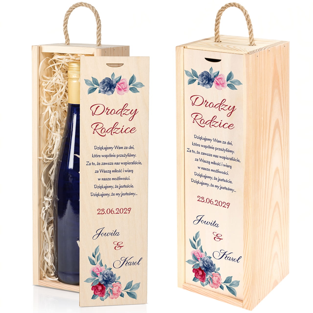 Skrzynka na wino piękne podziękowania dla rodziców z personalizacją