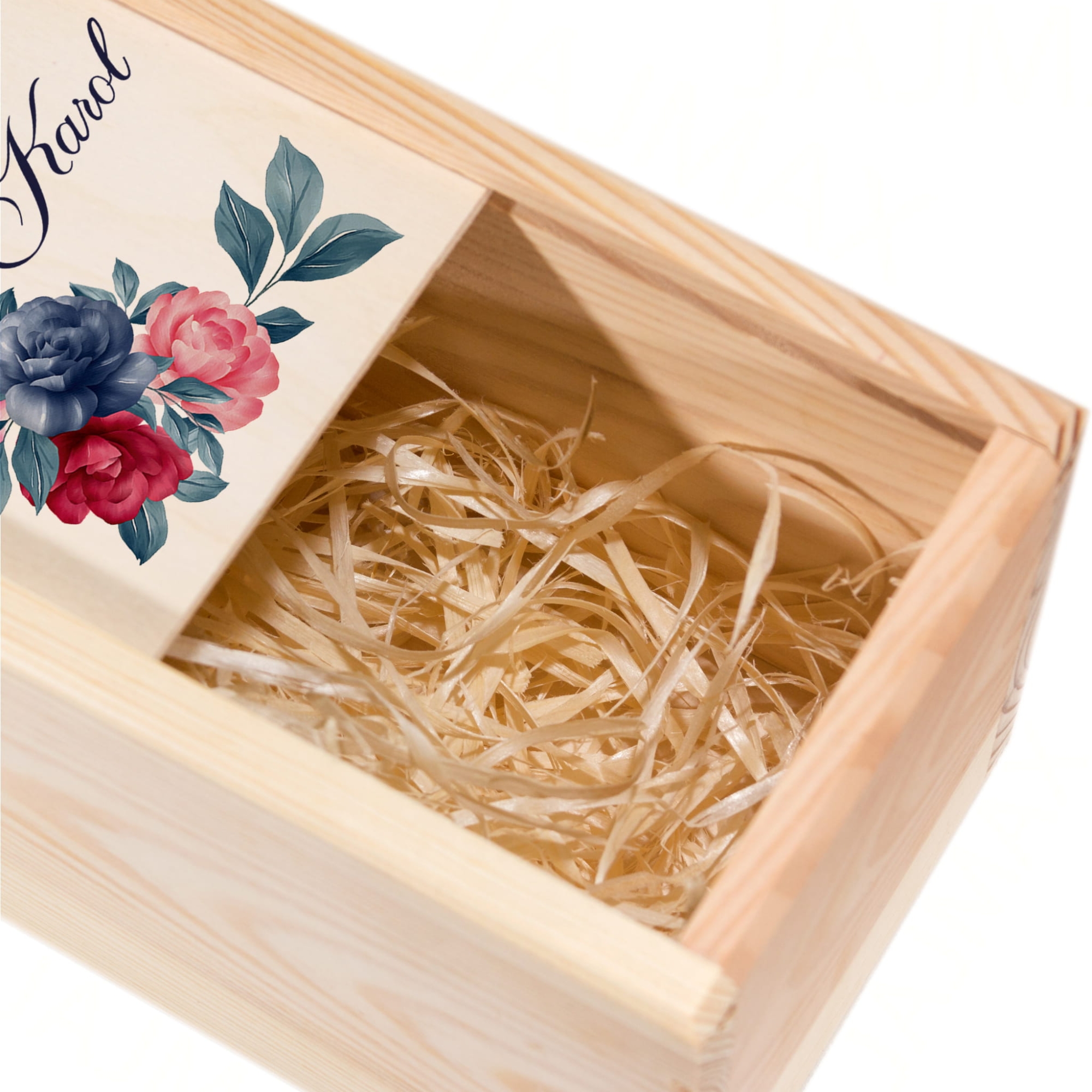 Wypełnienie: ekologiczna wełna drzewna (w zestawie) – bezpieczne dla zawartości, efektowne wizualnie