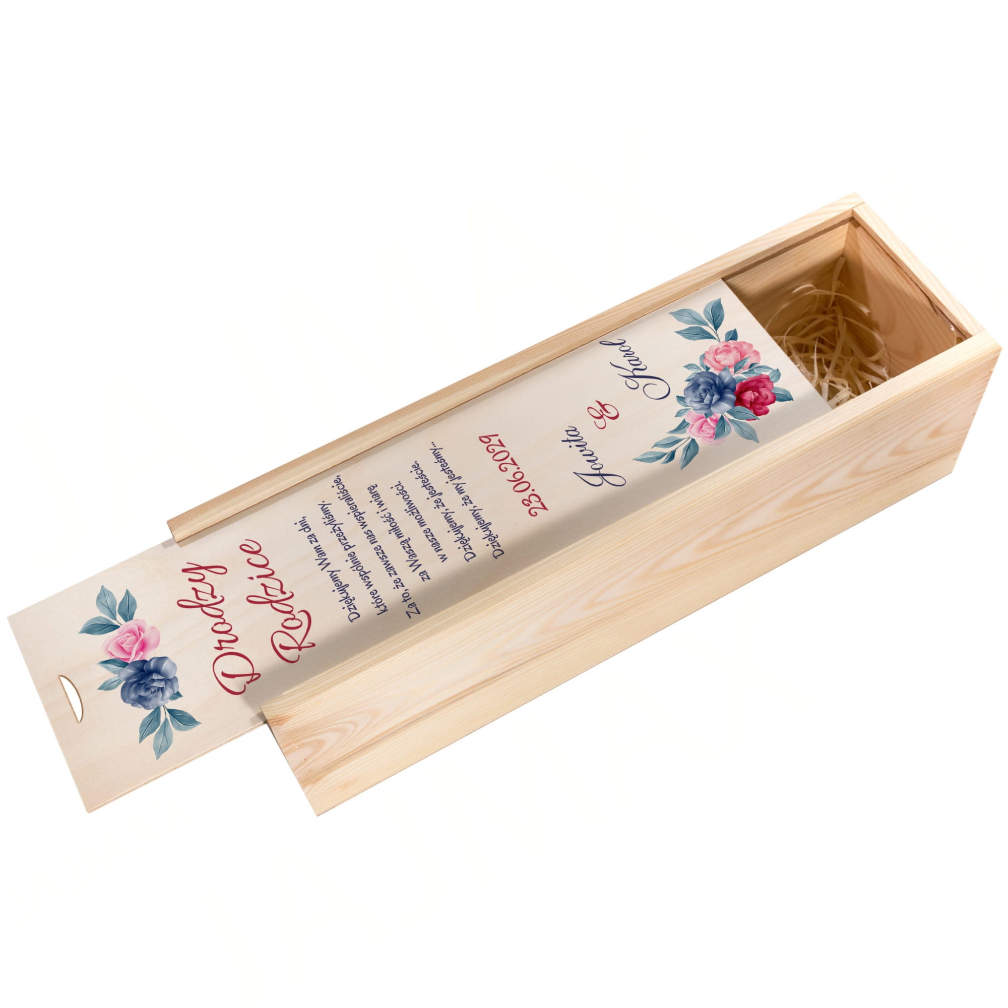 PODZIĘKOWANIE WESELNE DLA RODZICÓW skrzynka na wino z dedykacją