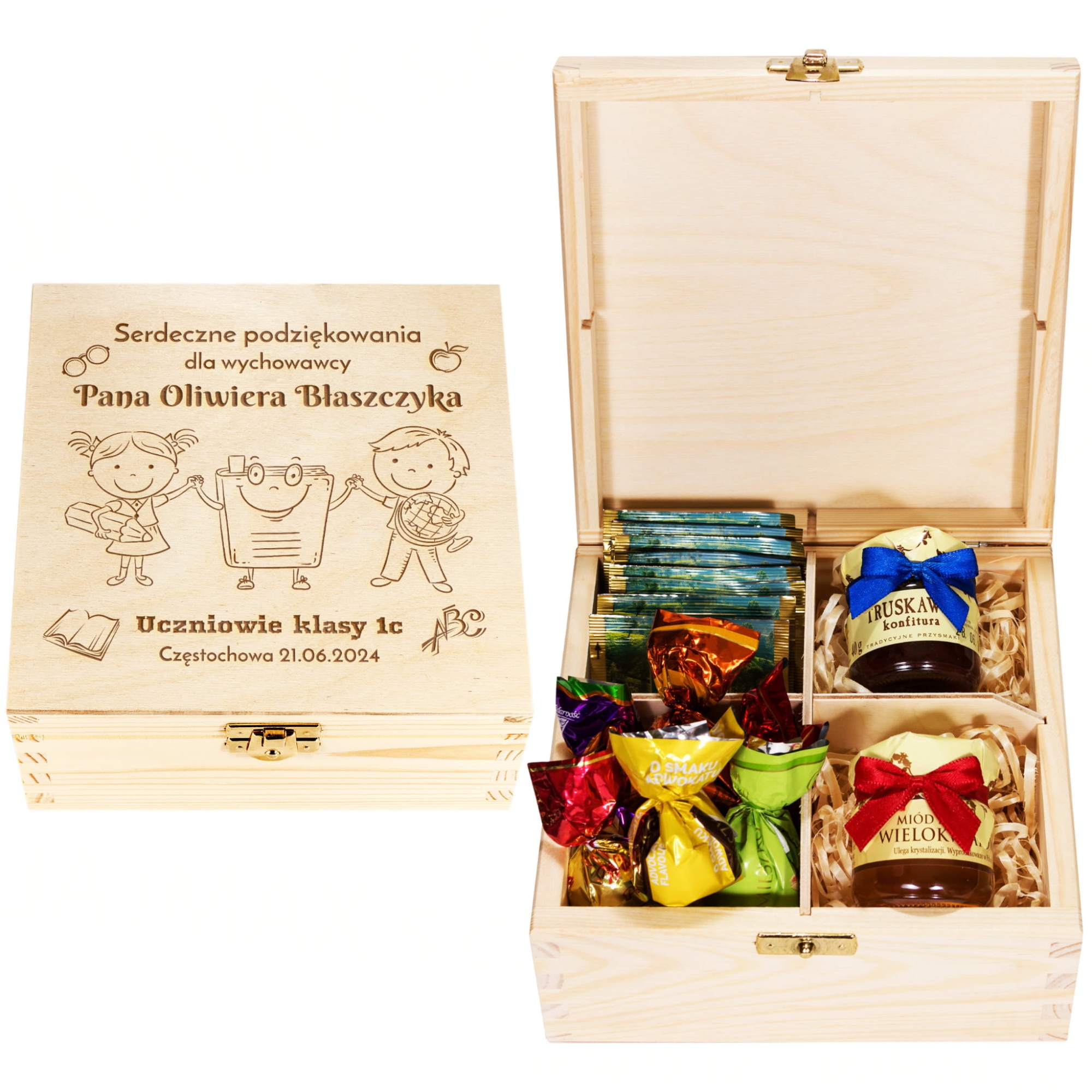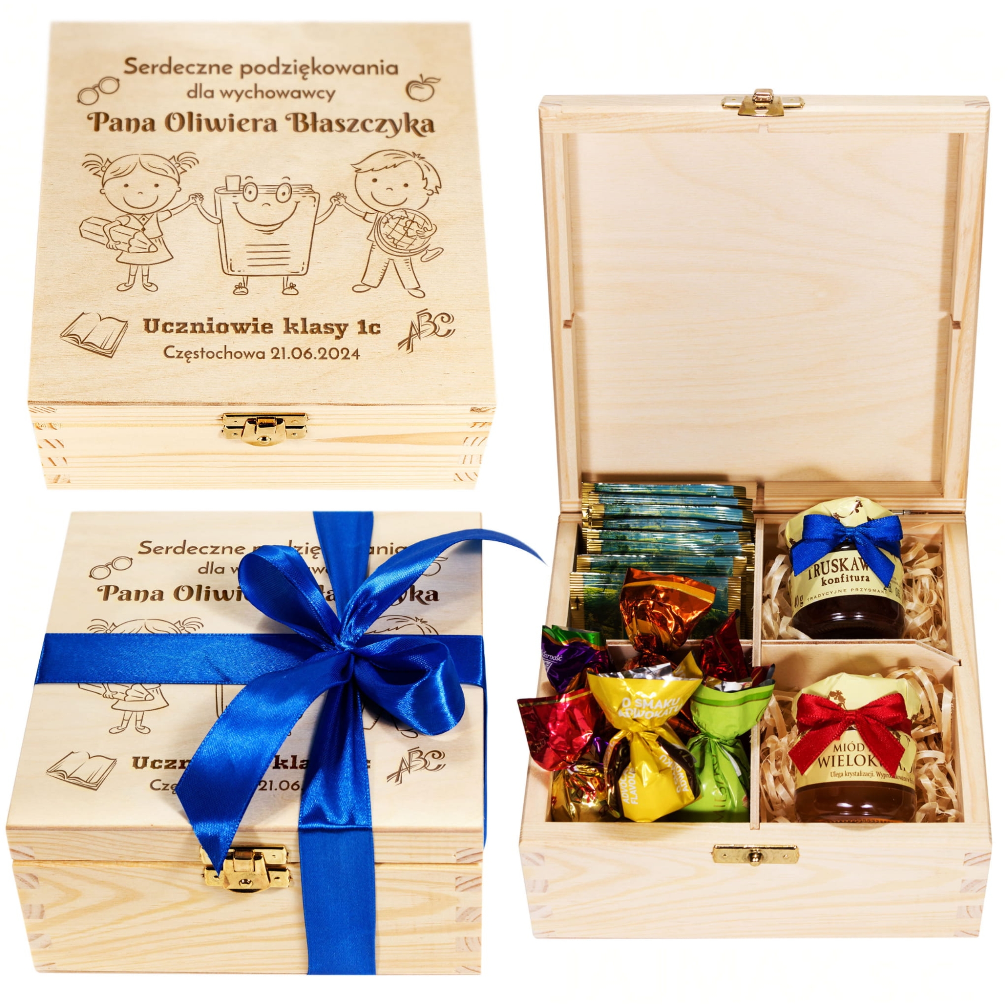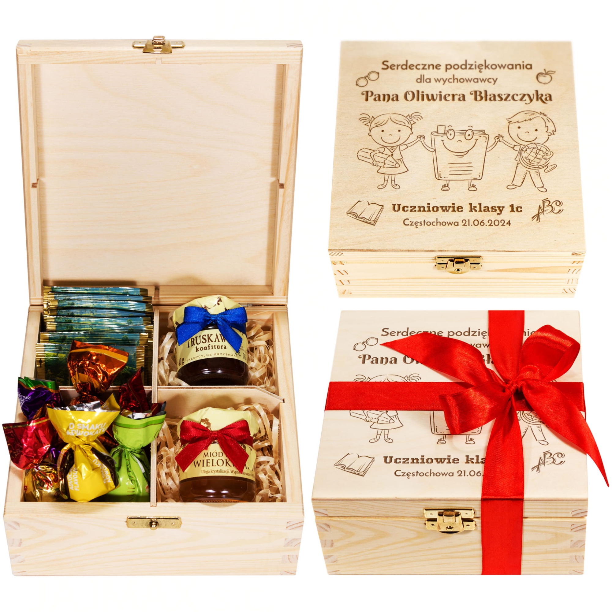 POMYSŁ NA PREZENT DLA NAUCZYCIELA pudełko słodkości z grawerem