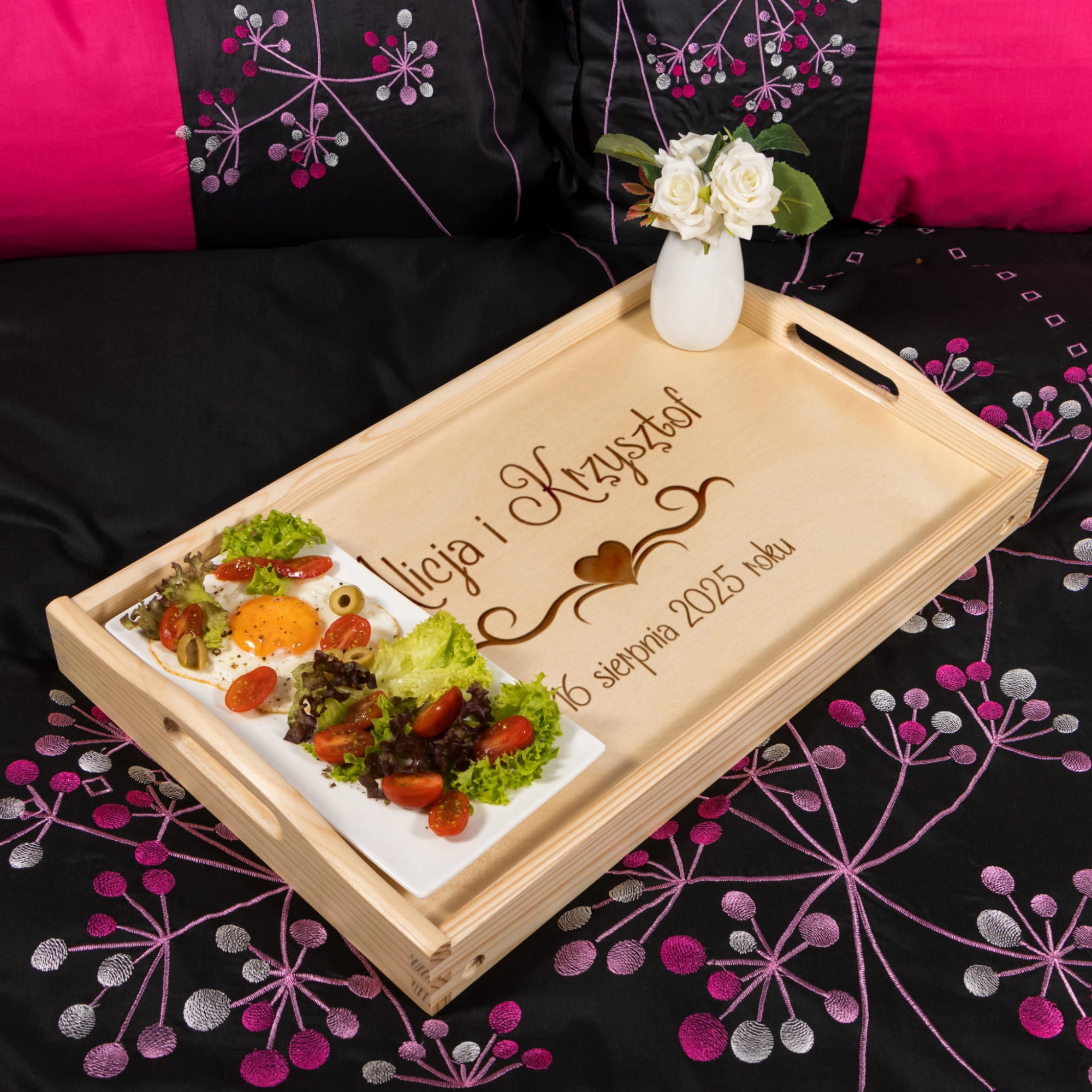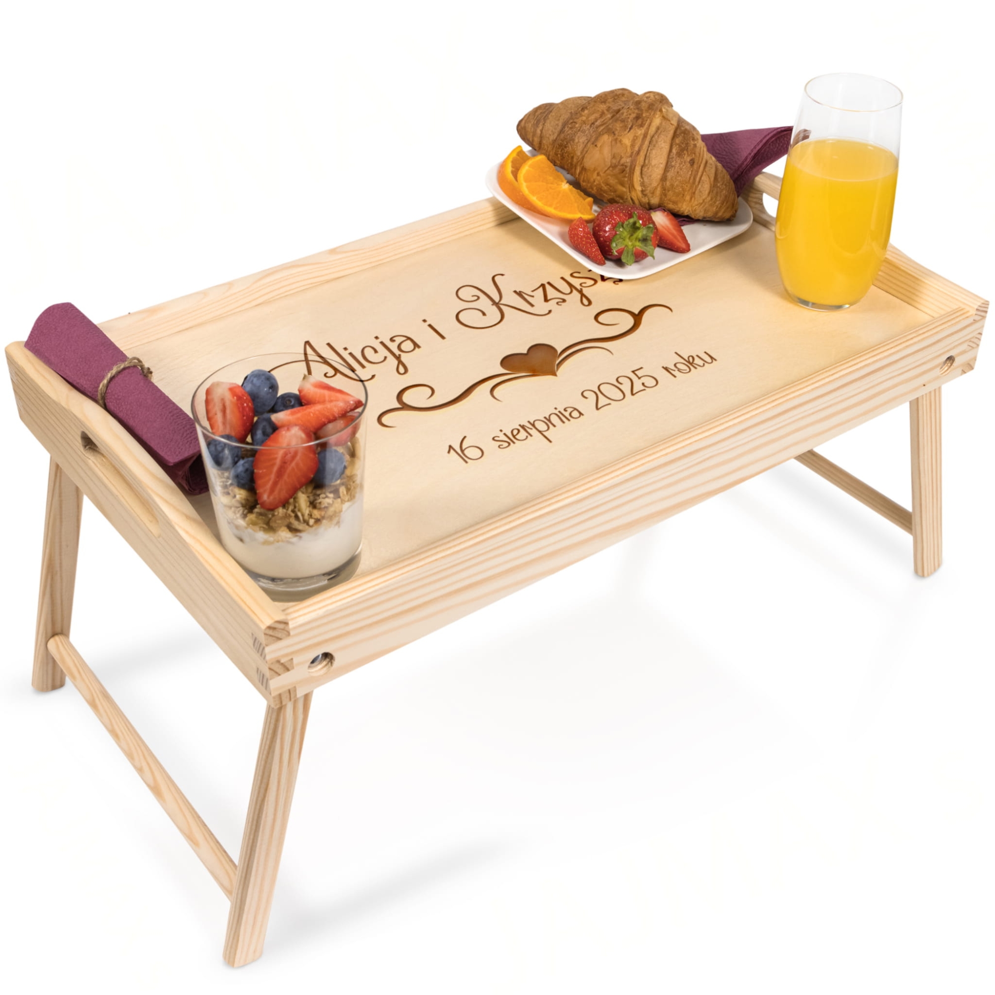 Drewniany stolik śniadaniowy z indywidualnym grawerem