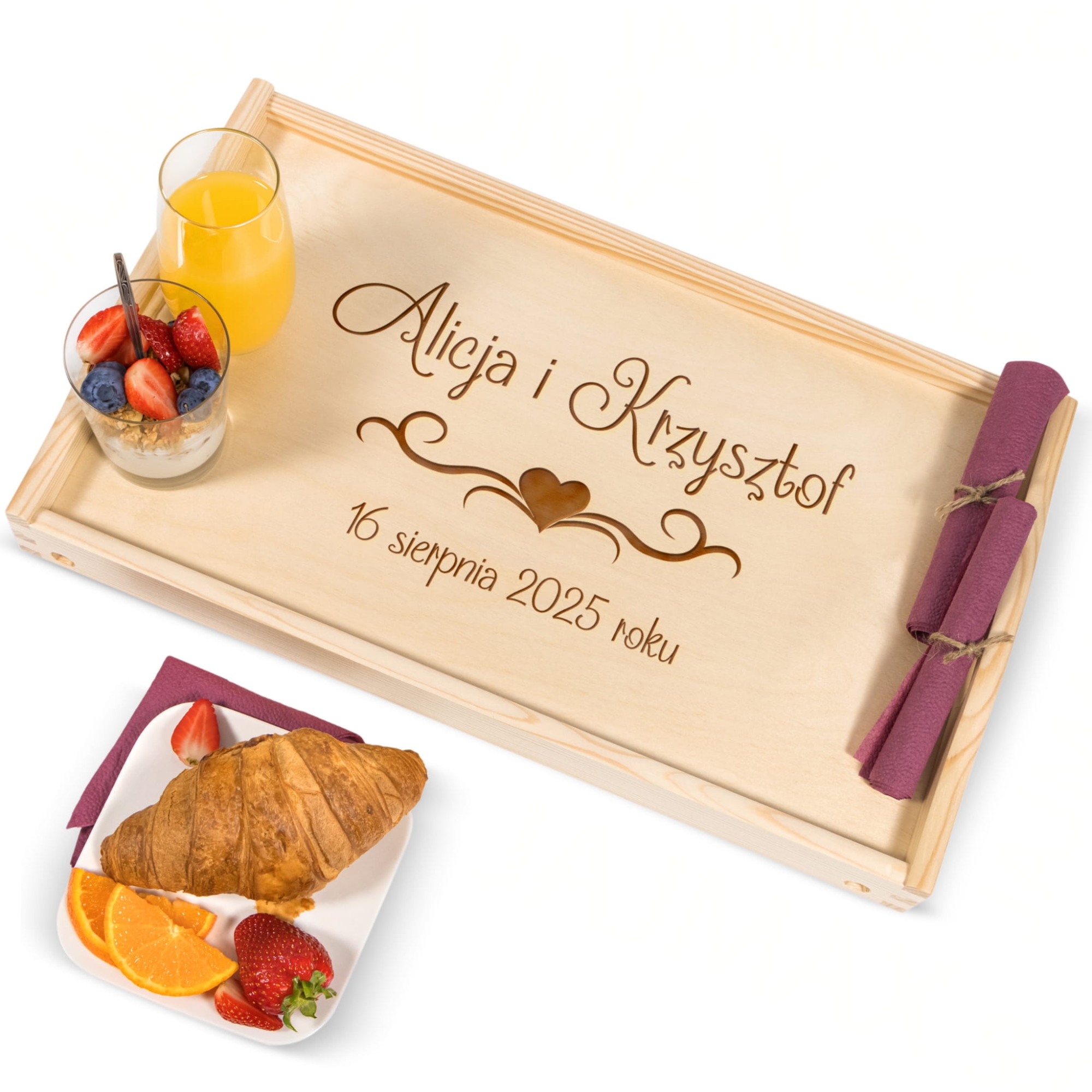 Stolik śniadaniowy do łóżka dla Państwa Młodych