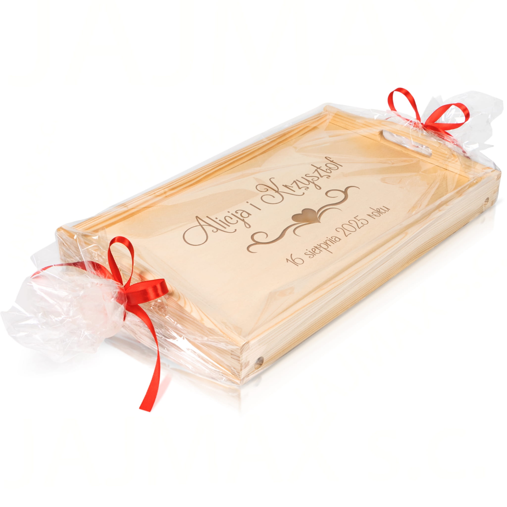 POMYSŁ NA PREZENT NA ŚLUB drewniany stoliczek grawer serce imiona nowożeńców
