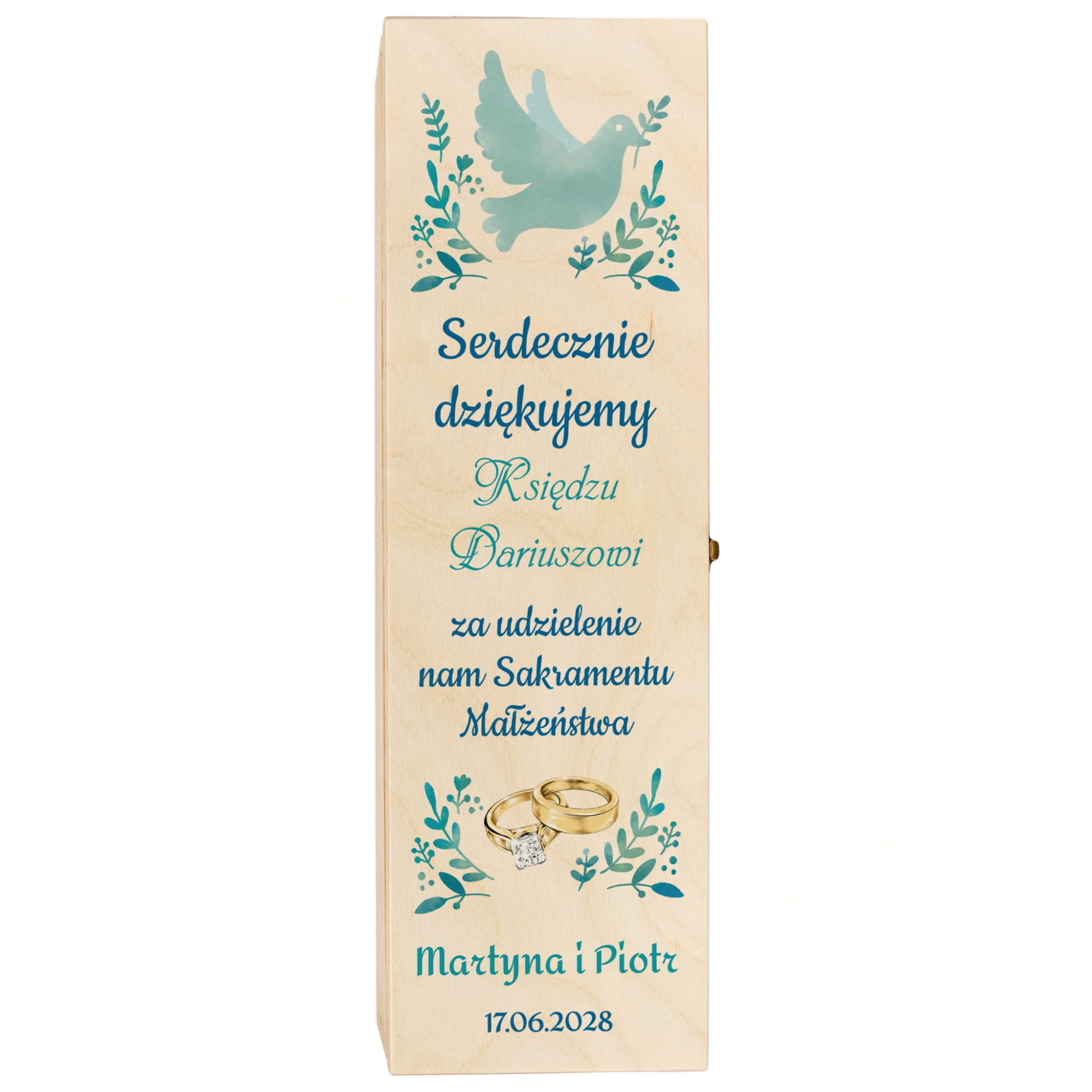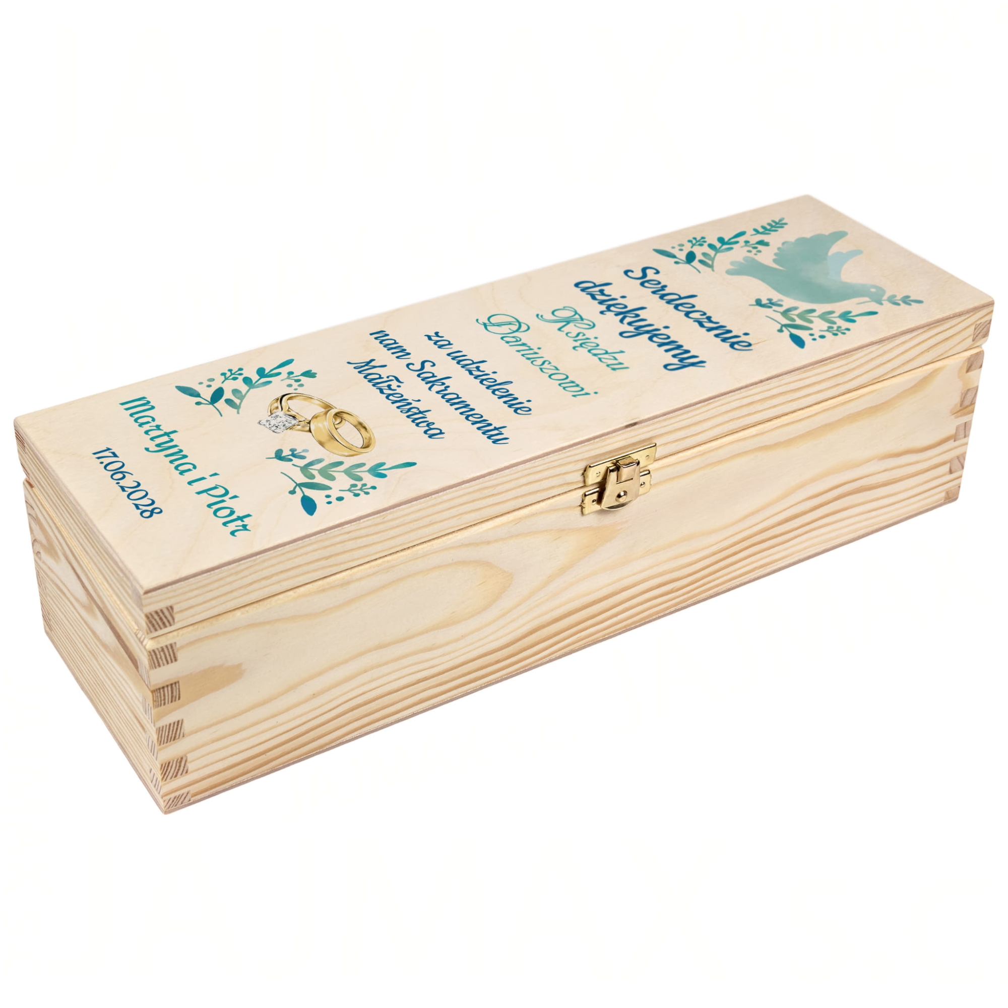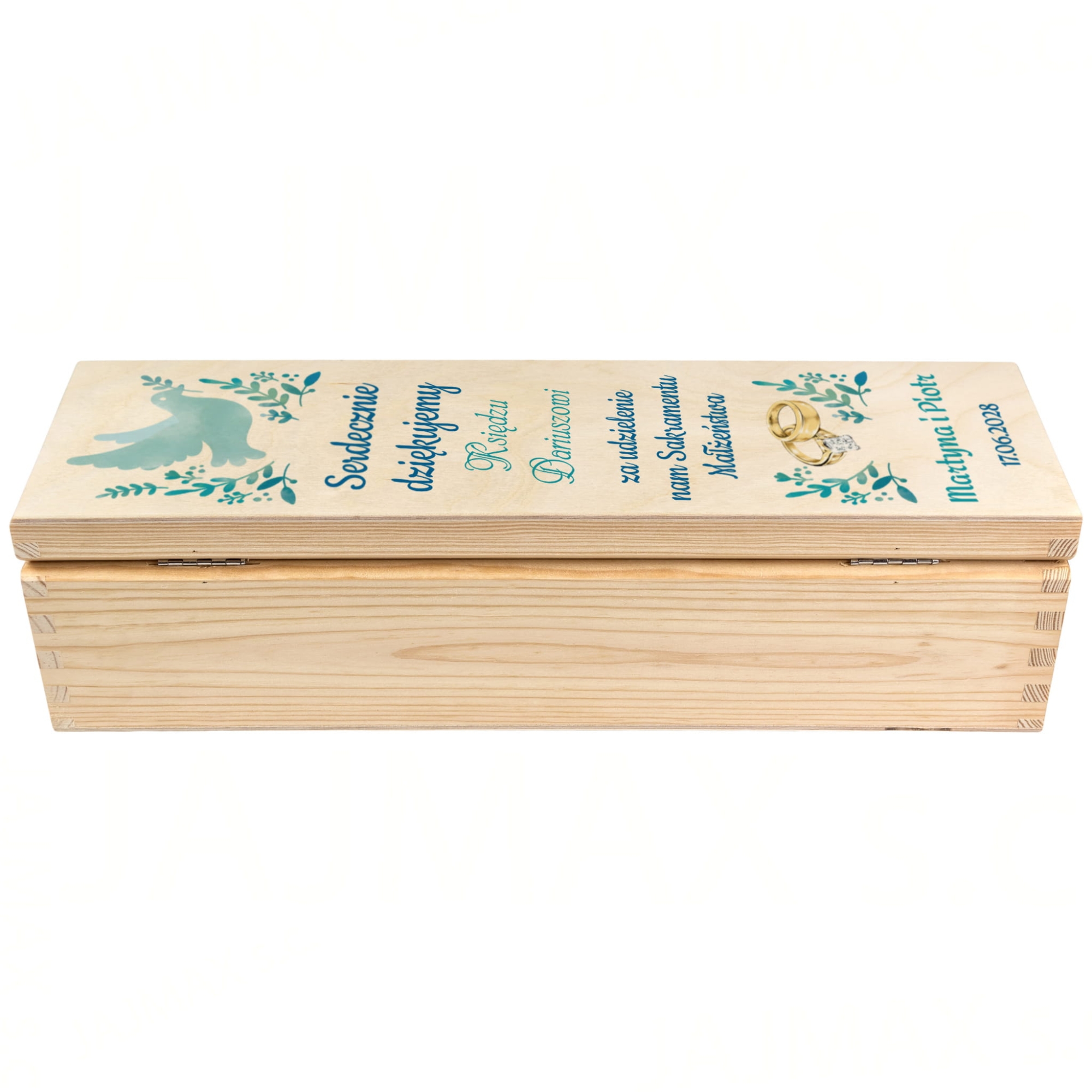 Drewniana skrzynka na wino podziękowanie dla kapłana za ślub