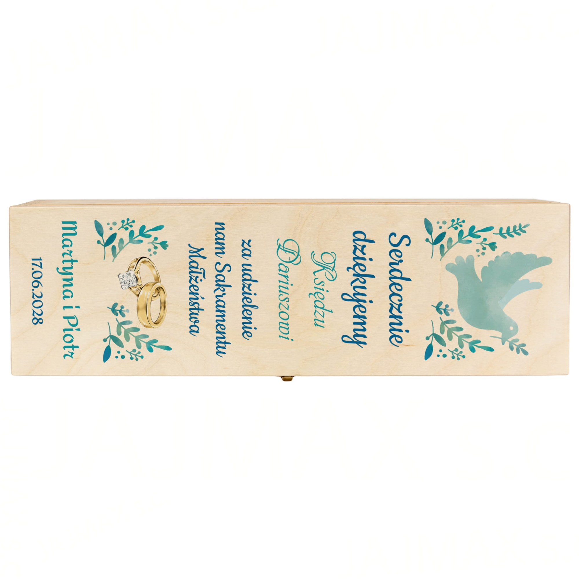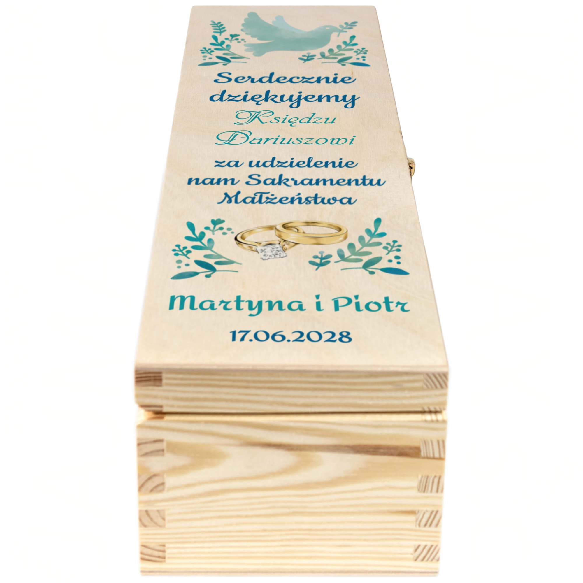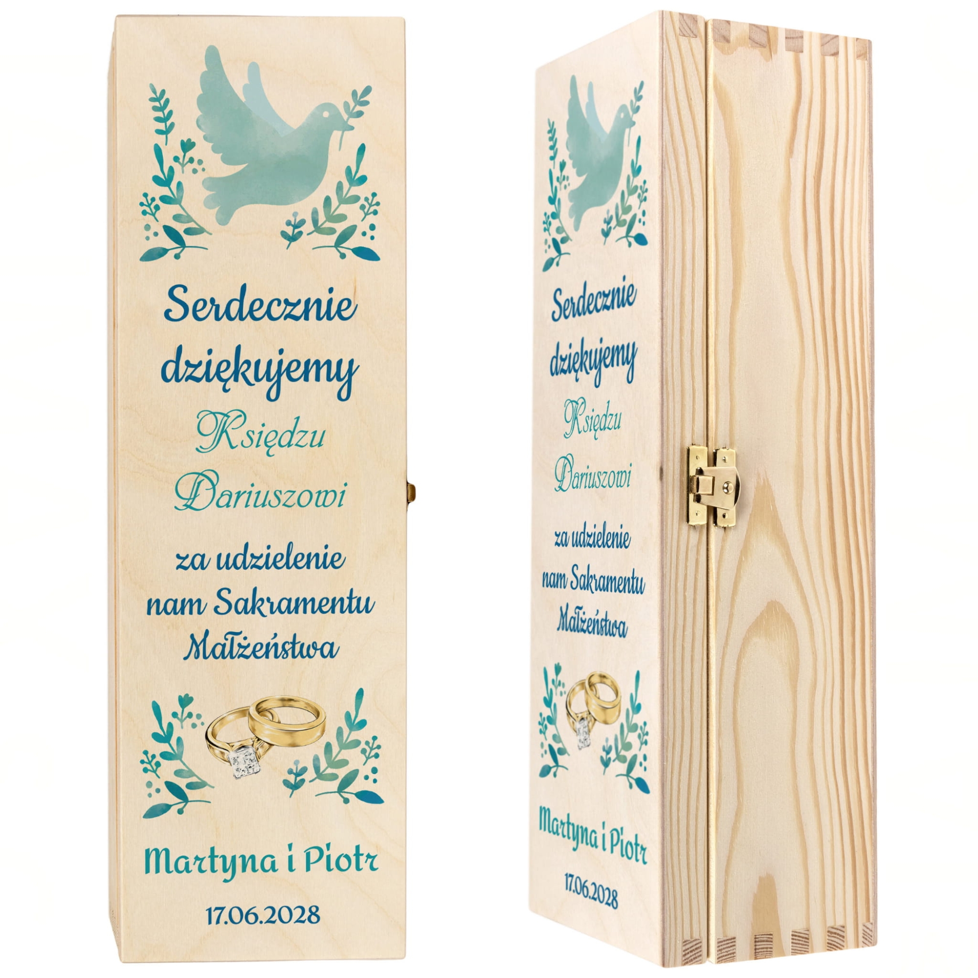 Drewniana skrzynka na wino podziękowanie dla kapłana za ślub