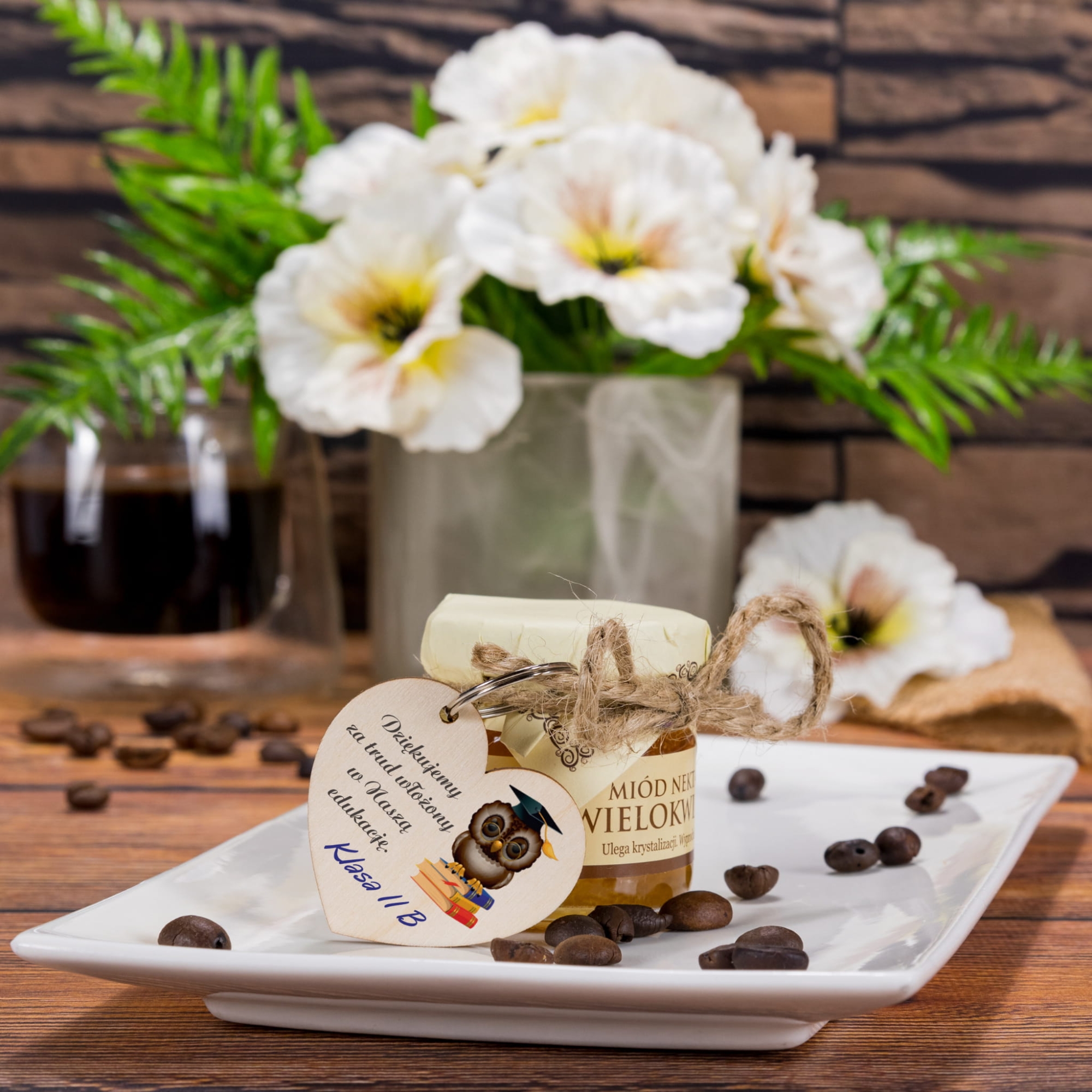 PREZENT DLA NAUCZYCIELA pomysł na podziękowania miód i brelok