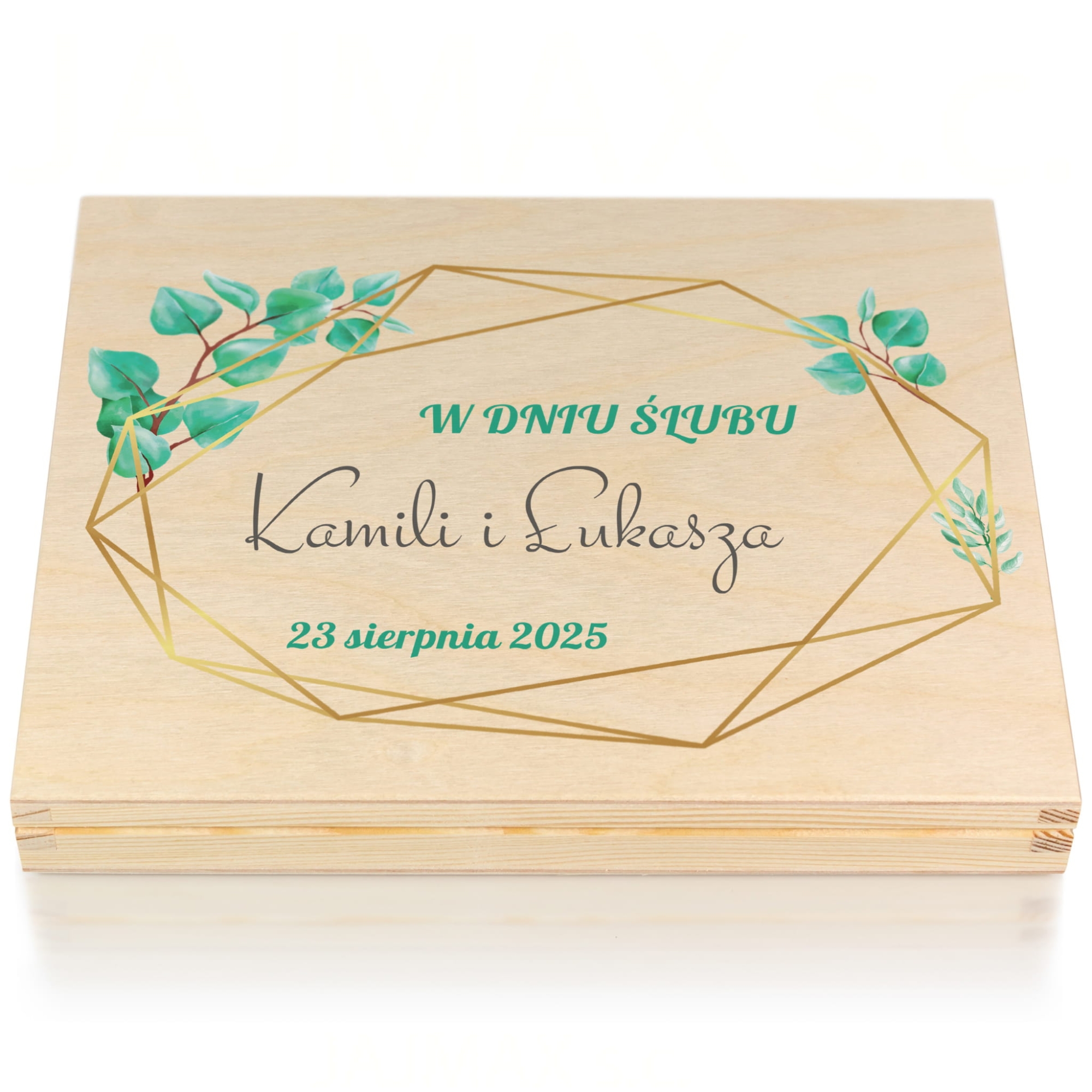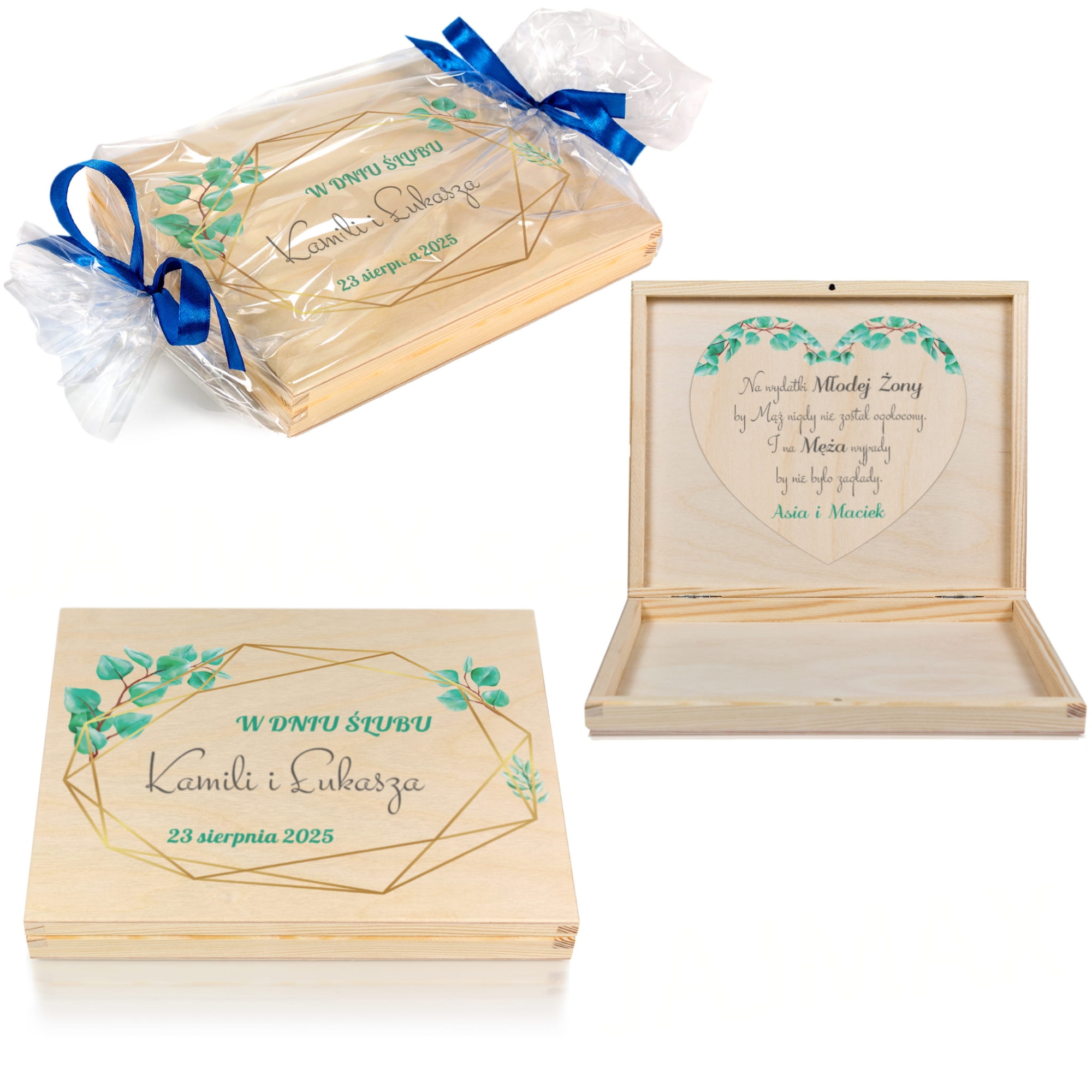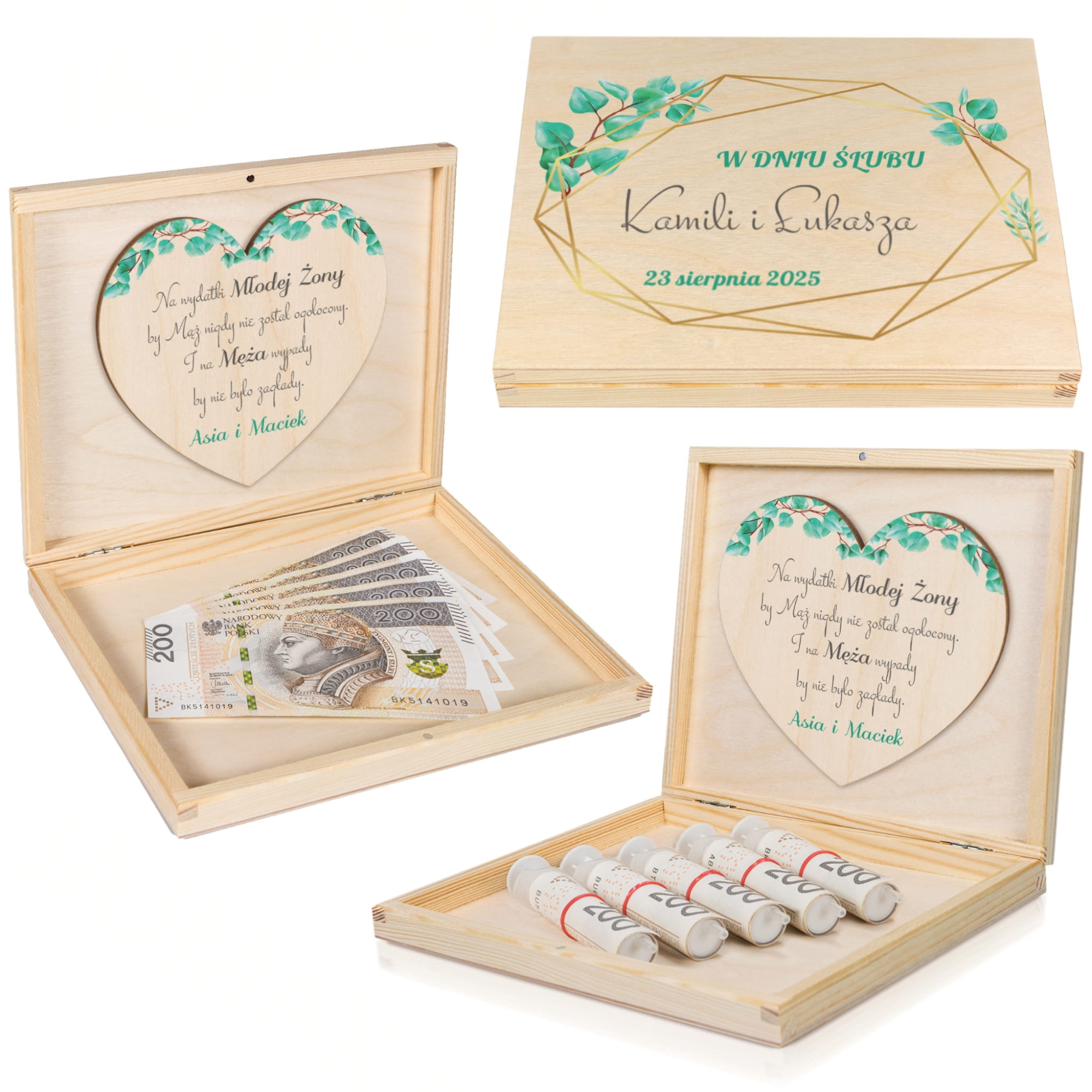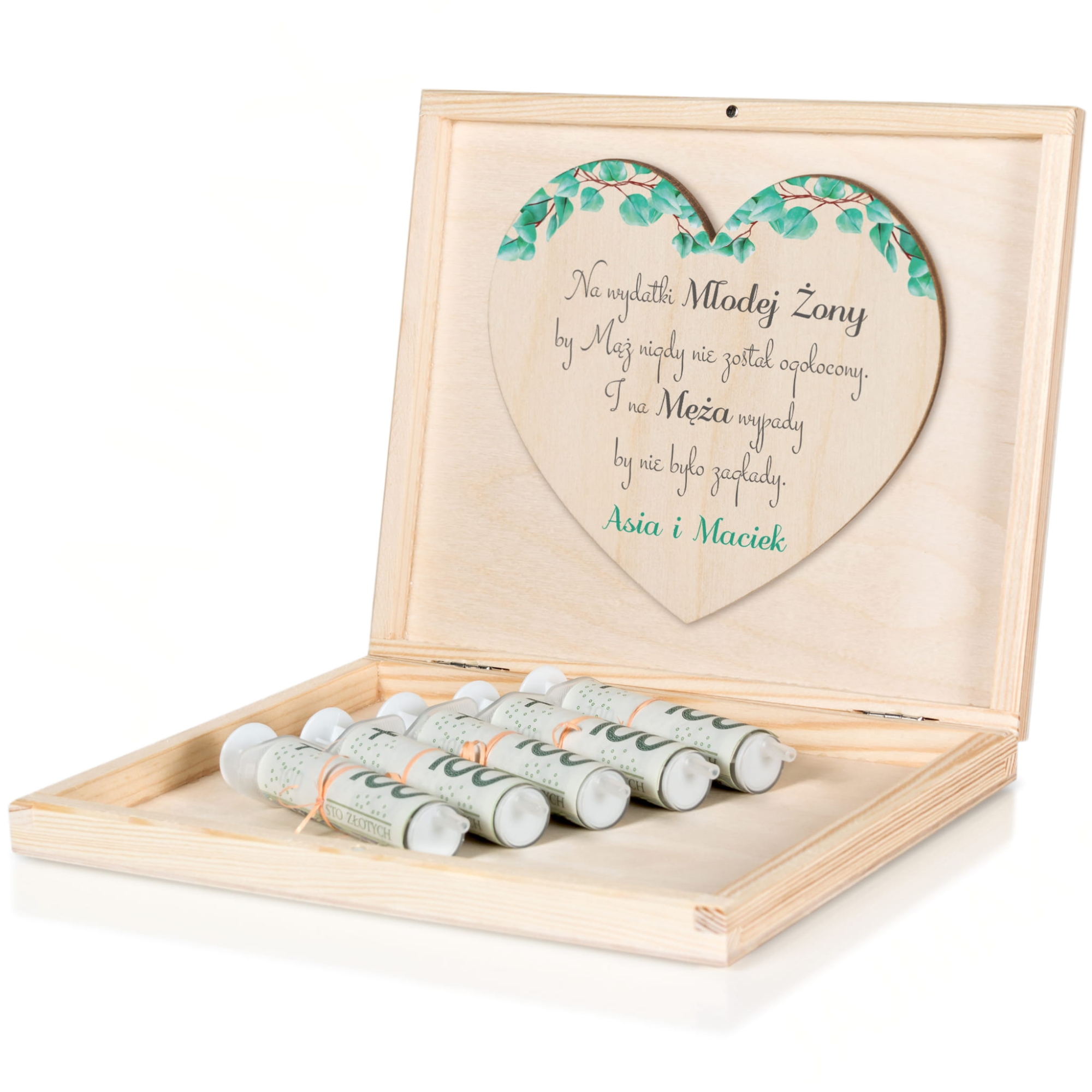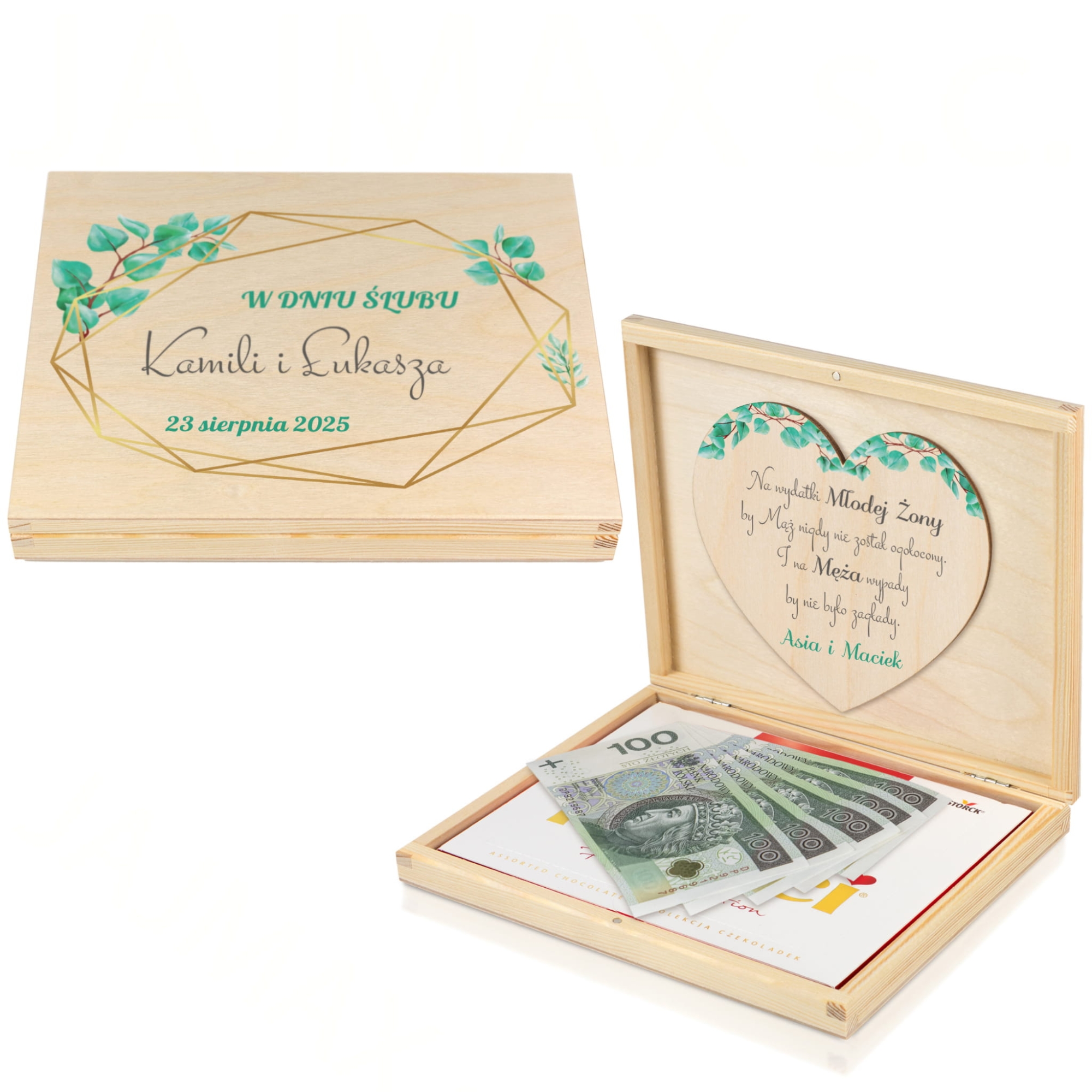 Drewniane pudełko na pieniądze z indywidualnym nadrukiem