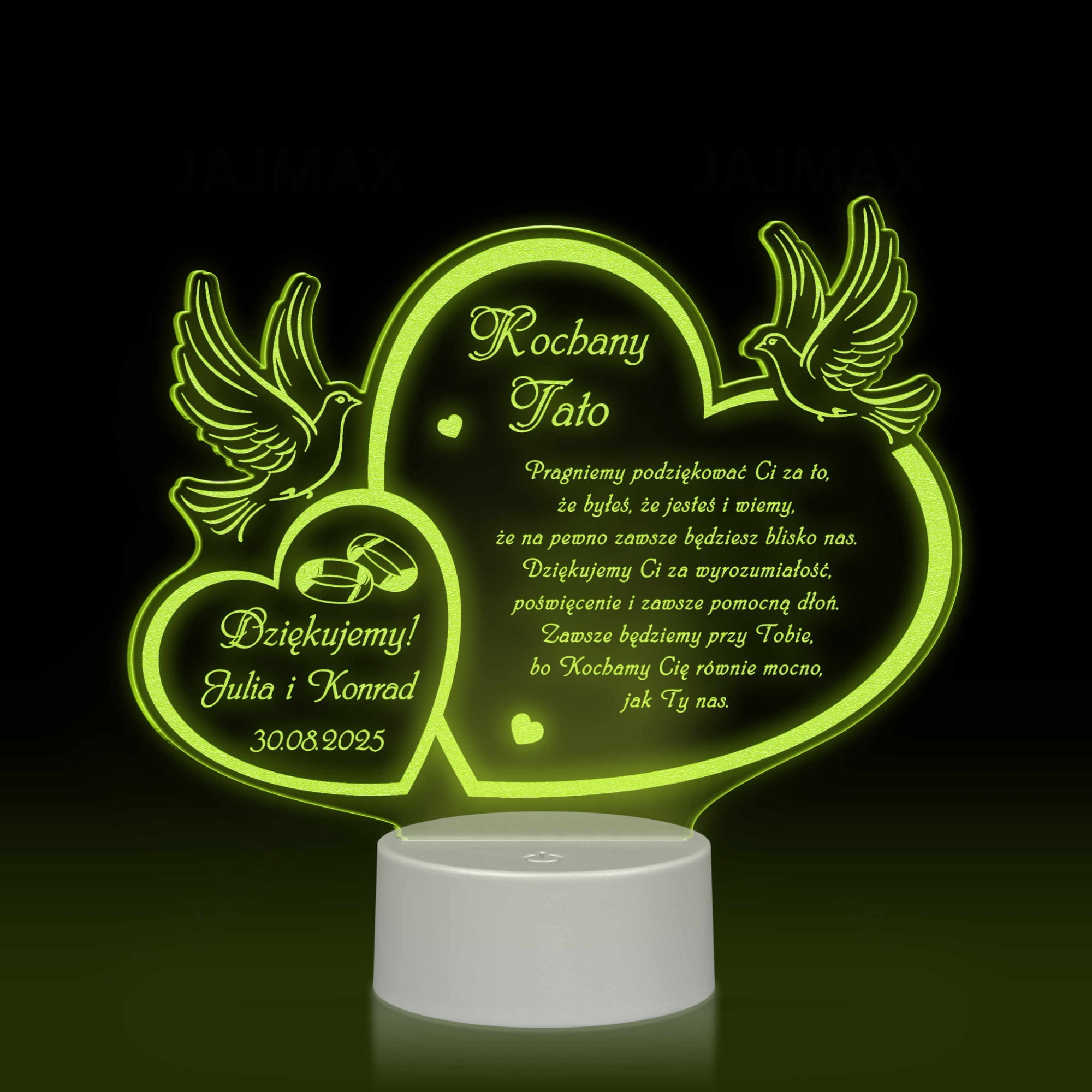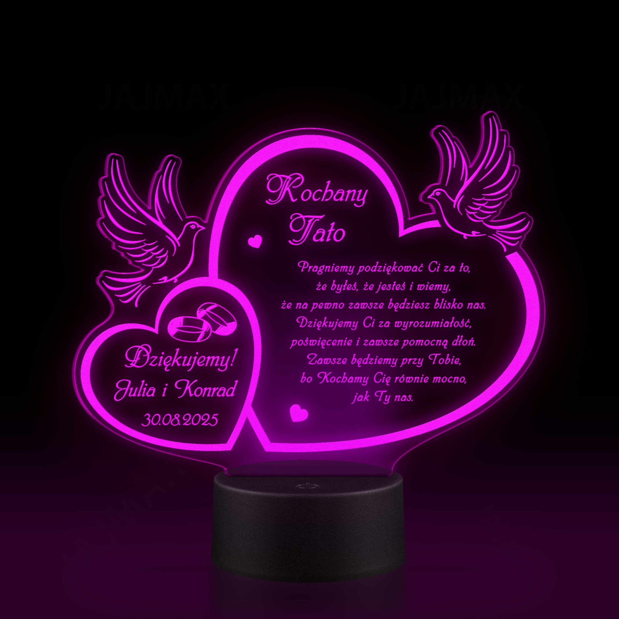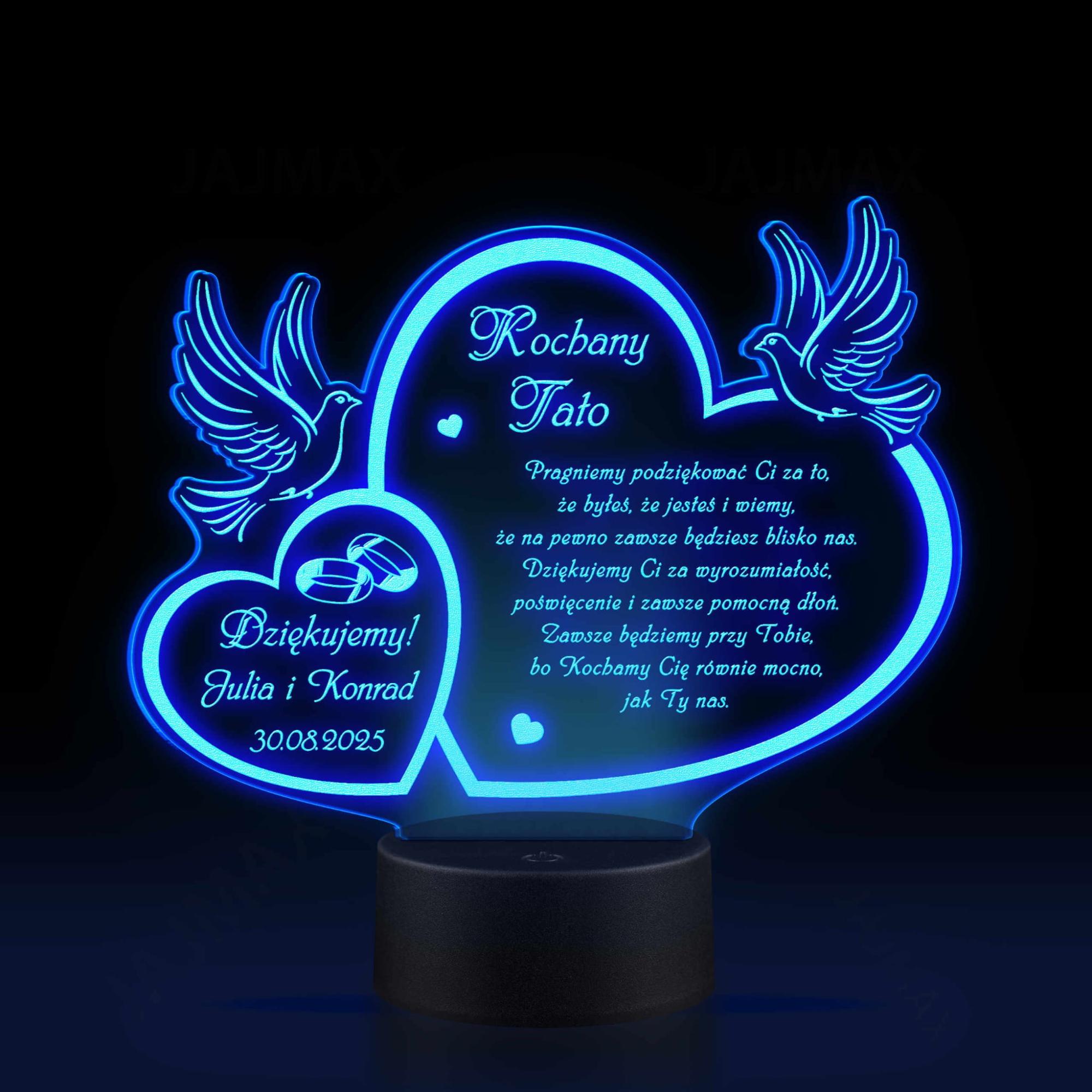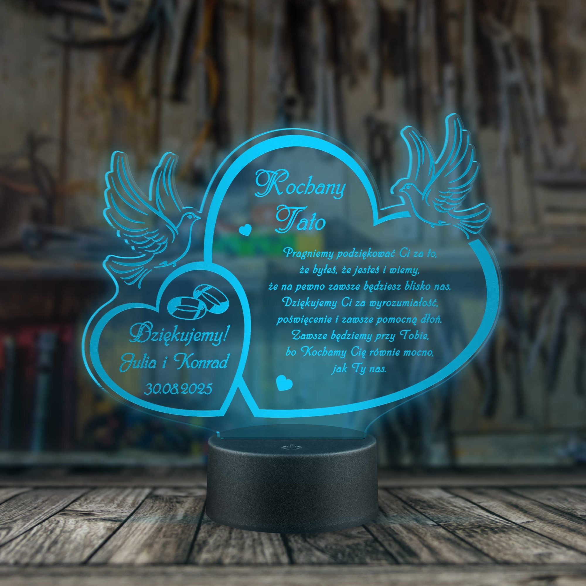 PREZENT DLA TATY PODZIĘKOWANIE WESELE statuetka LED serca gołąbki