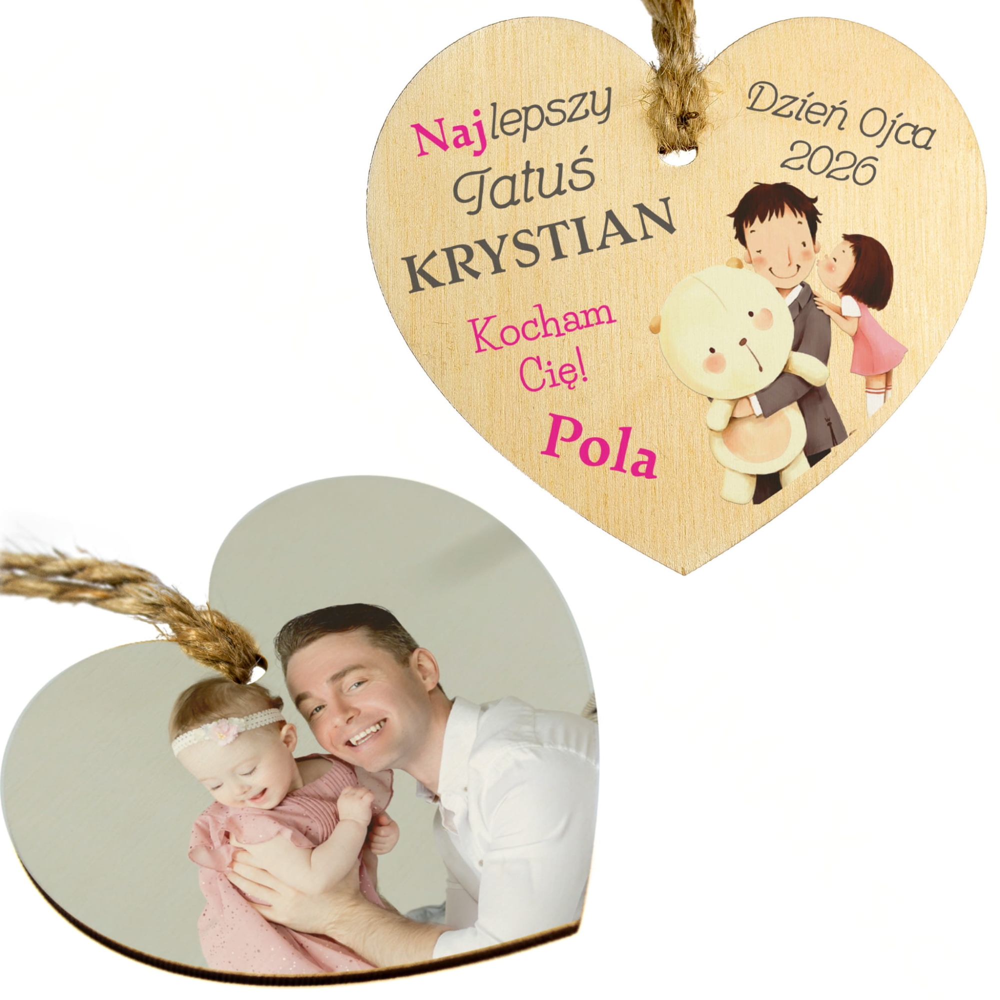 Drewniana dwustronna zawieszka ze zdjęciem z indywidualnym nadrukiem