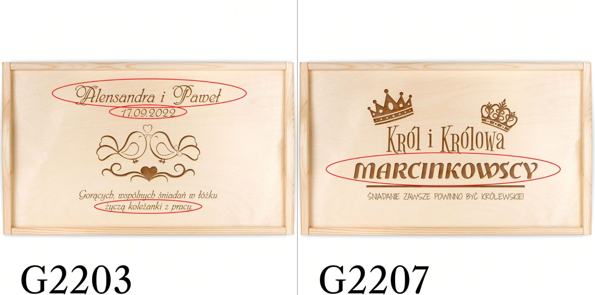 - wyślij do nas tekst w formie dokładnie takiej, jaka ma zostać umieszczona na produkcie tj. z zastosowaniem odpowiedniej pisowni, interpunkcji, odmiany imion itp.