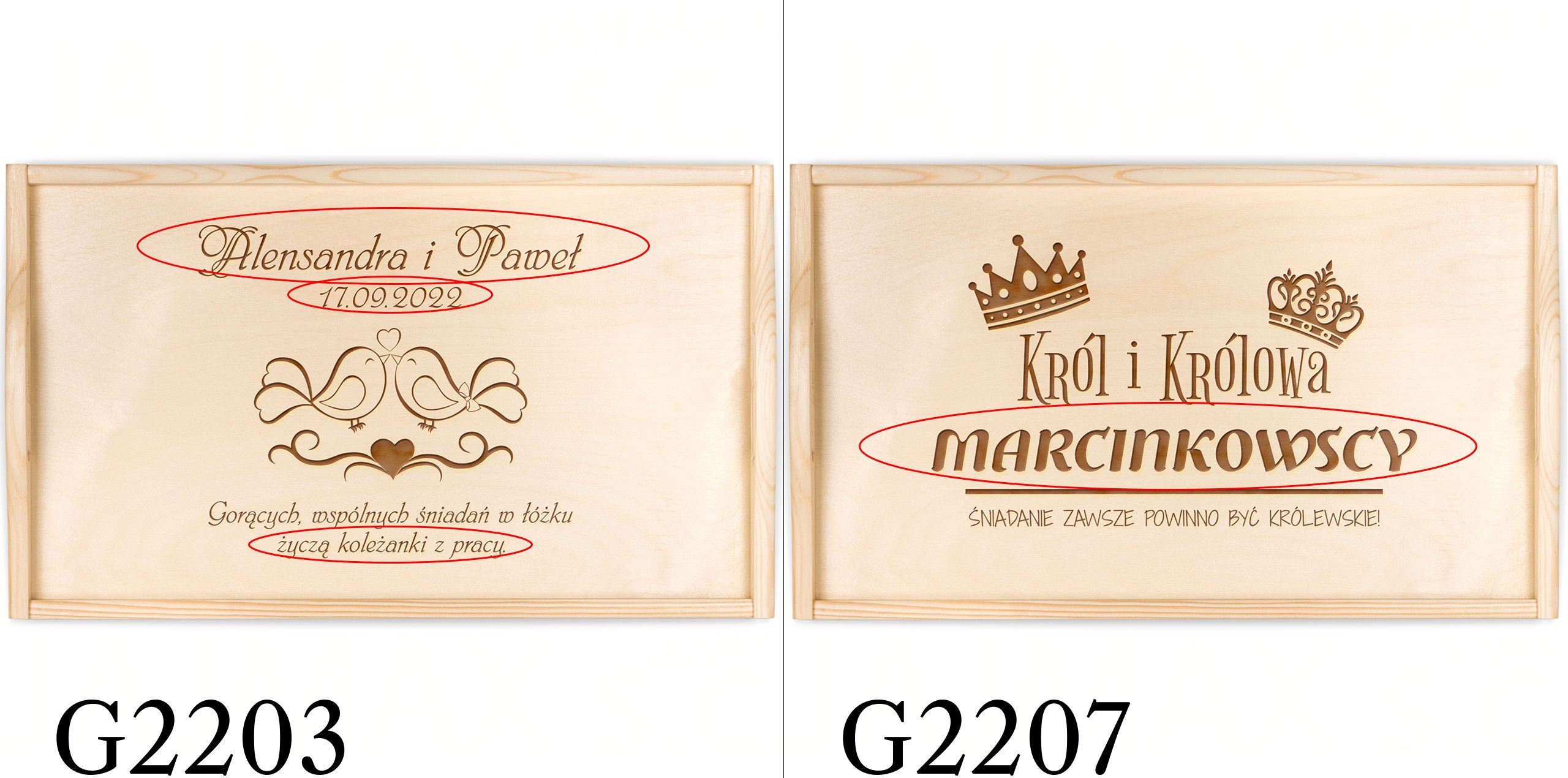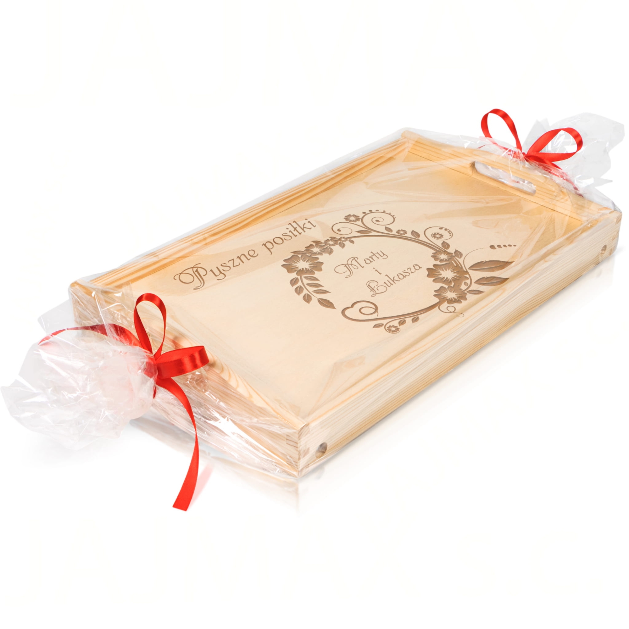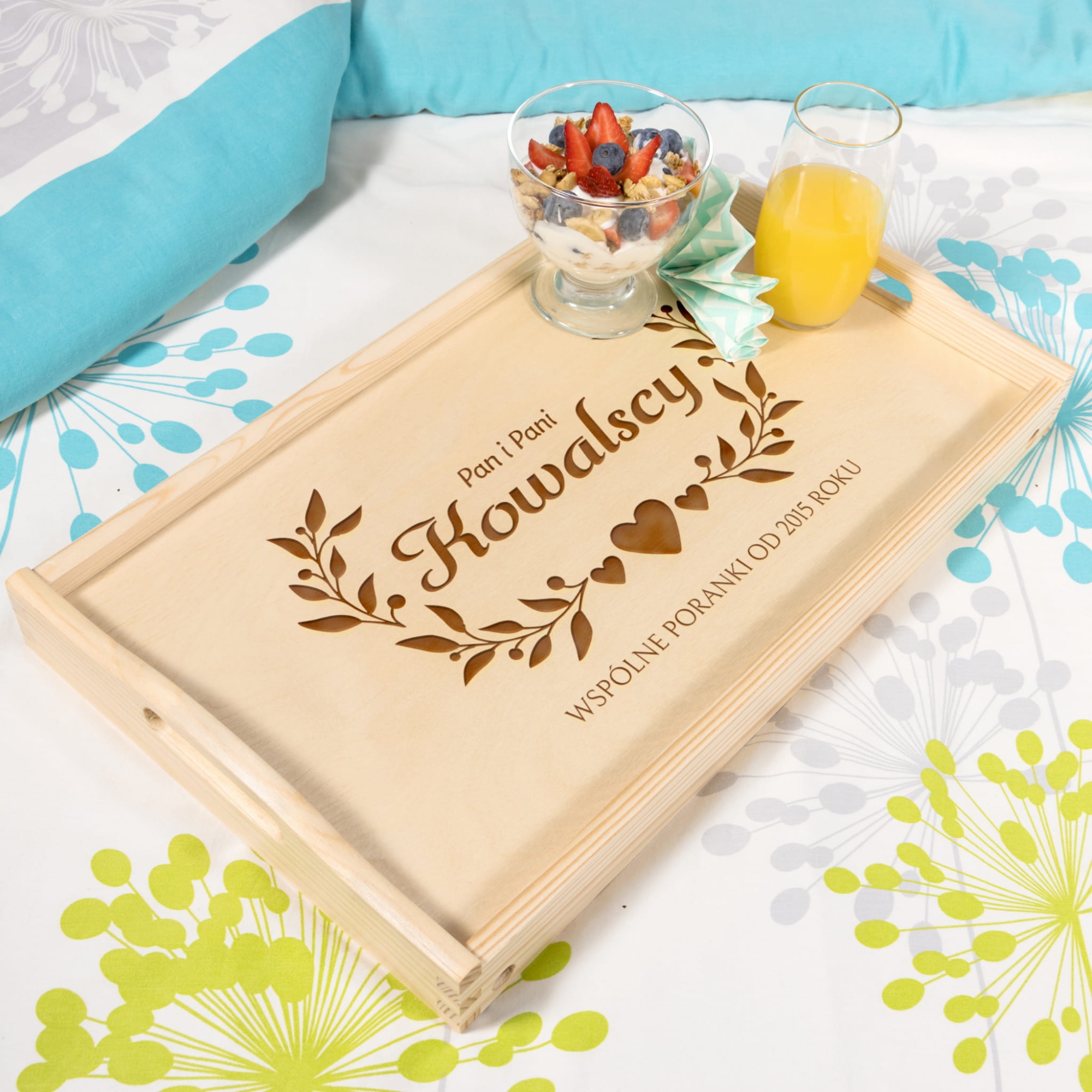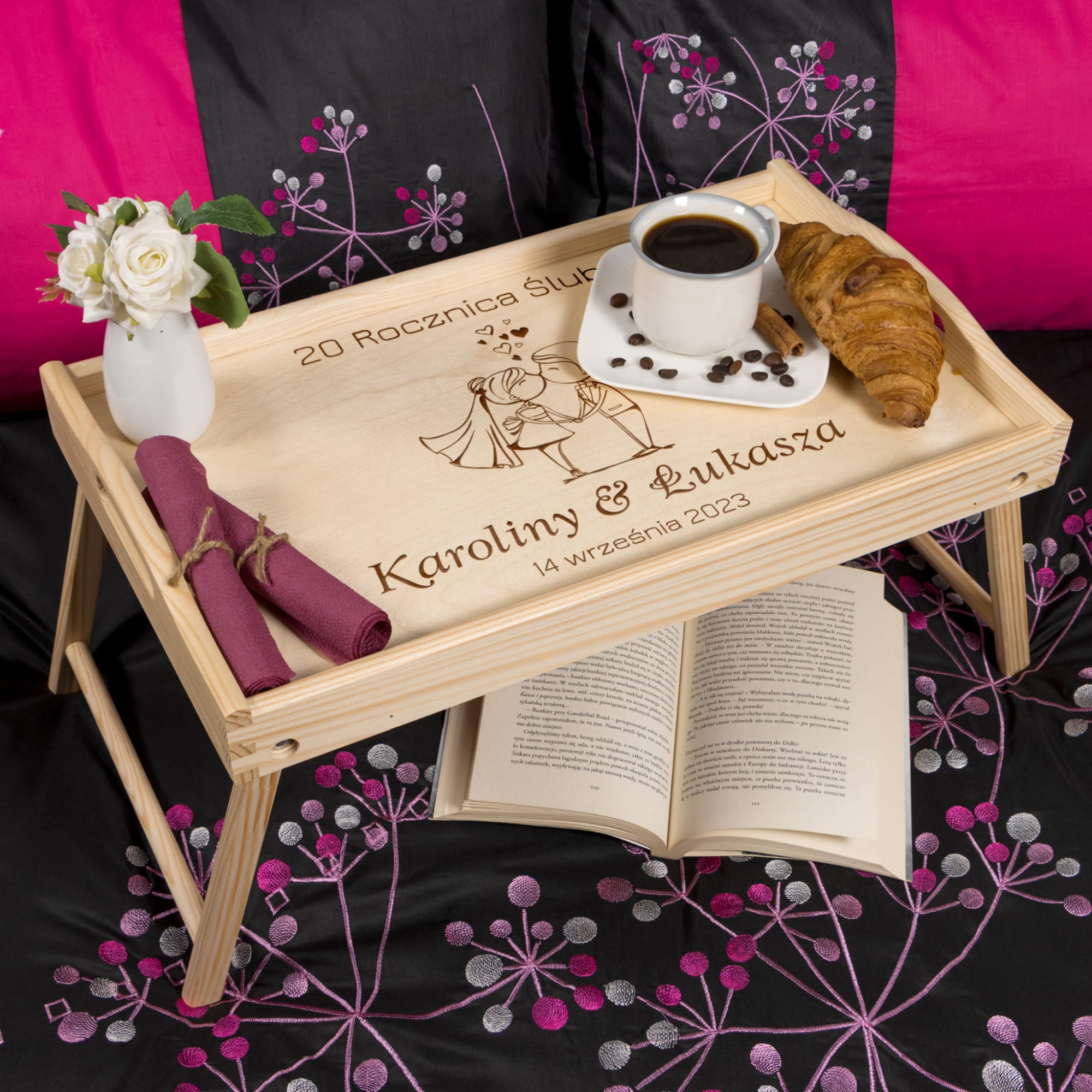 Nasz stolik śniadaniowy na rocznicę ślubu lub związku to wyjątkowy prezent, który połączy funkcjonalność z osobistym przekazem emocjonalnym. Ten elegancki stolik został stworzony specjalnie z myślą o celebracji rocznicy ślubu i jest idealnym symbolem miłości i trwałości związku. Stolik posiada nóżki dzięki czemu można go postawić lub użyć jako tacy. Najważniejszym elementem tego stolika jest grawer. Możliwość spersonalizowania stolika poprzez dodanie dedykacji, imion oraz daty rocznicy ślubu sprawia, że staje się on unikalnym przedmiotem, pełnym sentymentu i emocji. Będzie za równo praktycznym jak i sentymentalnym upominkiem na lata.