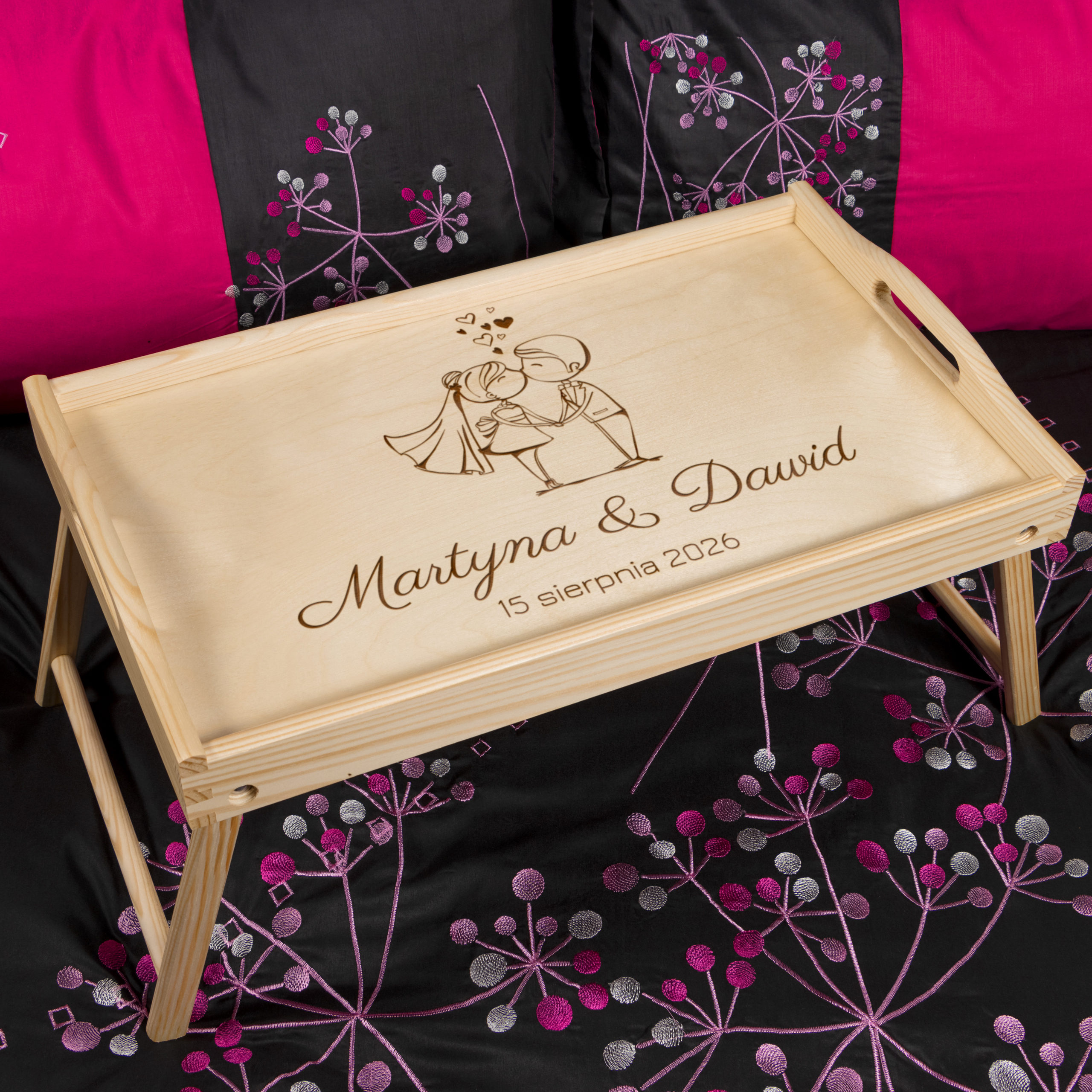 To idealny prezent dla par, które chcą uczcić swój wyjątkowy związek oraz podkreślić jego piękno i trwałość. Dzięki estetyce wykonania będzie pięknie prezentował się jako dekoracja wnętrza kuchni lub sypialni. Podając posiłek do łóżka ukochanej osobie na takim stoliczku z grawerem z pewnością wyrazisz miłość i szacunek do swojej drugiej połówki i mile ją zaskoczysz.