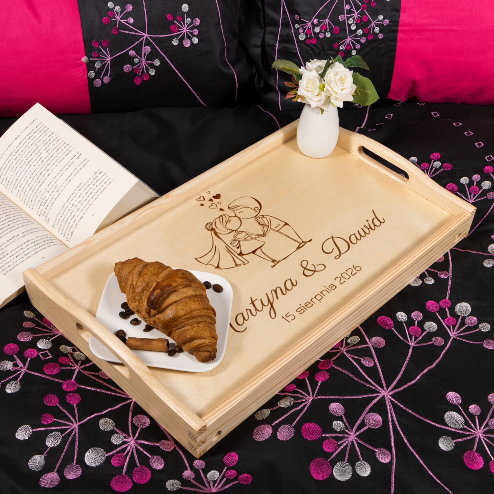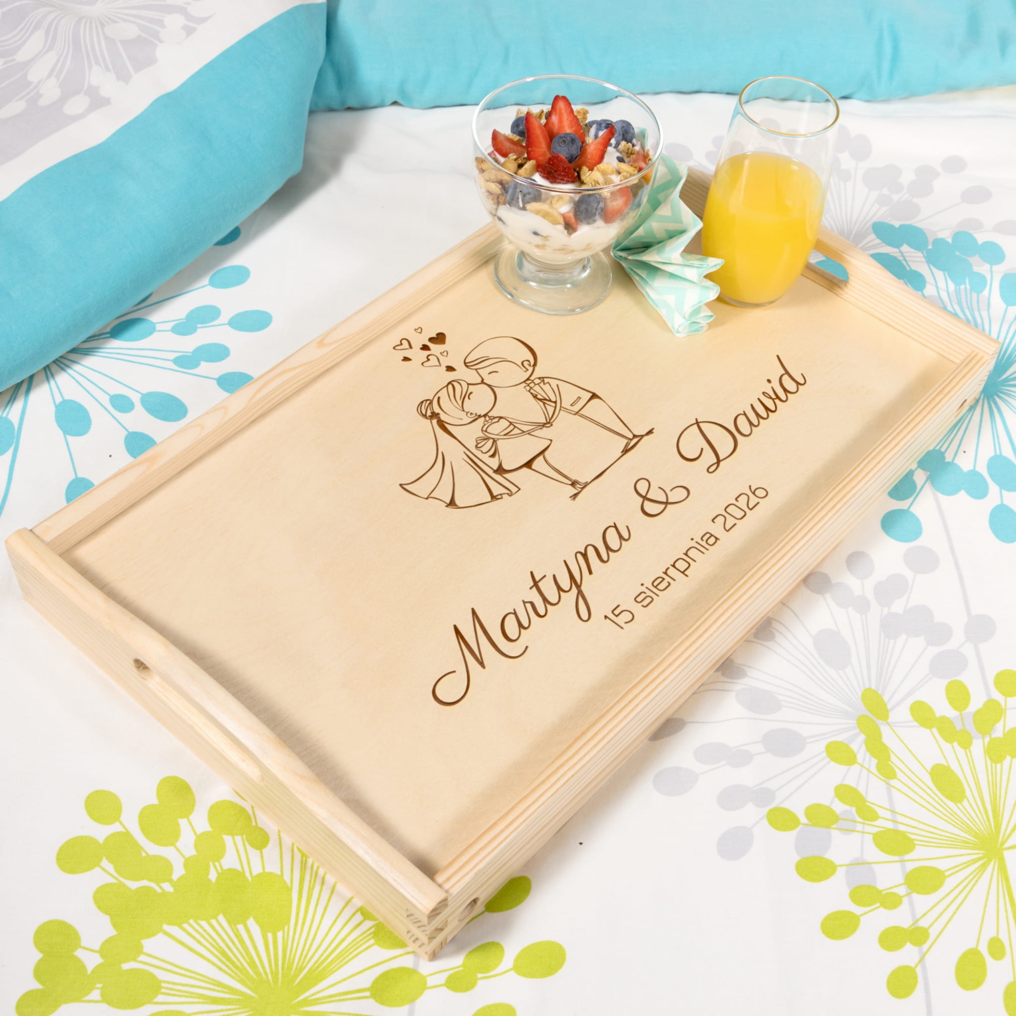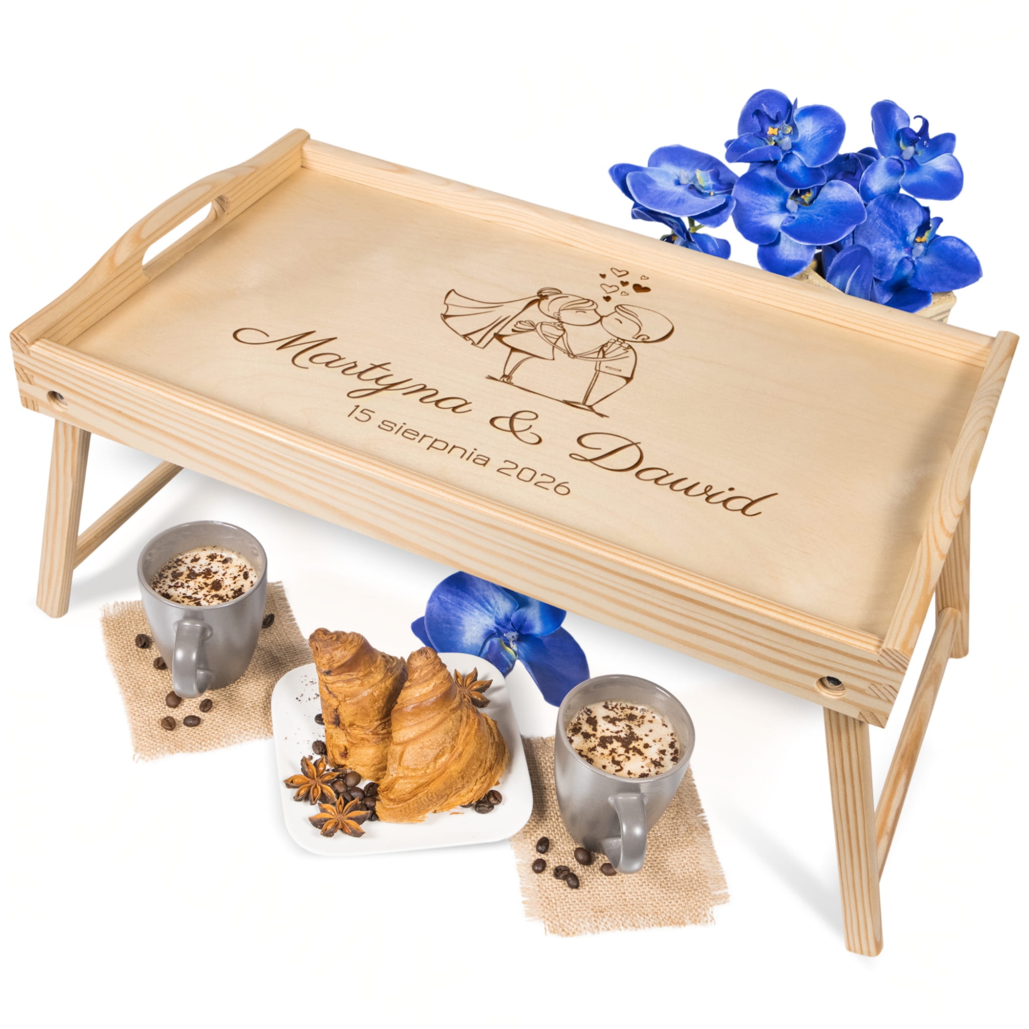 Drewniany stolik śniadaniowy z indywidualnym grawerem