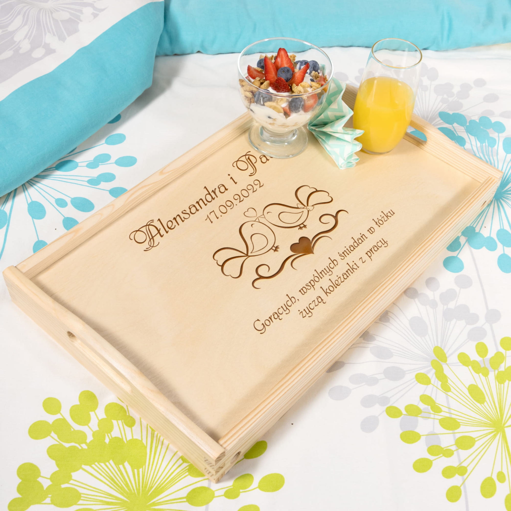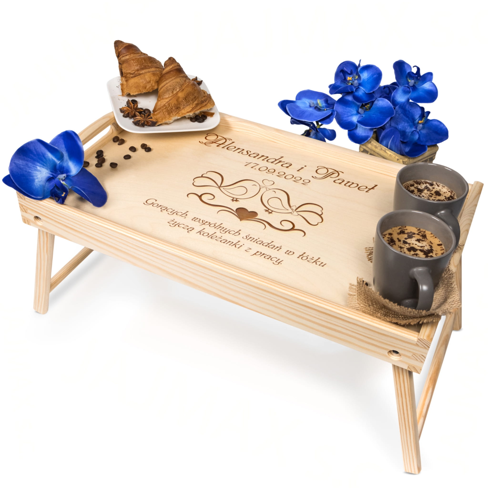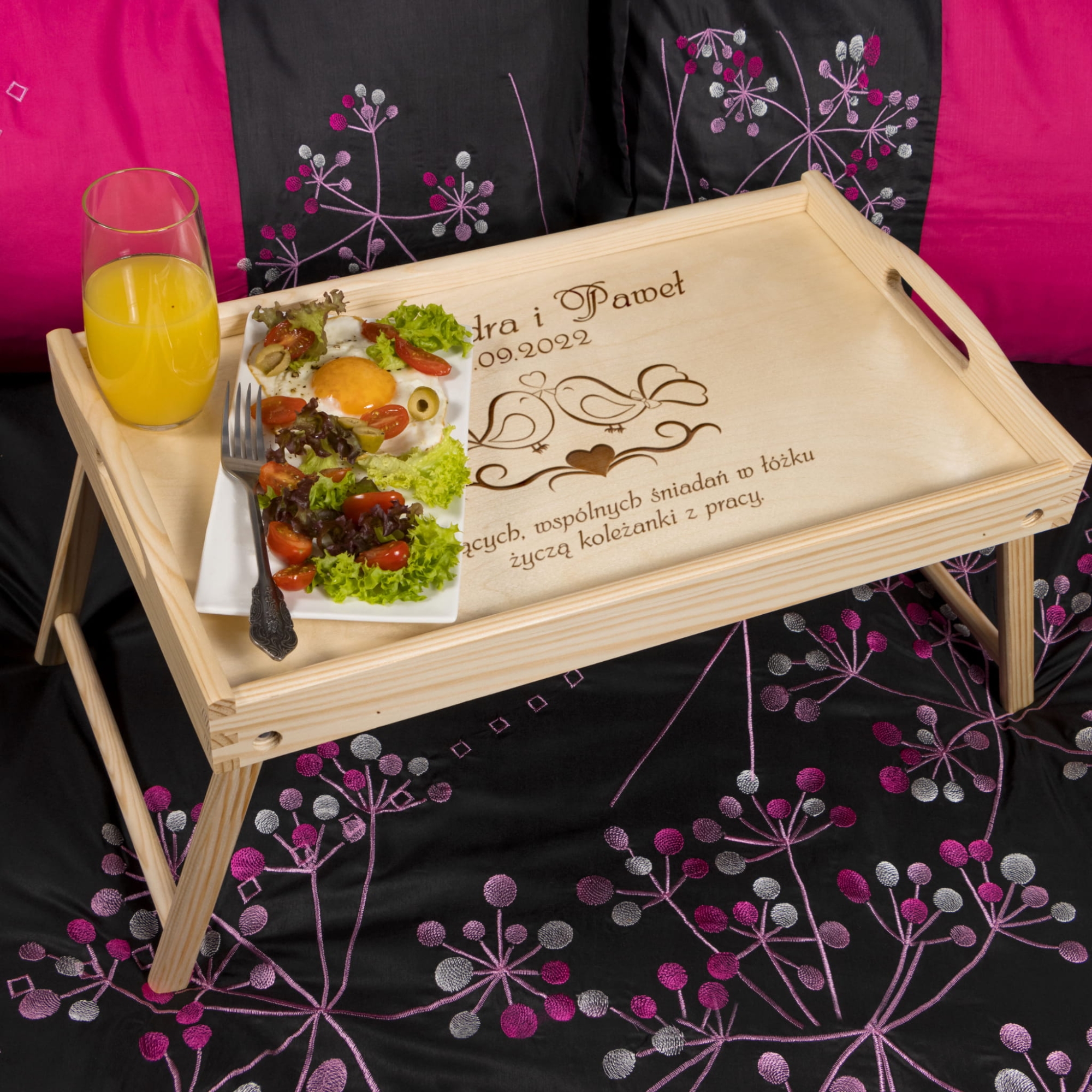 Drewniany stolik śniadaniowy z indywidualnym grawerem