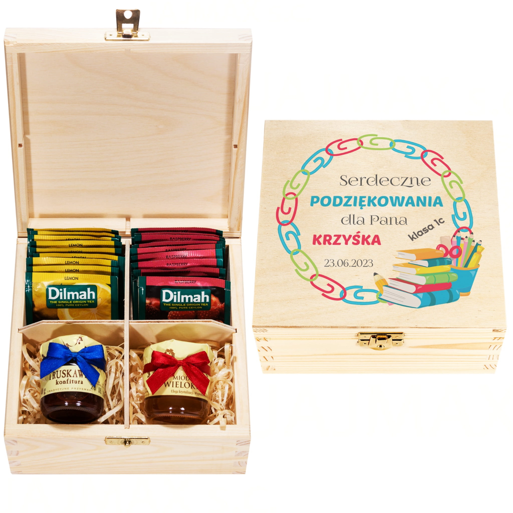PREZENT PODZIĘKOWANIA DLA NAUCZYCIELA box upominkowy miód, herbaty