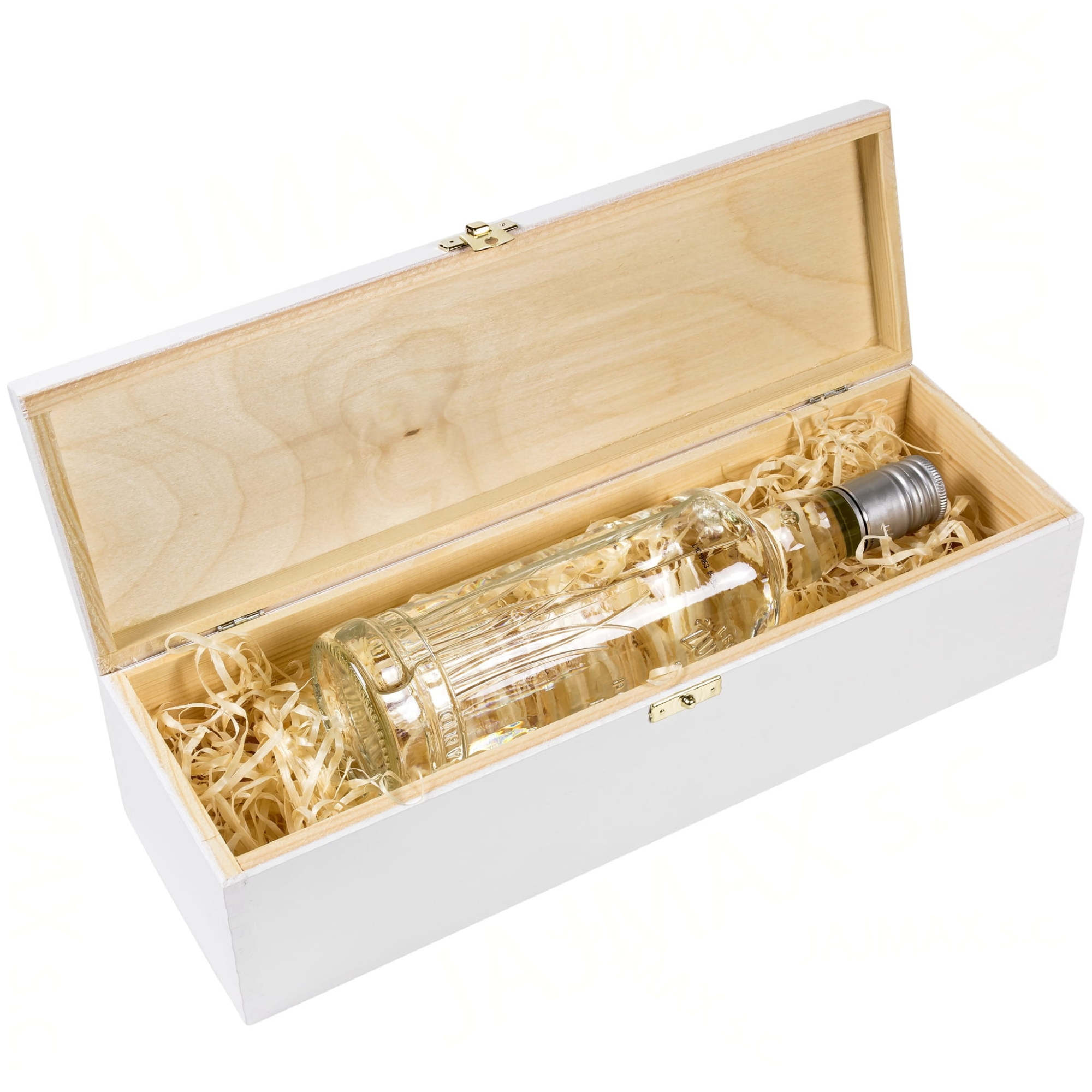 Drewniana, biała skrzynka na wino z indywidualnym nadrukiem