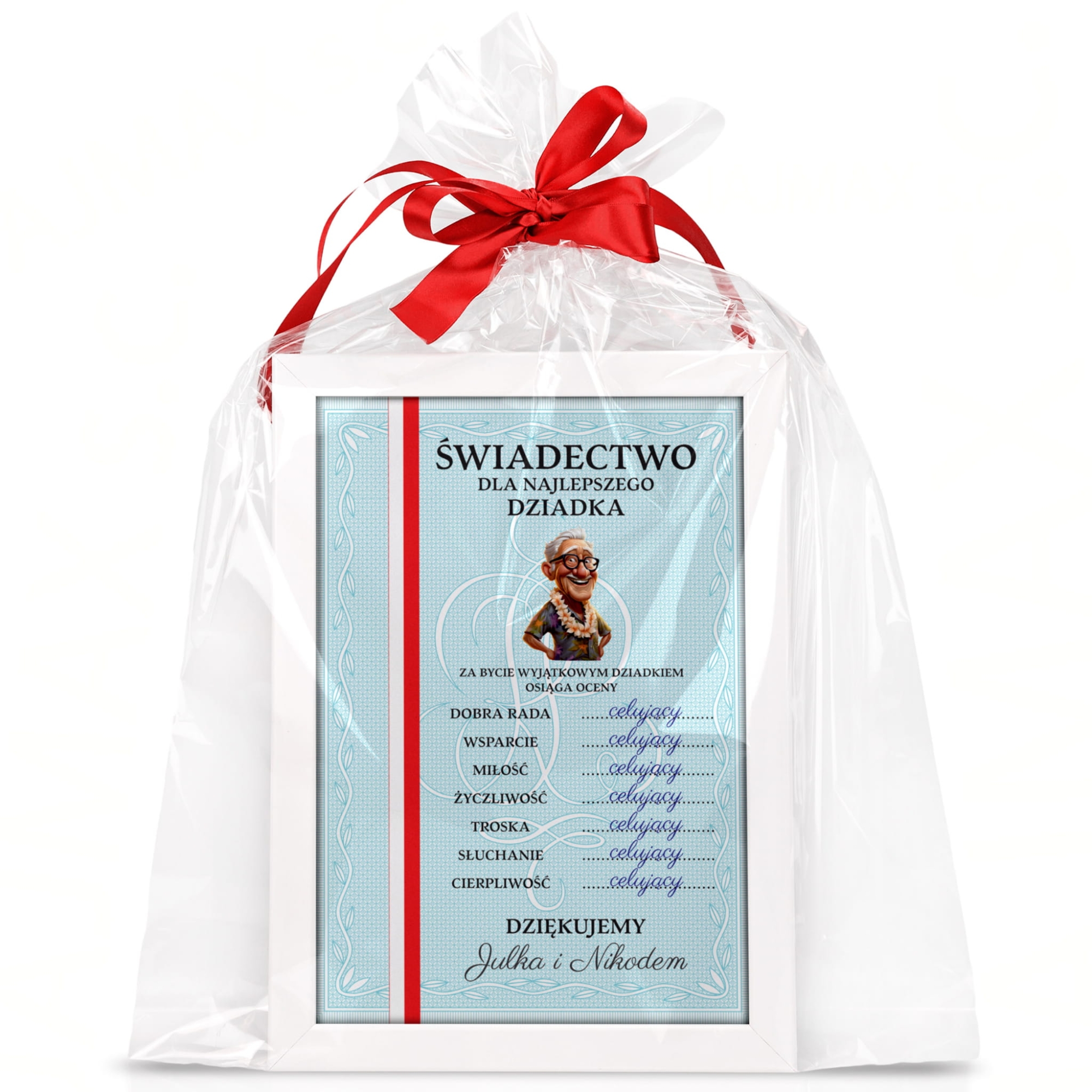 Świadectwo z paskiem oceny celujące dla najlepszego Dziadka prezent z okazji Dnia Dziadka