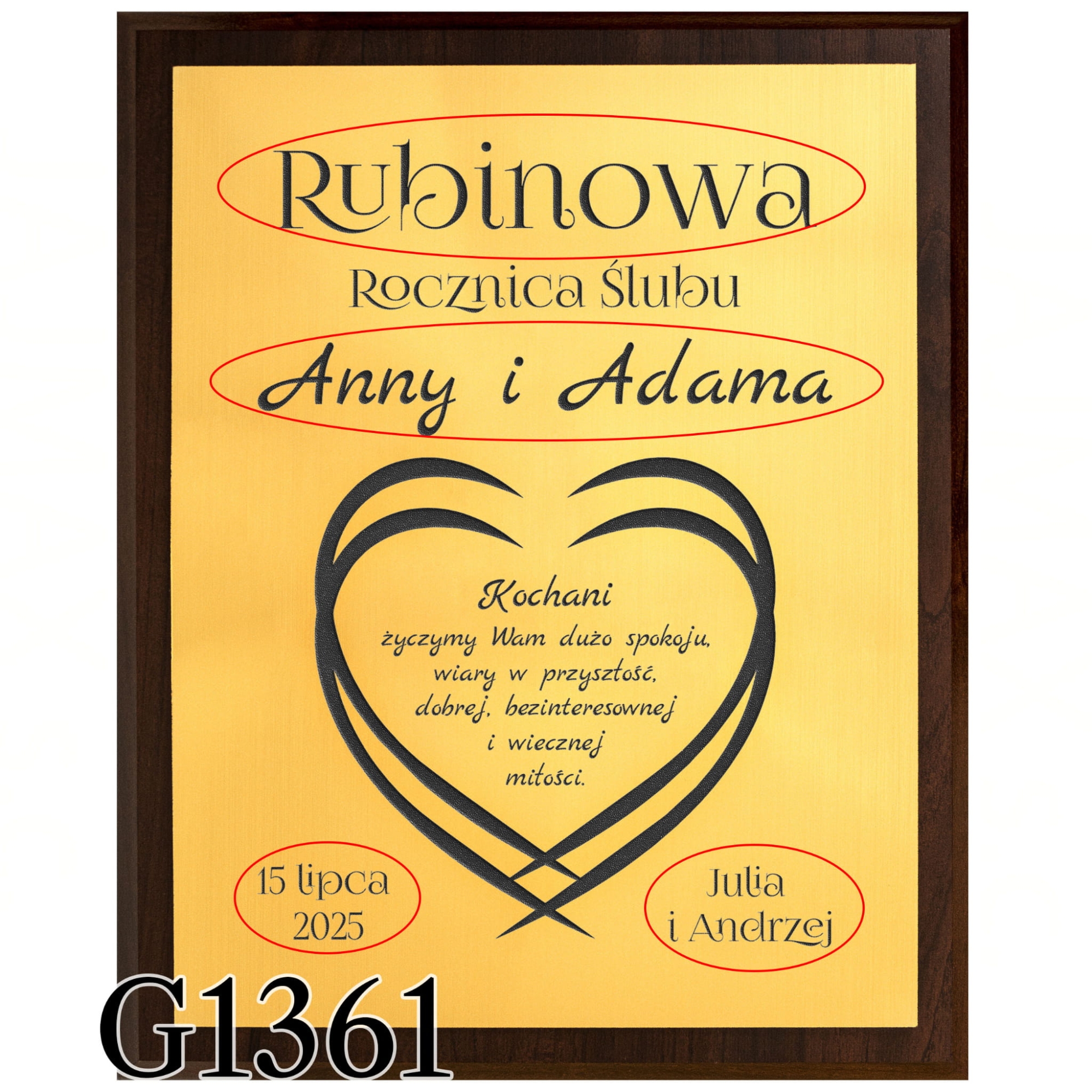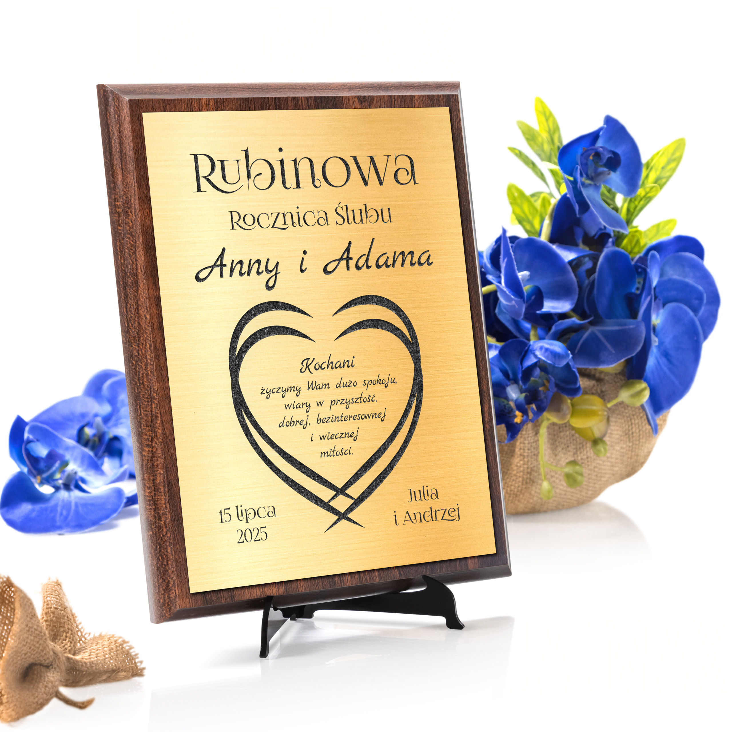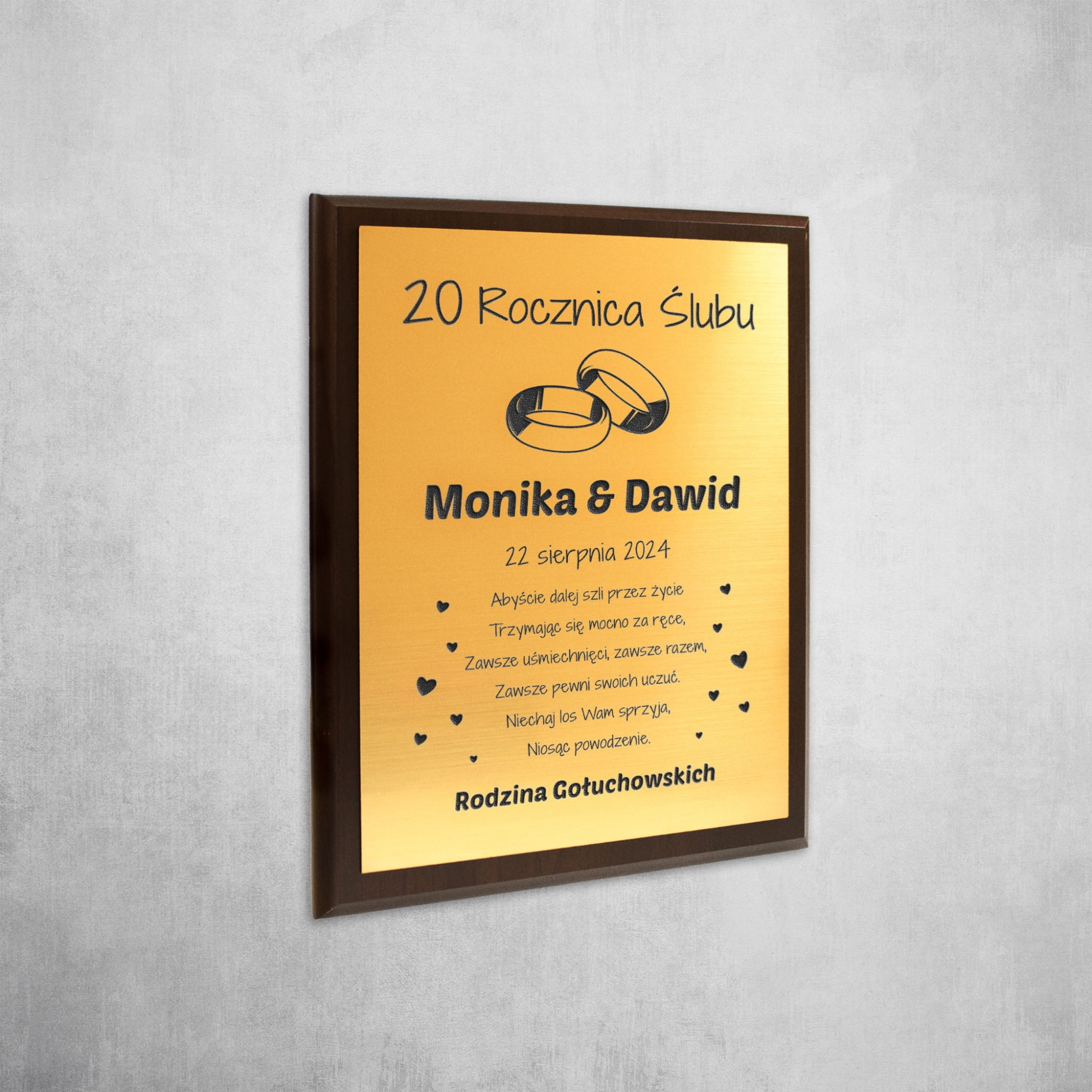 Złoty obrazek z życzeniami oryginalny prezent na rocznicę ślubu
