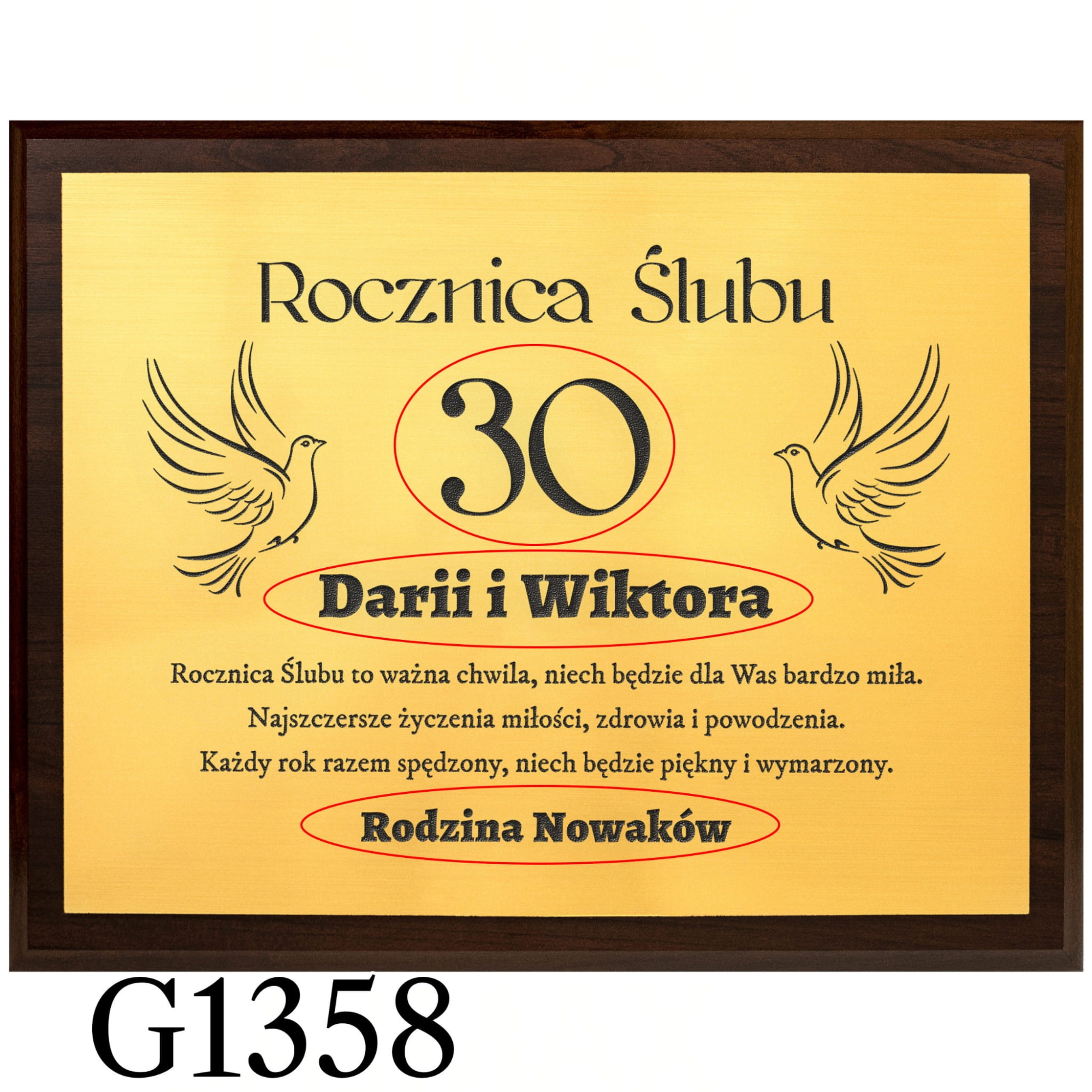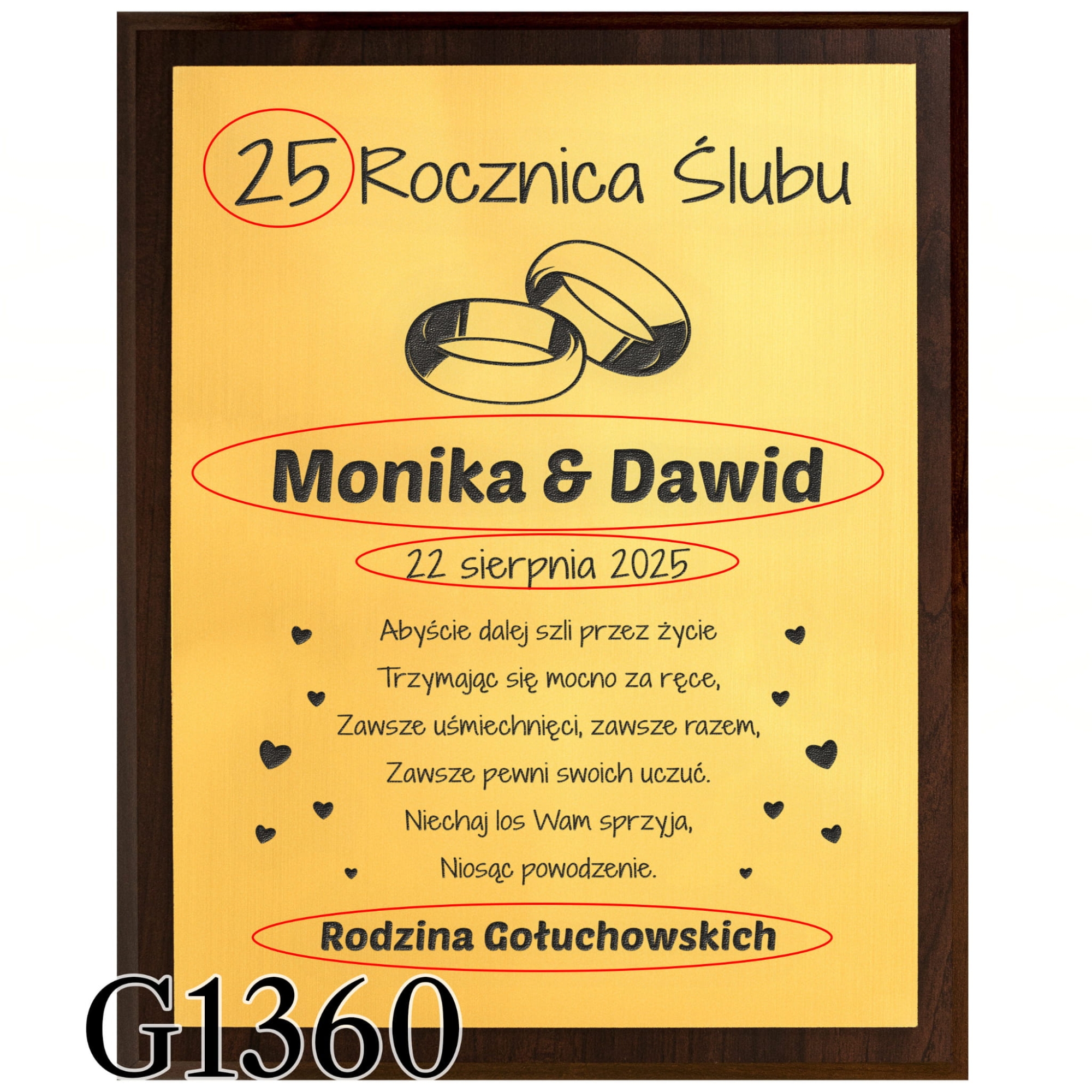 PREZENT Z OKAZJI ROCZNICY ŚLUBU złoty obrazek z dedykacją