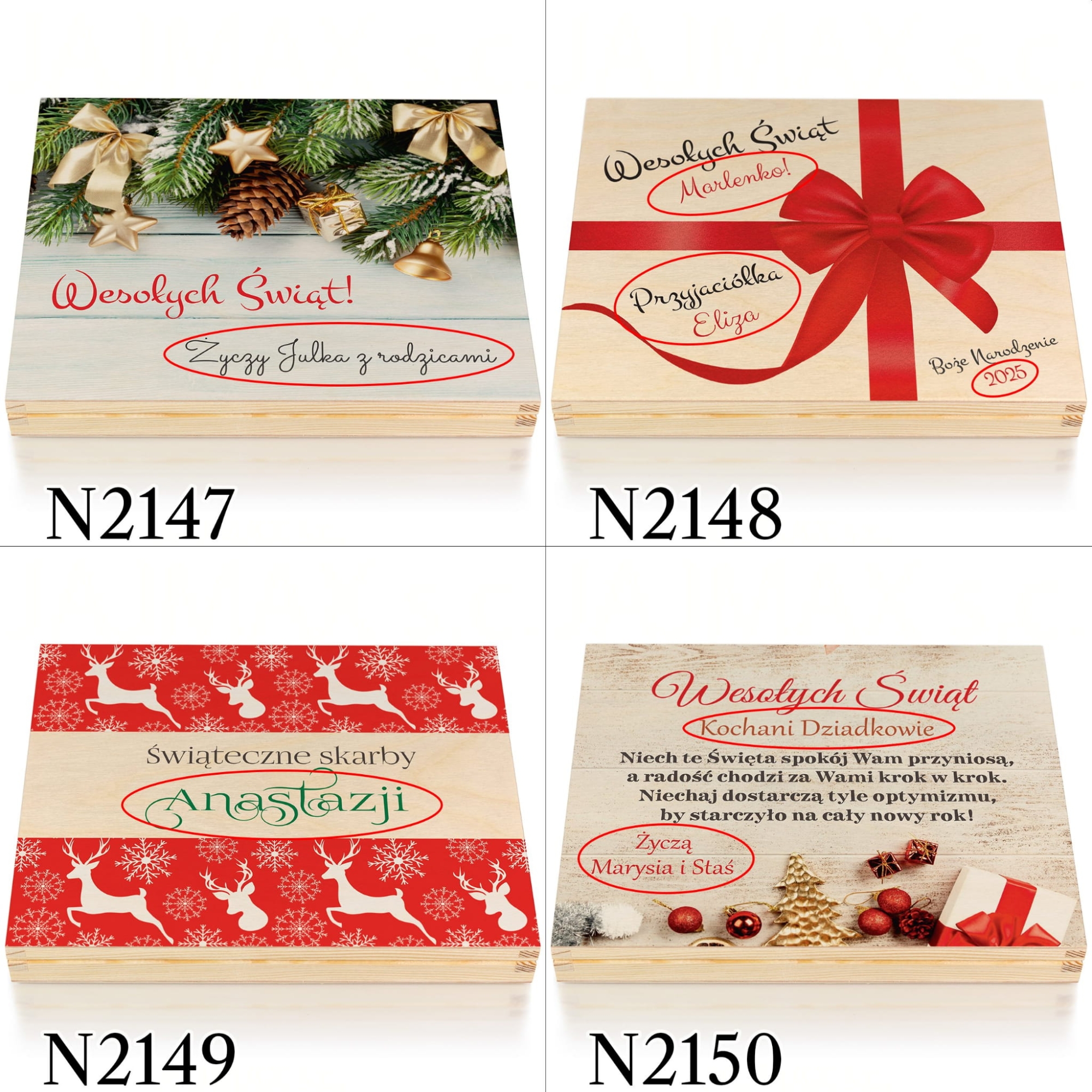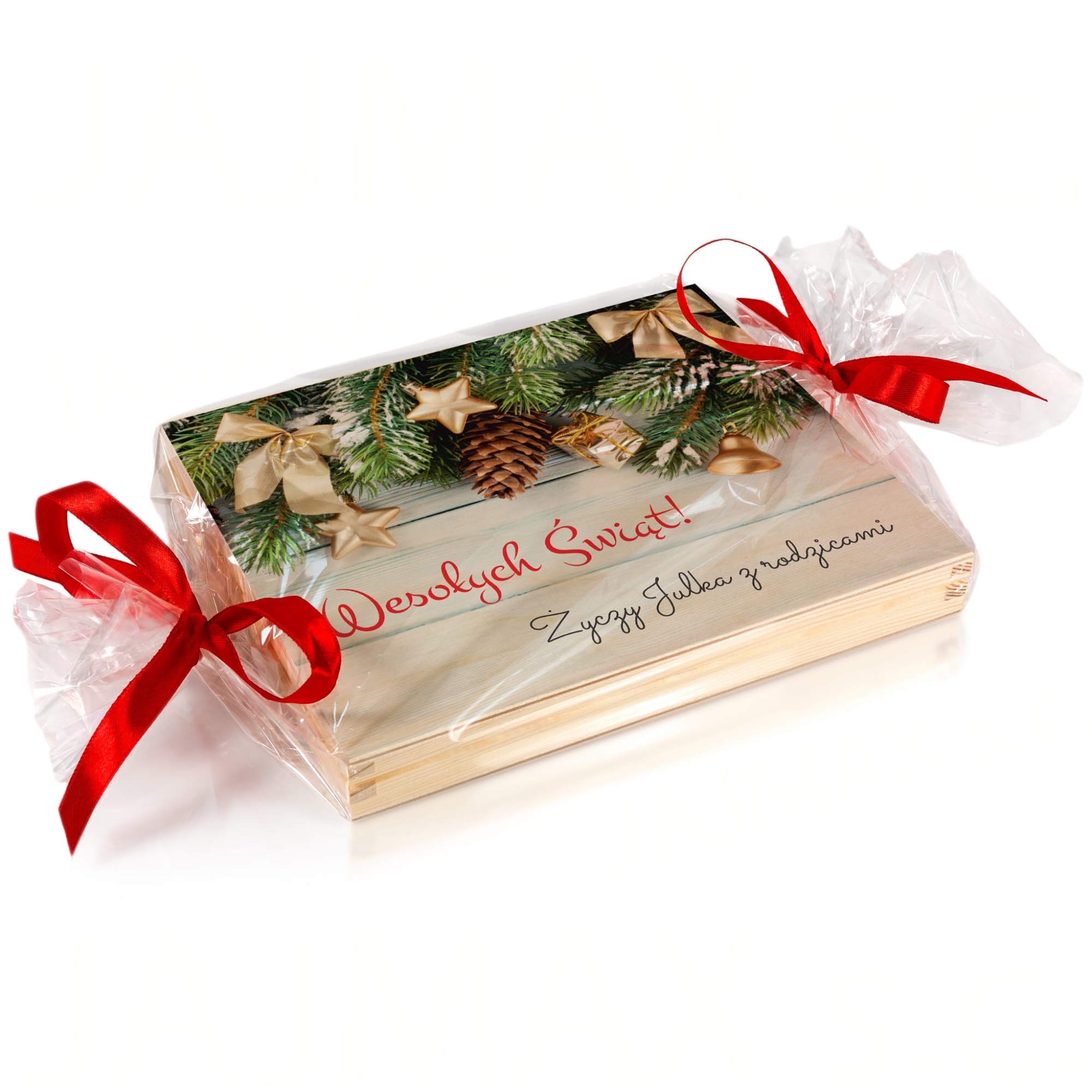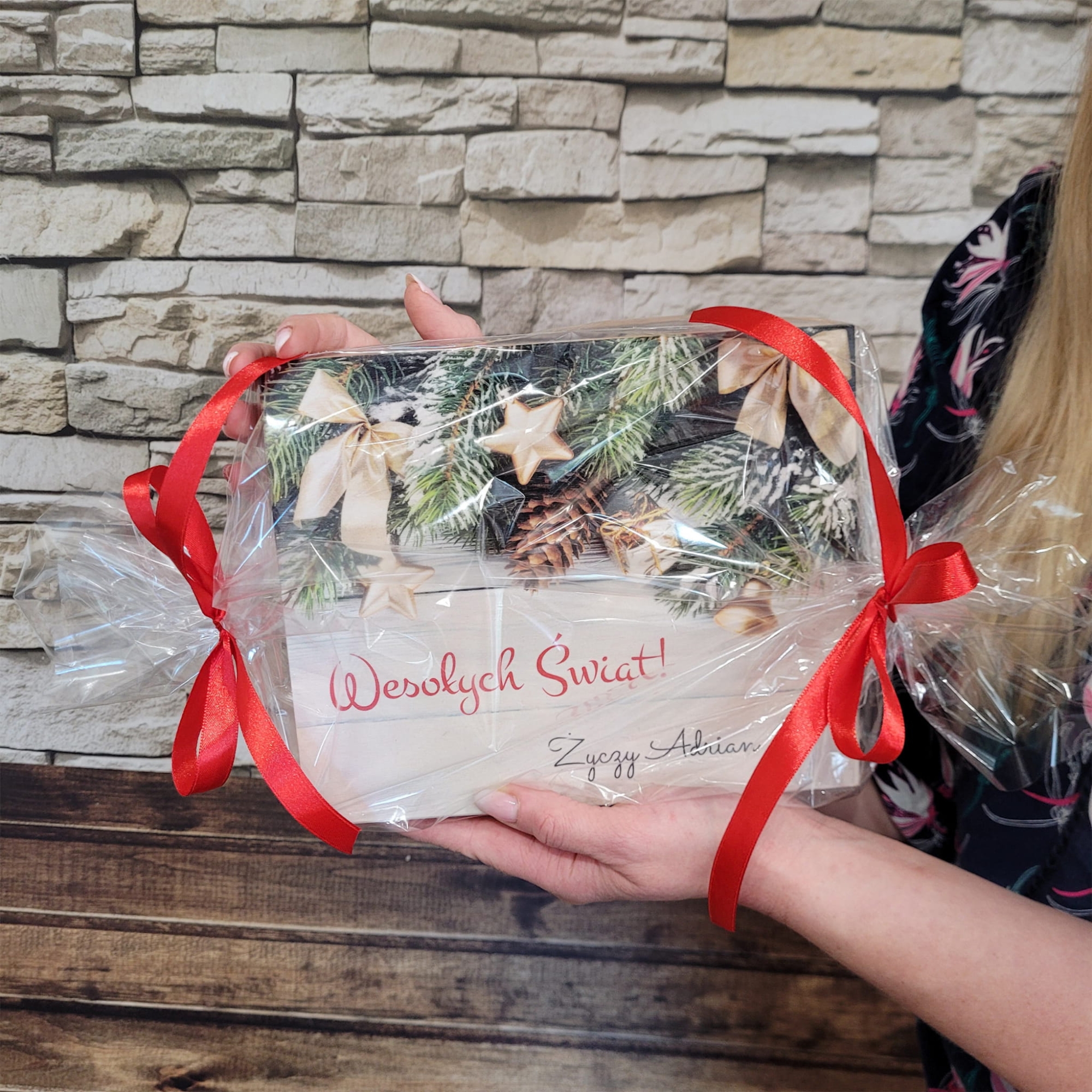 Drewniane pudełko na Merci, pieniądze, bilety z indywidualnym nadrukiem