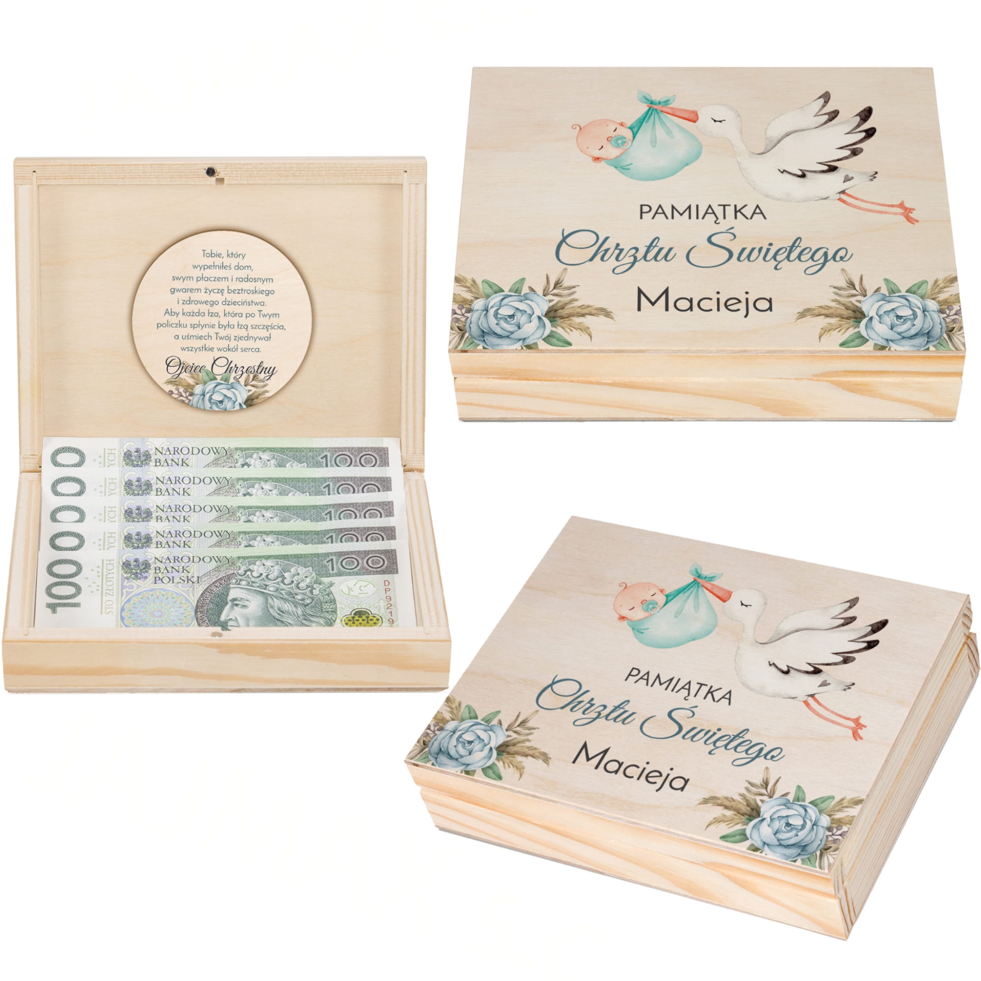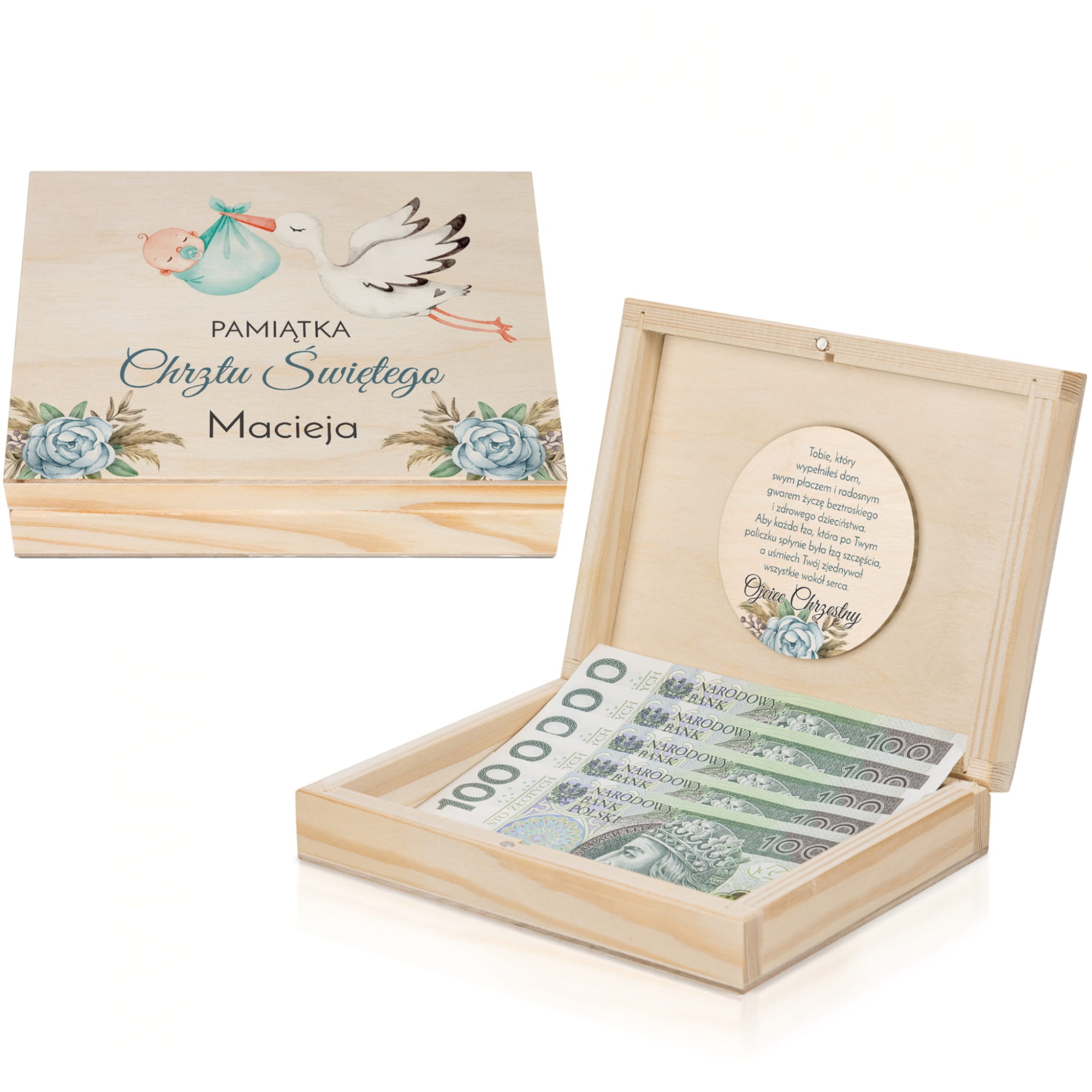 PUDEŁKO NA PIENIĄDZE prezent na chrzciny nadruk