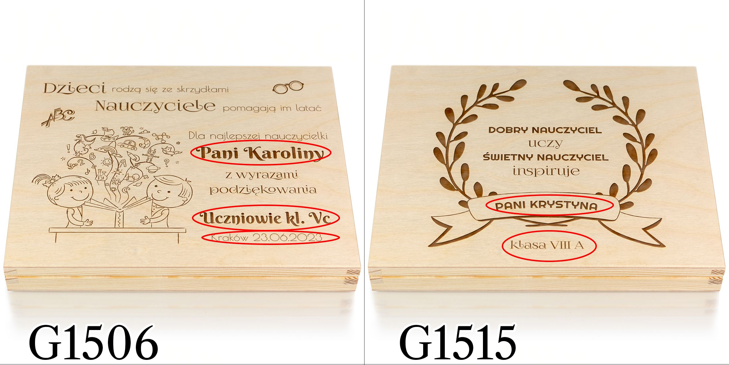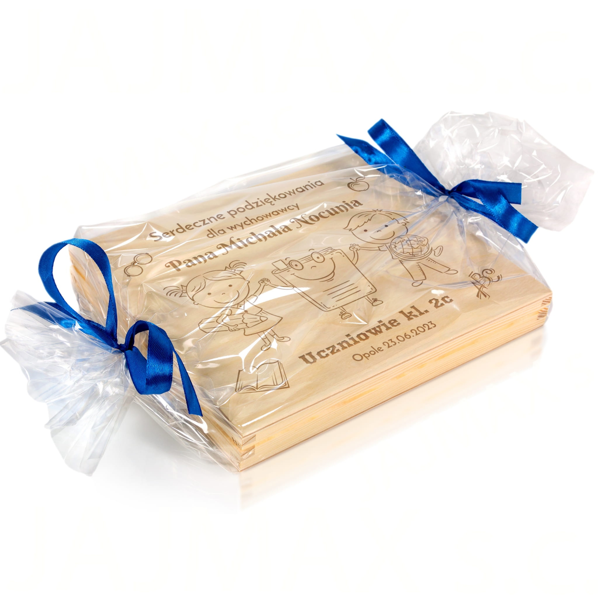 - pudełko drewniane z indywidualnym grawerem,