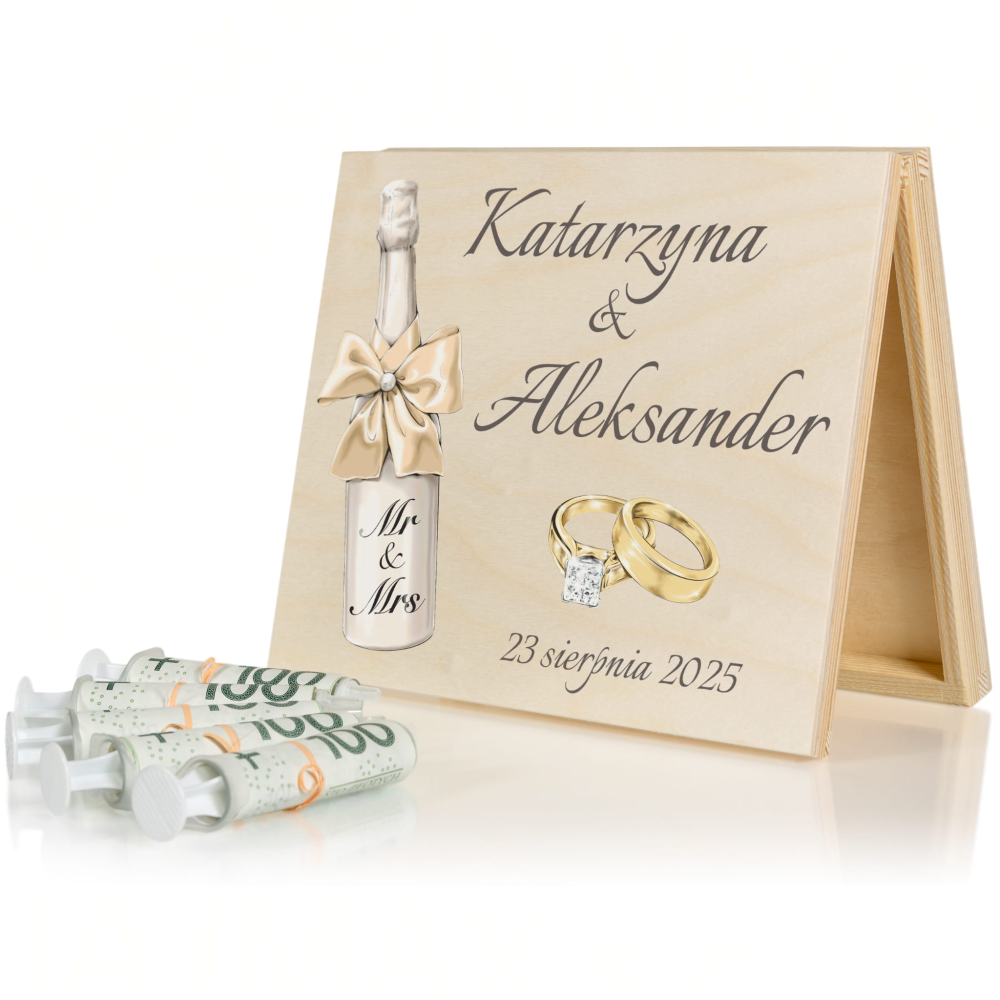 Drewniane pudełko na pieniądze z indywidualnym nadrukiem