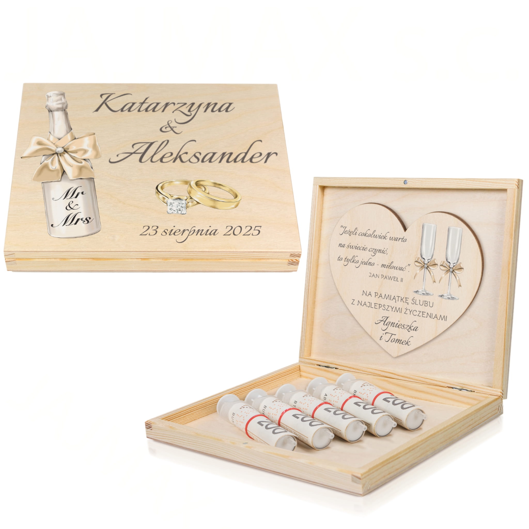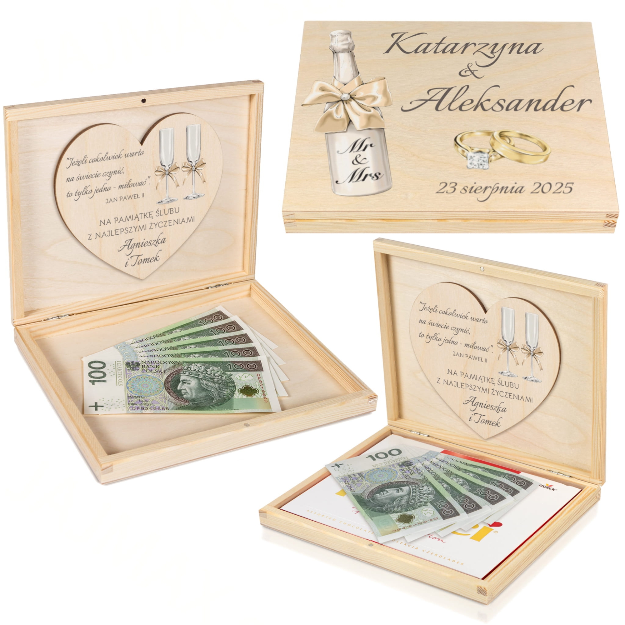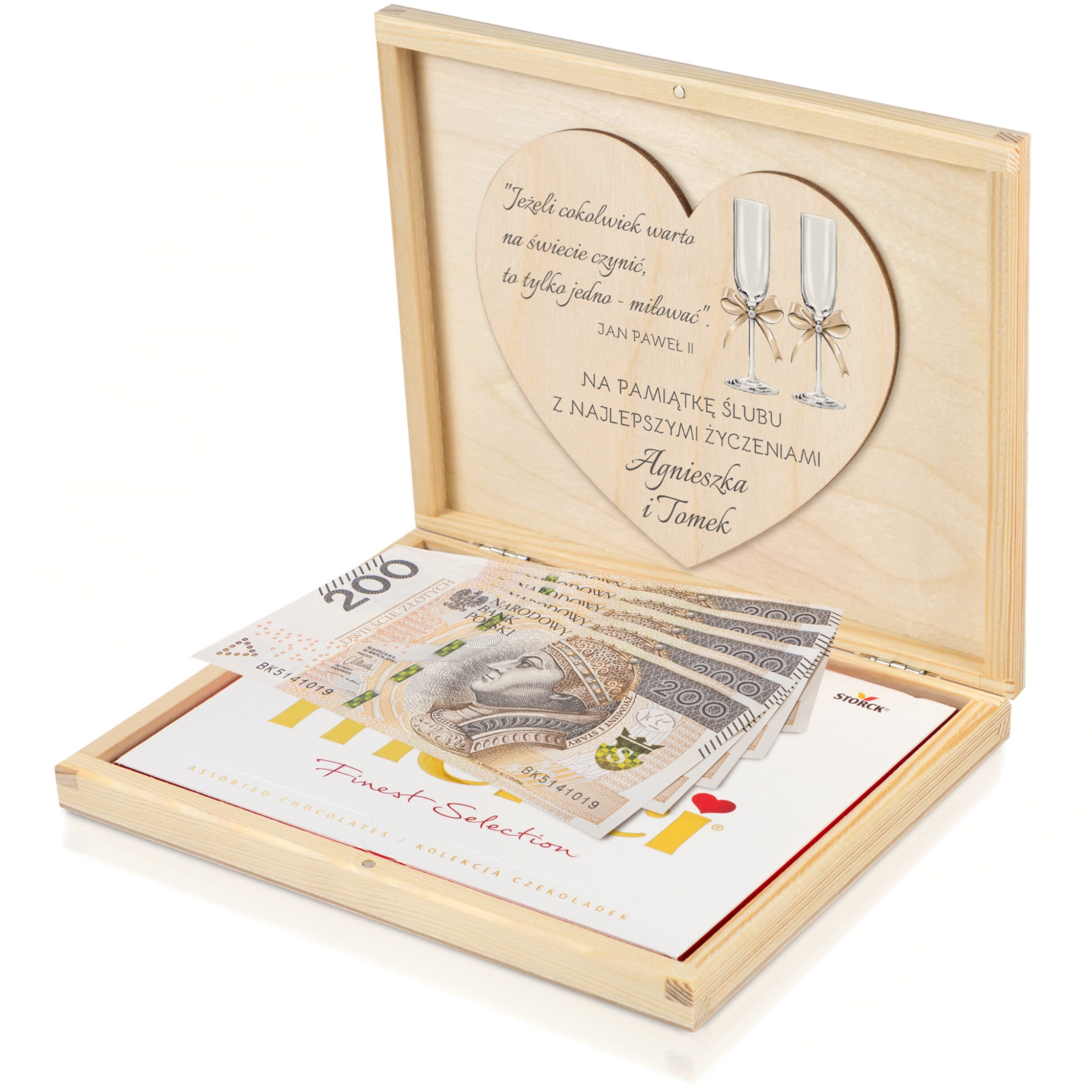 PUDEŁKO Z ŻYCZENIAMI cytat prezent na wesele dla młodych imiona