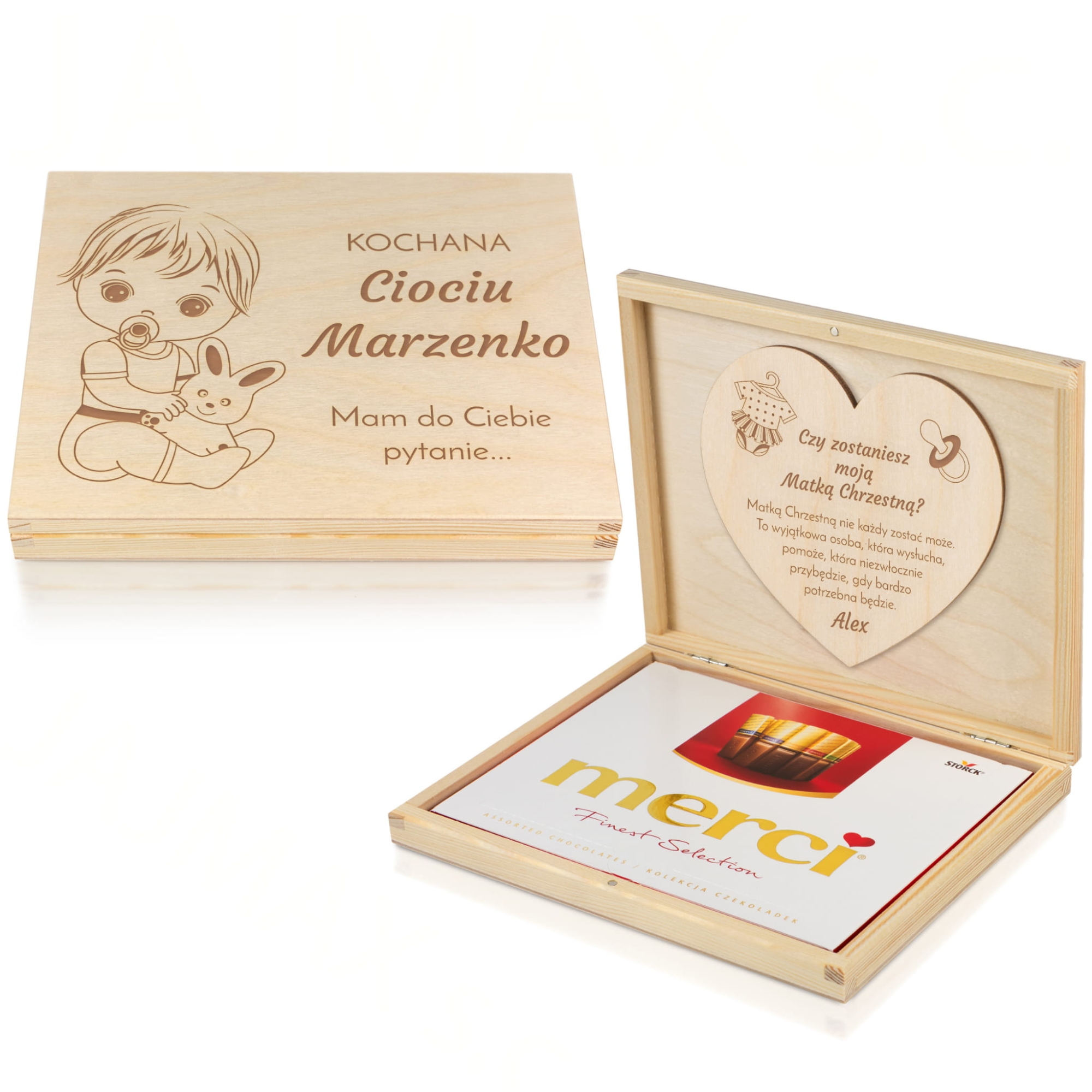 PYTANIE PROŚBA o zostanie Matką Chrzestną dziecka pudełko z pralinami