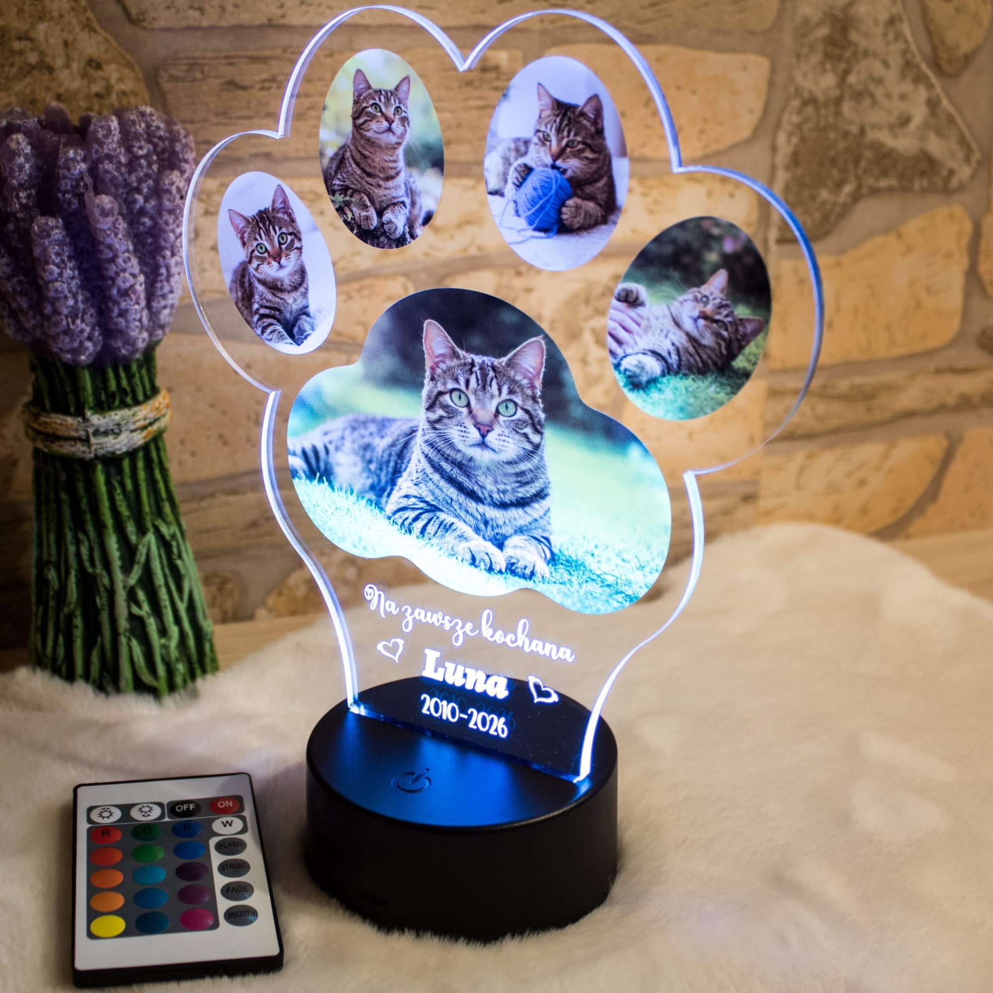 Personalizowana lampka z łapką pupila – prezent dla miłośnika psa i kota