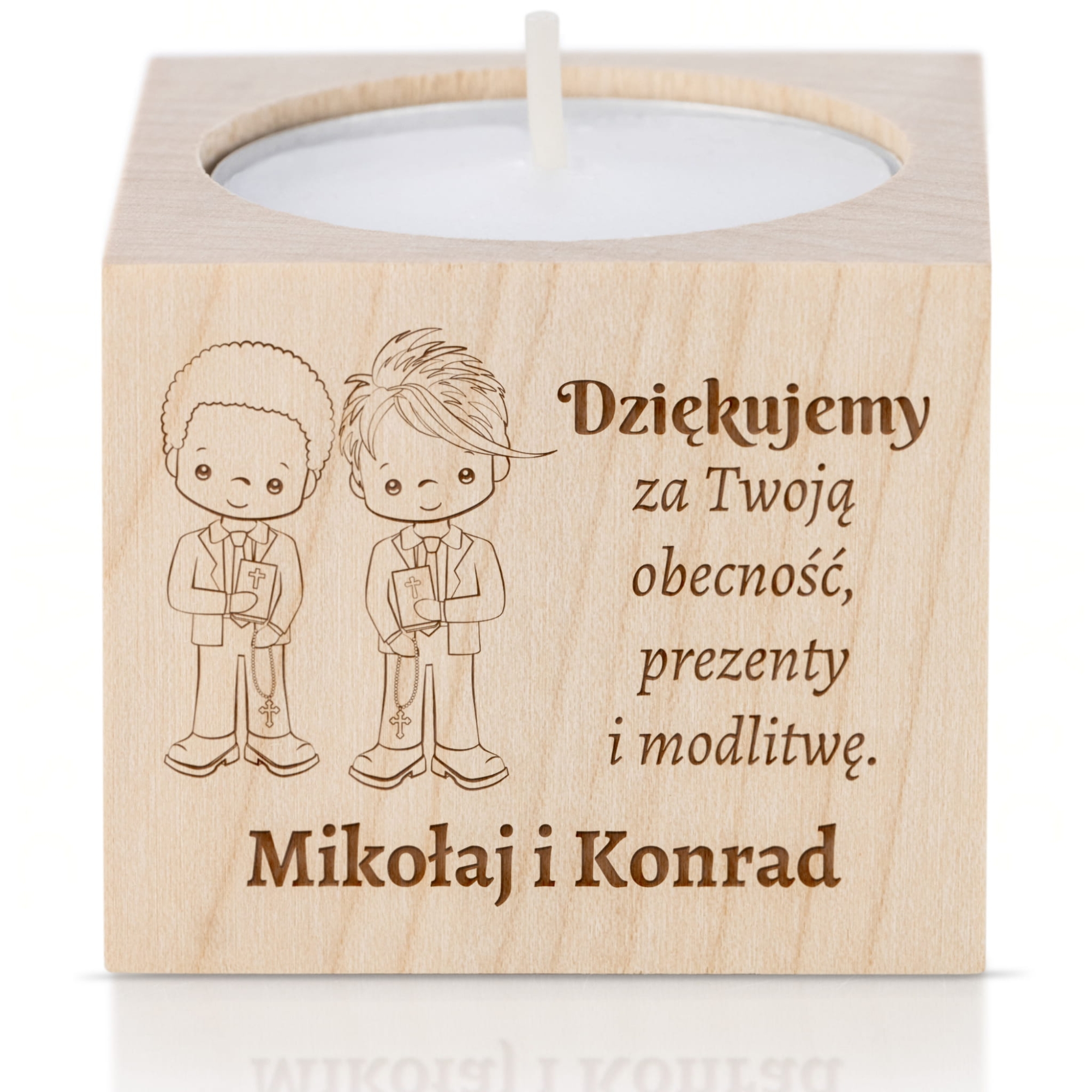 Personalizowany świecznik świetlisty gest wdzięczności dla gości Komunii