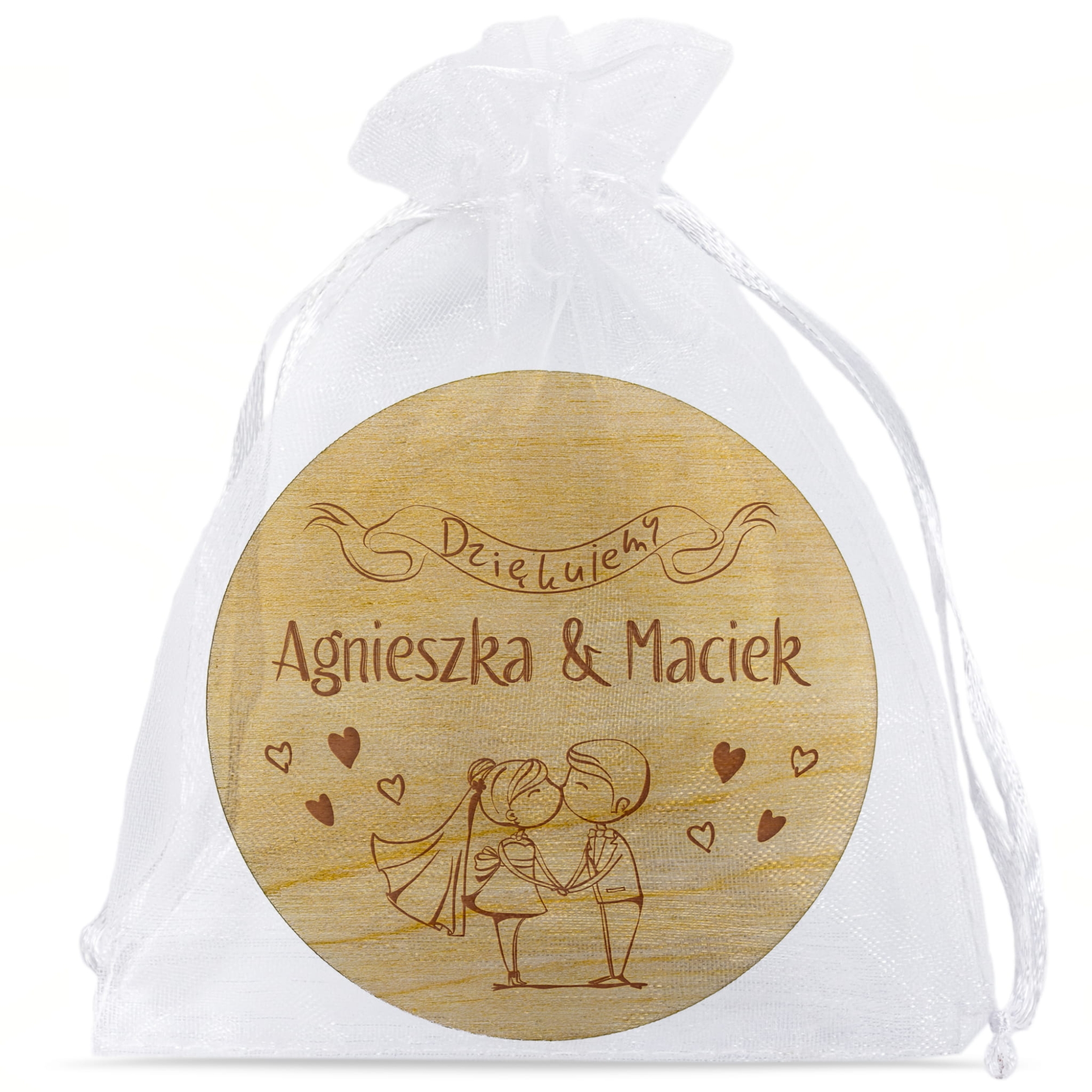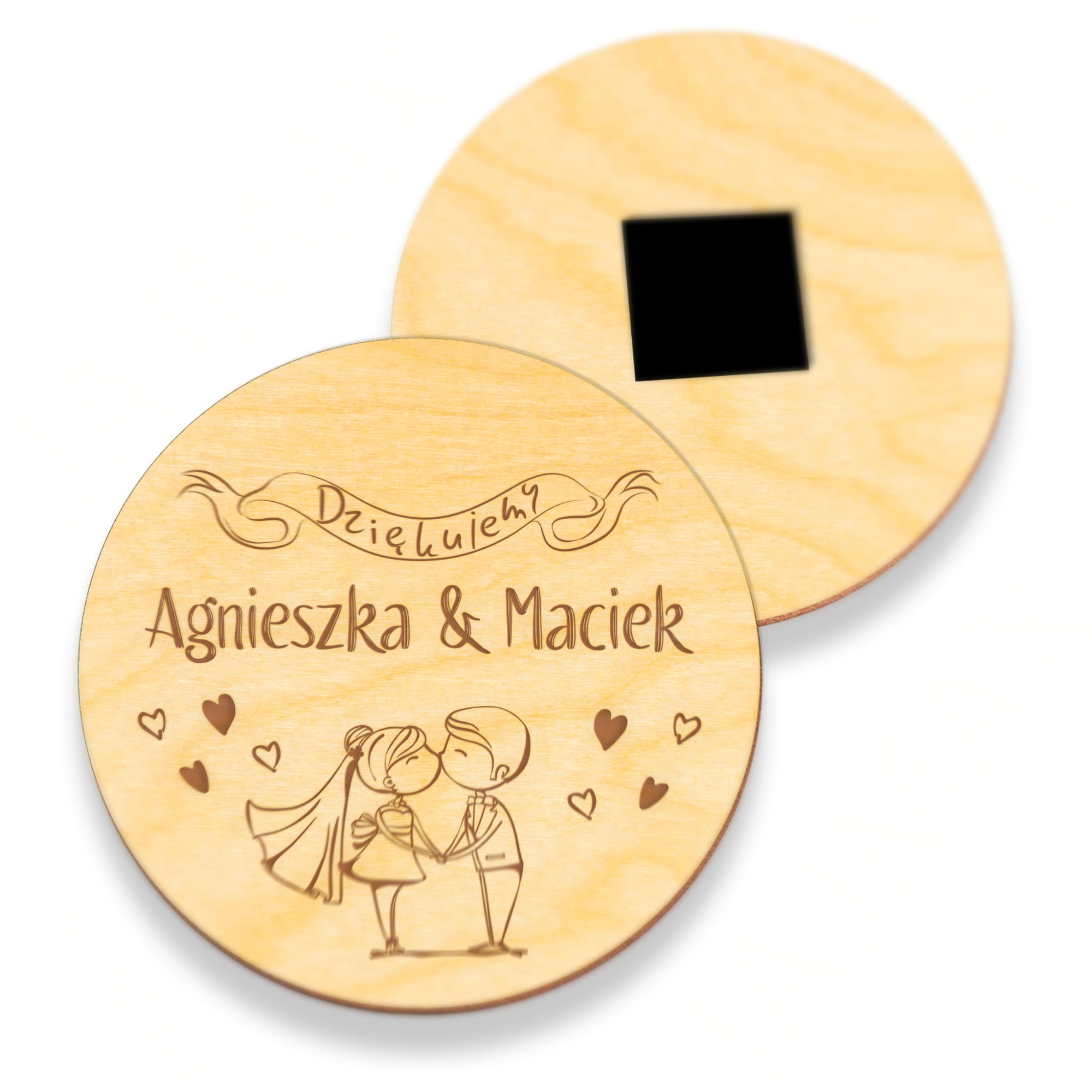 Piękne magnesy drewniane podziękowania dla gości grafika Nowożeńcy