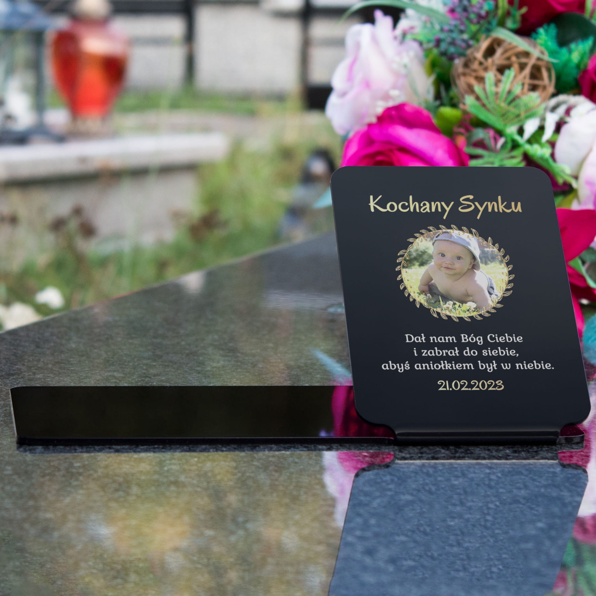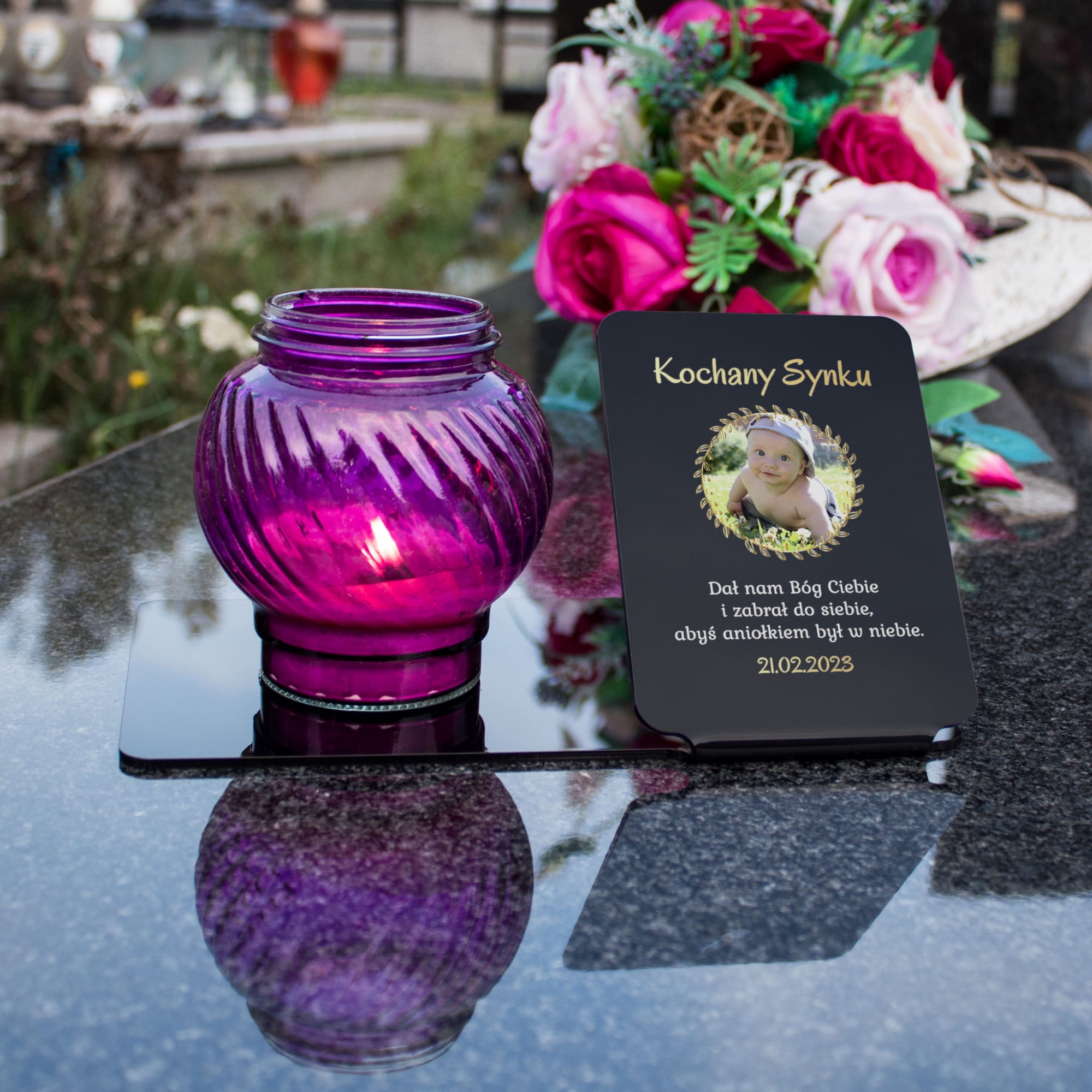 Podstawka pod znicz lampion ze zdjęciem i dedykacją dla dzieci