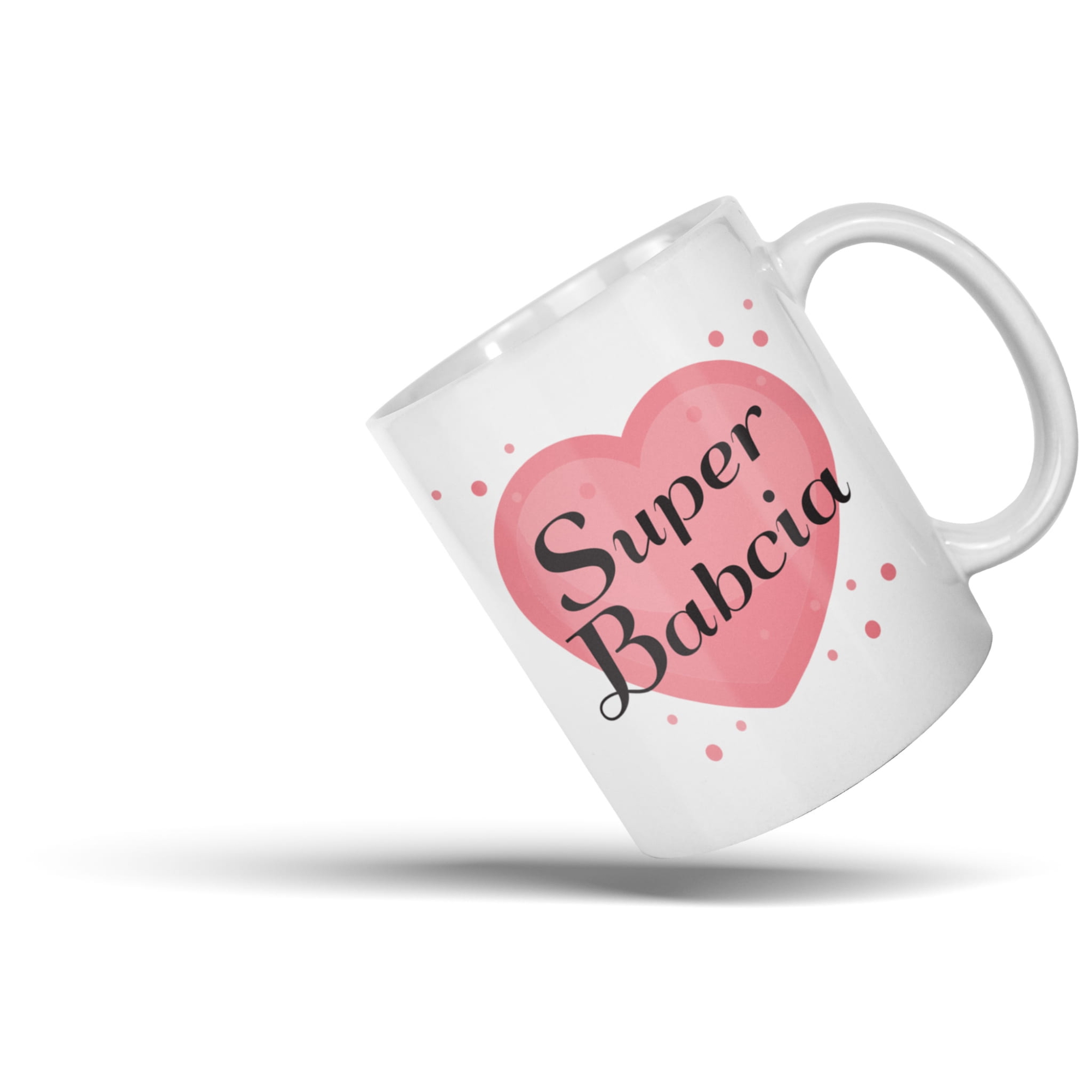 - Klasyczny kubek dla Babci – z tym samym motywem serca, idealny na poranną kawę, herbatę lub wieczorne ziółka. Z takim kubkiem każdy łyk smakuje lepiej.