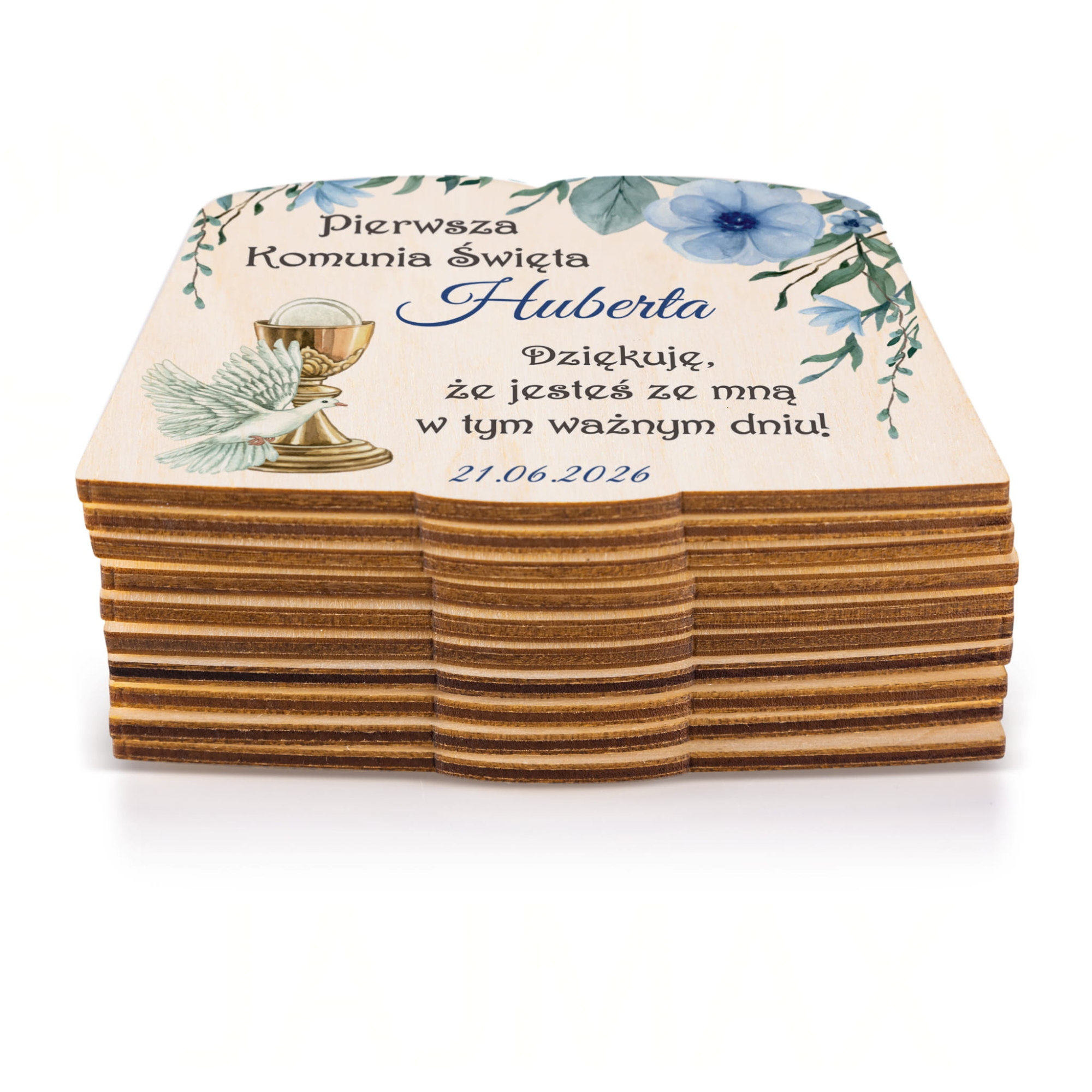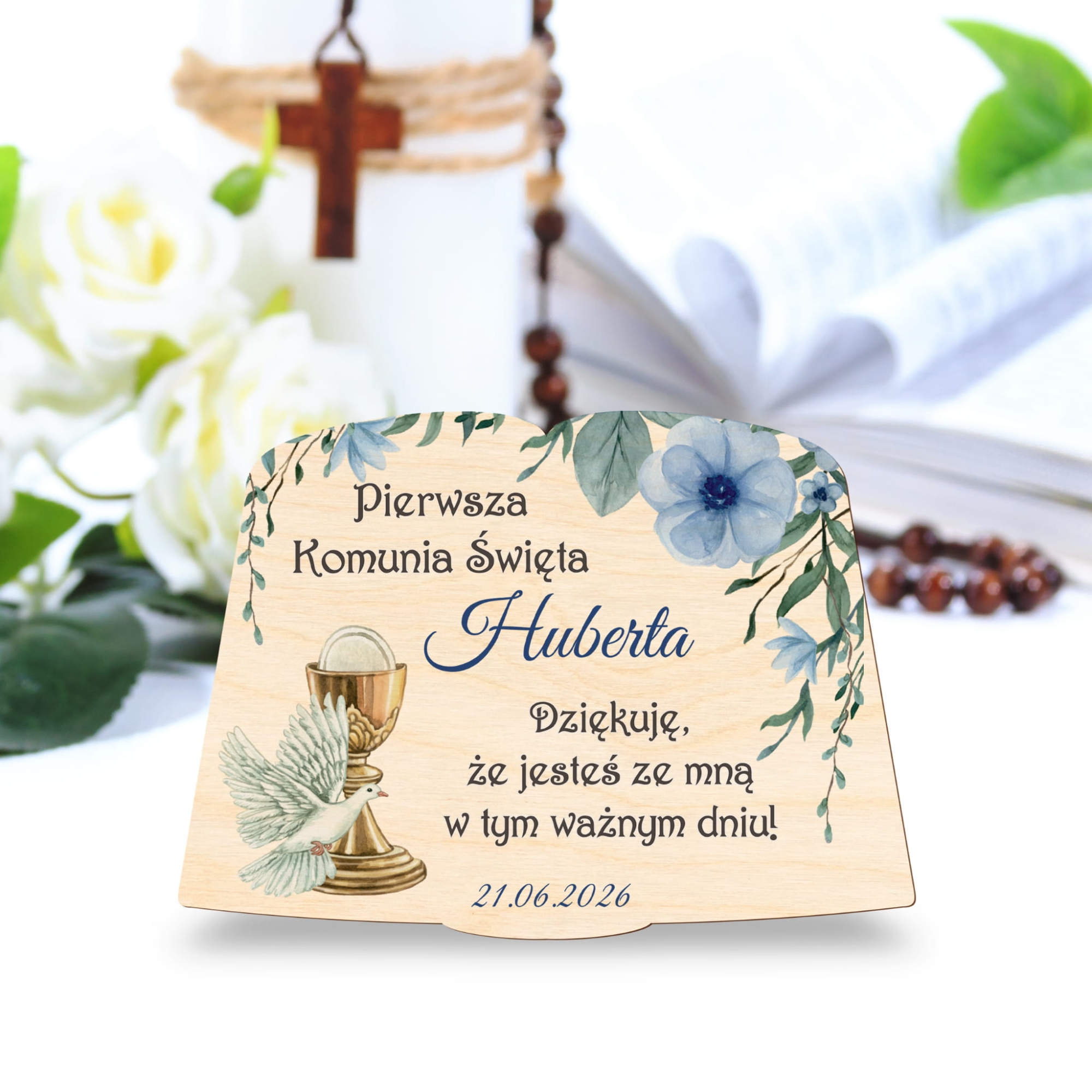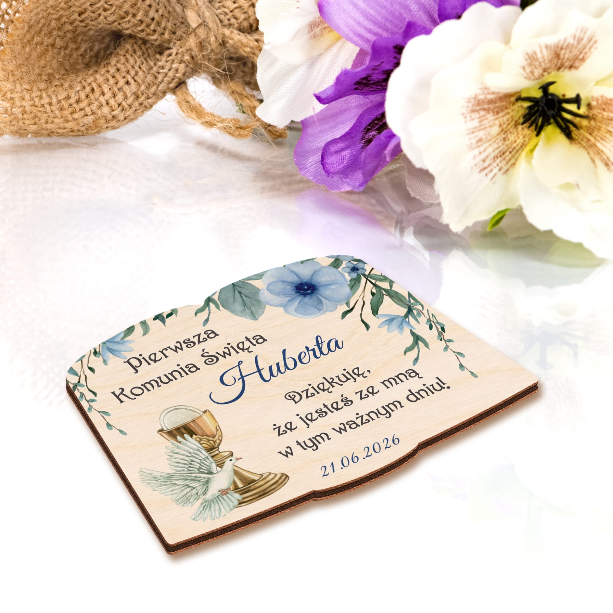 Podziękowania na komunię dla gości z imieniem i datą